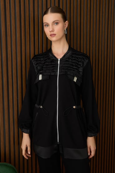 Milena Takım Kesim: Tam Kalıp Tarz: Şık Boy: Üst: 80 Cm Alt 97 Cm Robası Pile Saten Garnili Süs Kapaklı Yapıştırma Taş Aksesuarlı Beli Tünel Detaylı Fleto Cepli, Ön Bedeni Fermuar Kapamalı Beli Lastikli Pantolonlu Takım