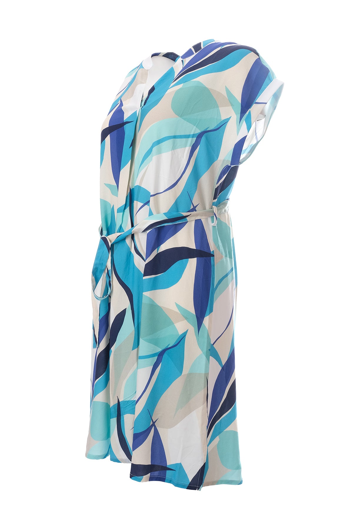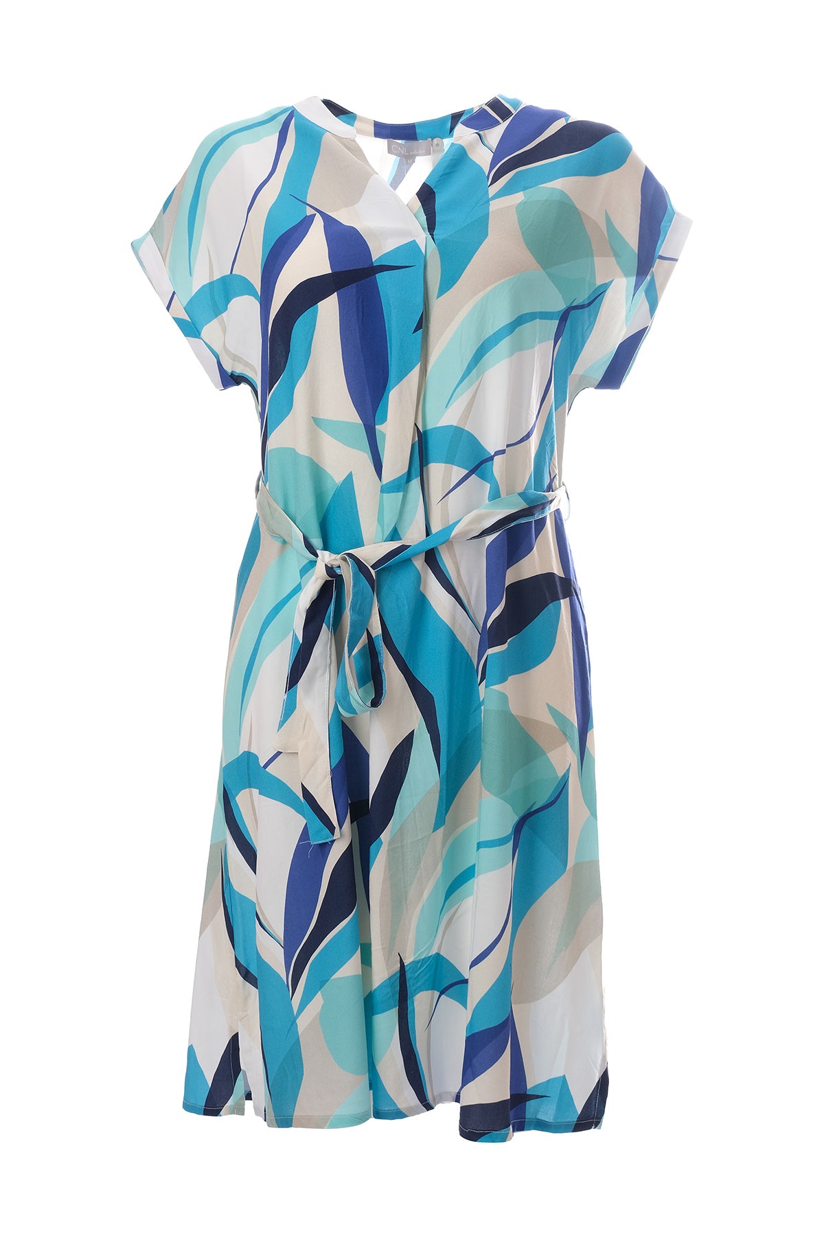 Canel Midi Boy Günlük Elbise - Kısa Kol, Kemerli, Desenli - Yazlık