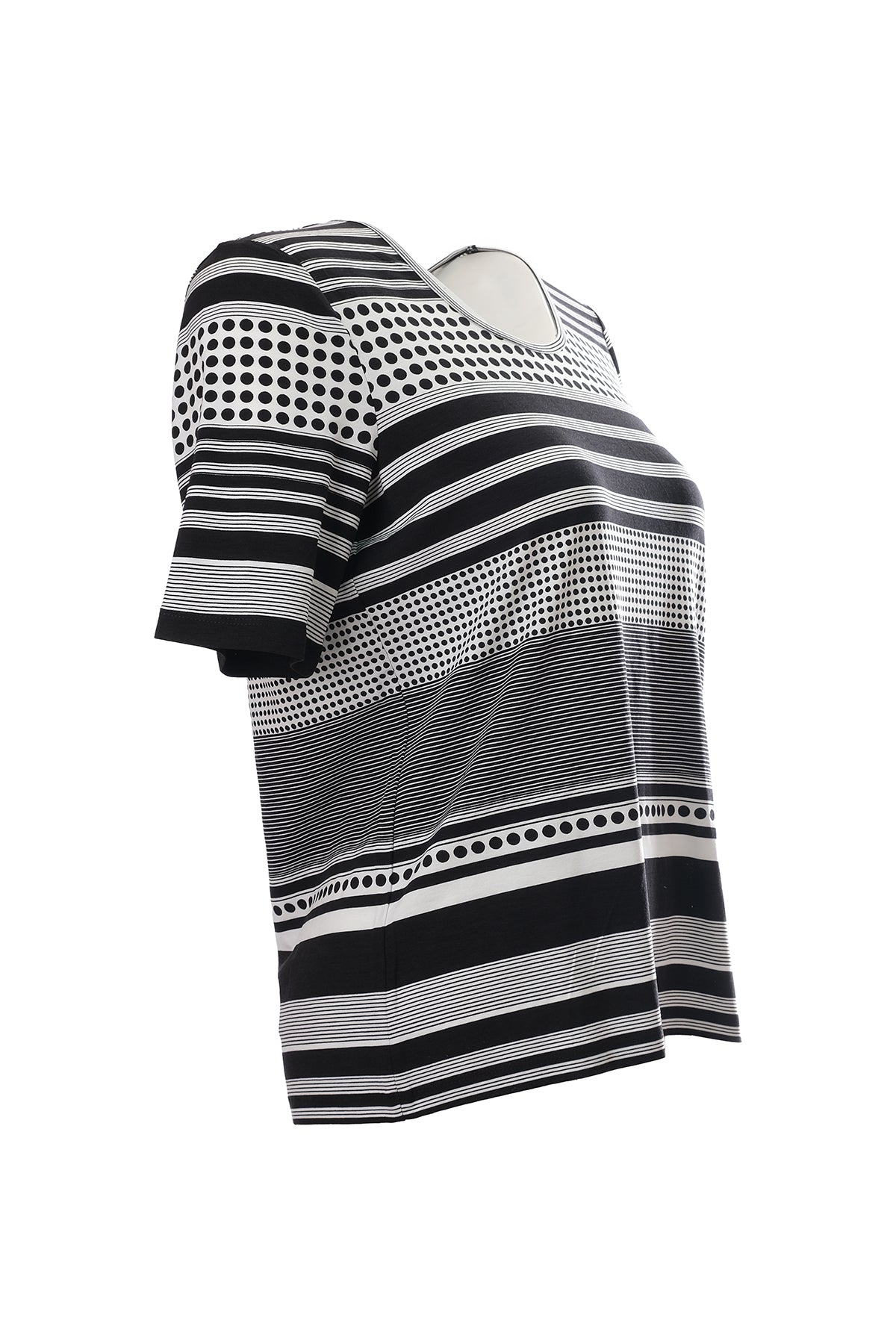 Canel Minimalist Kadın T-Shirt - Çizgili & Puantiyeli, Kısa Kol, Regular Fit