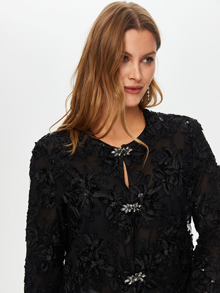 Çiçek Desen Aplike Ve Payet Detaylı Abiye Ceket Faik Sönmez