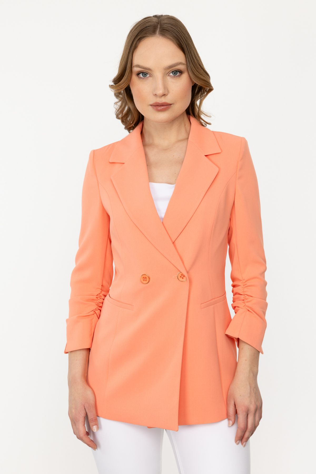 Ürün Özellikleri:; -Önü astarlı:Çizgi cep; -Önü düğmeli:Kolu büzgülü; -Ürün Kalıbı:Tam Kalıp; -Ürün Kalınlığı:Orta; -Ürün Boyu:70 cm; -Kumaş İçeriği:%100 poliester; -Ürün Sezonu:İlkbahar/yaz; Manken Ölçüleri:; Örnek Beden: Ekol: 36; Manken Boyu: 176 cm; Manken Ölçüleri: 84/61/89;