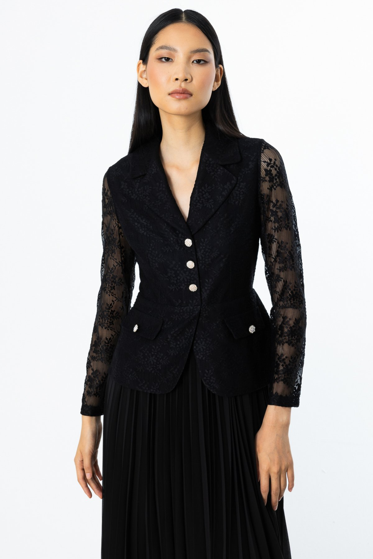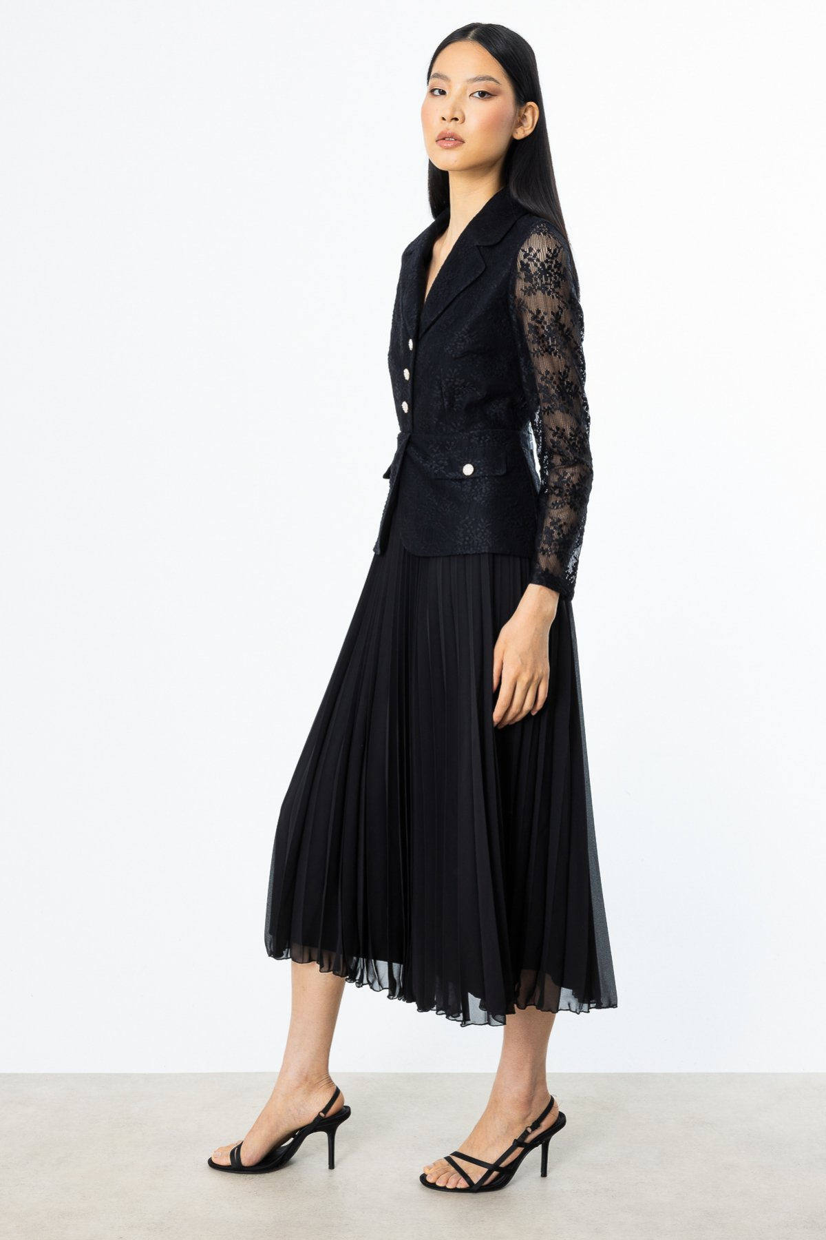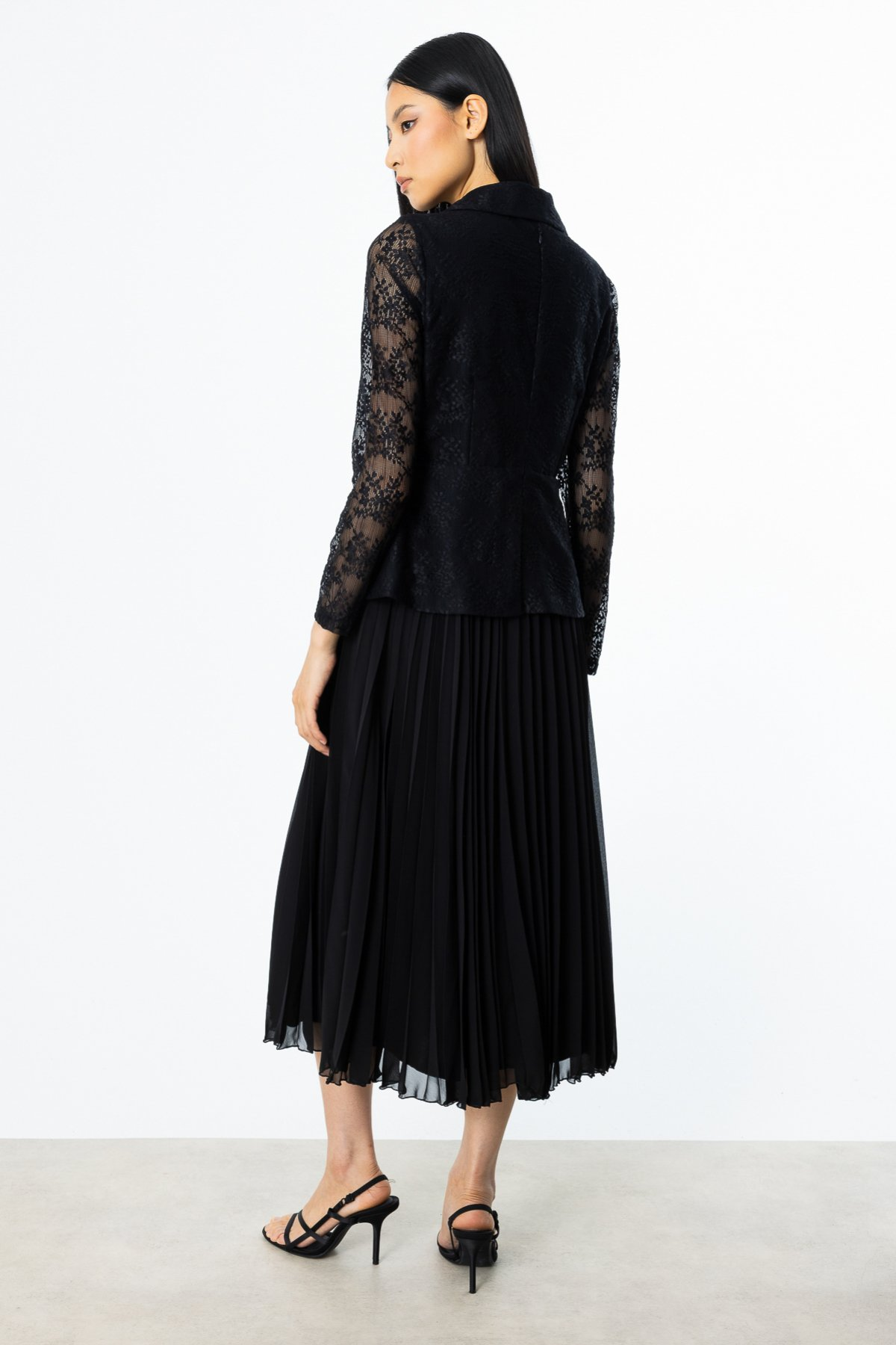 Ürün Özellikleri: Etek kısmı piliseli, dantelli, süs düğmeli, süs kapaklı, astarlı, arkadan fermuar kapamalı, maxi boy