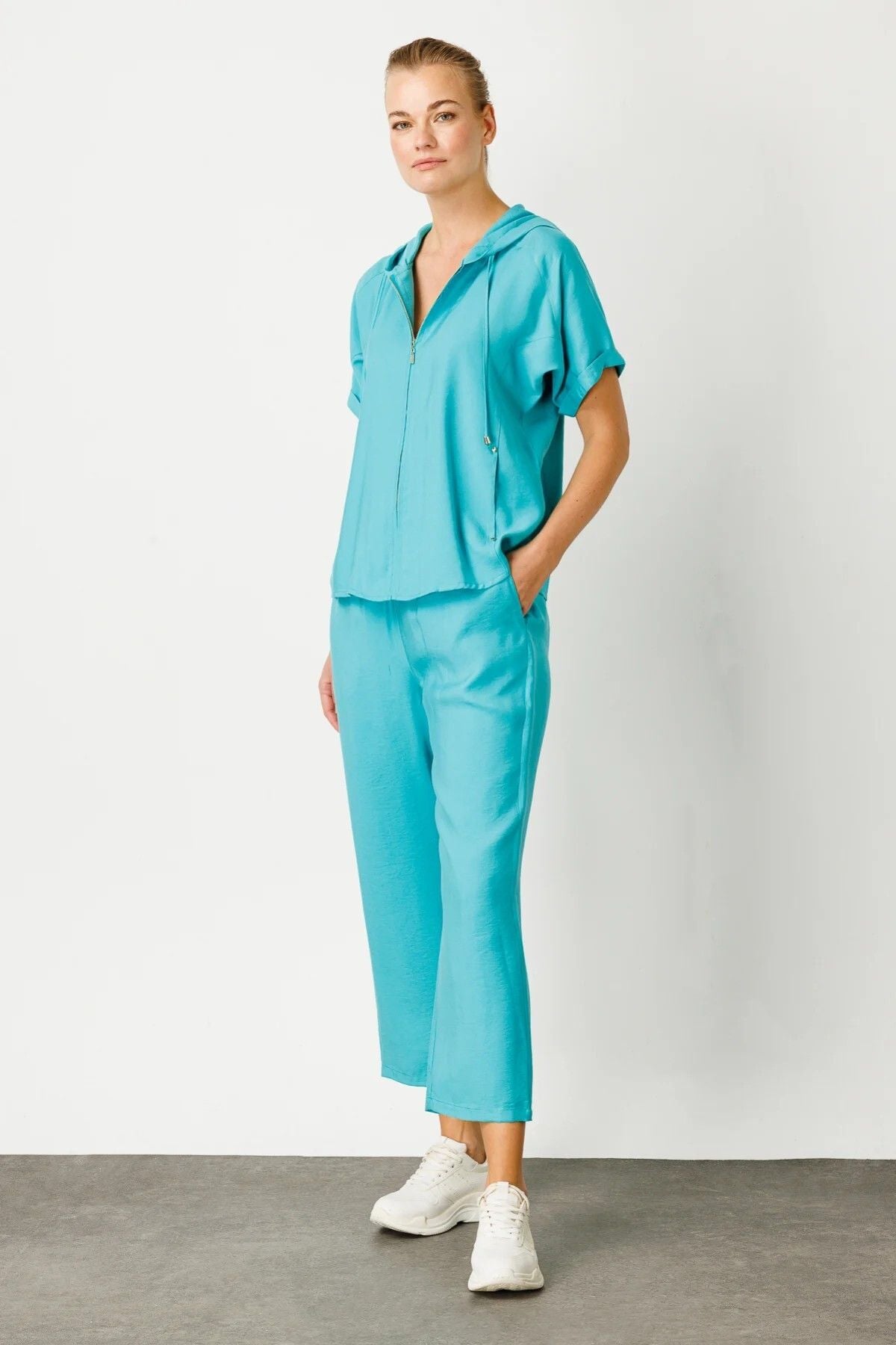 Ürün Özellikleri; -Beli lastikli Yandan cepli -Yüksek bel -Boru paça -Ürün Kalıbı:Tam Kalıp; -Ürün Kalınlığı:Orta; -Ürün Boyu:94 cm; -Kumaş İçeriği:%89 modal %11 poliester; -Ürün Sezonu:İlkbahar/Yaz; Manken Ölçüleri:; Örnek Beden: Ekol: 38; Manken Boyu: 176 cm; Manken Ölçüleri: 84/61/89;