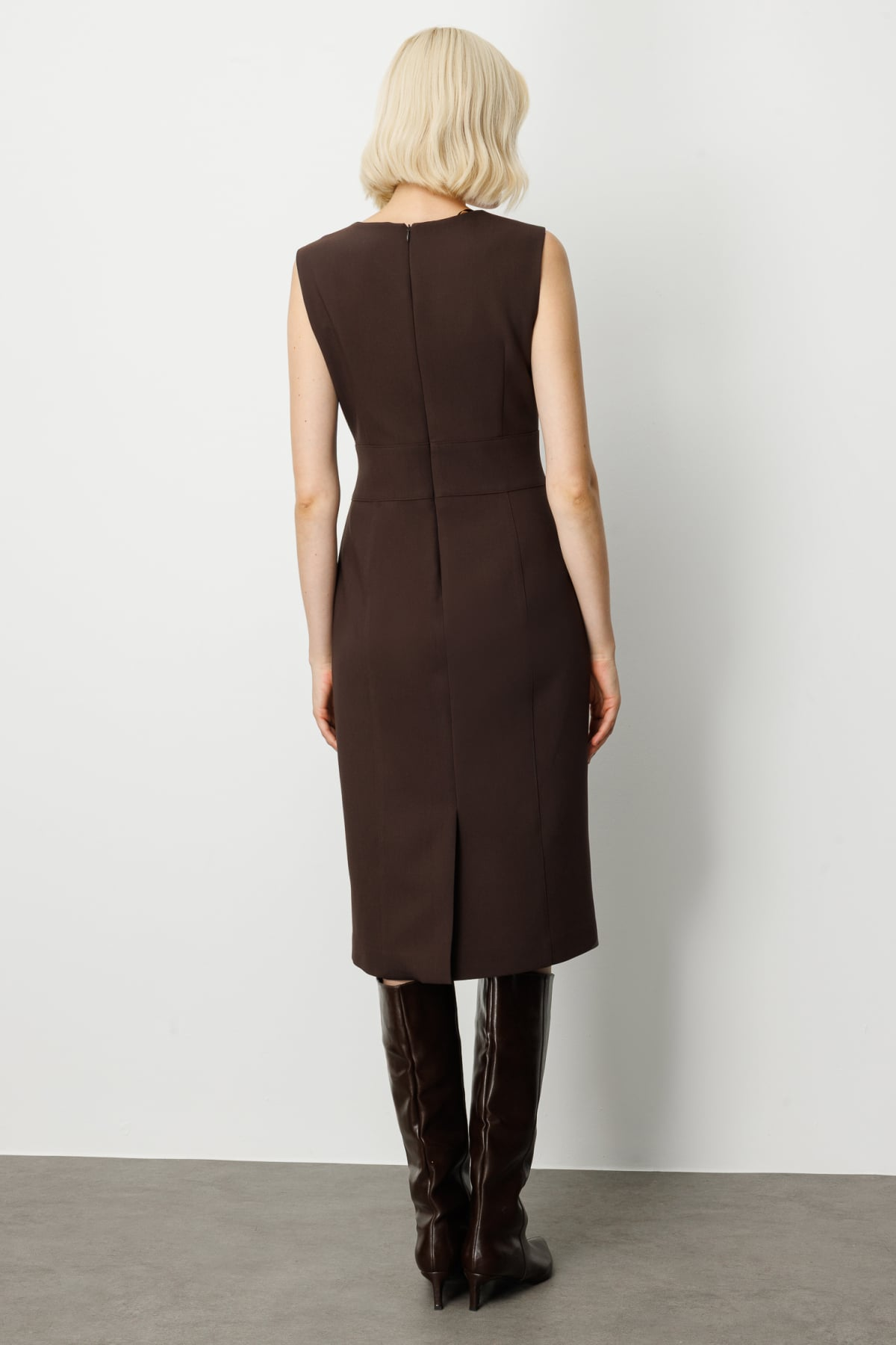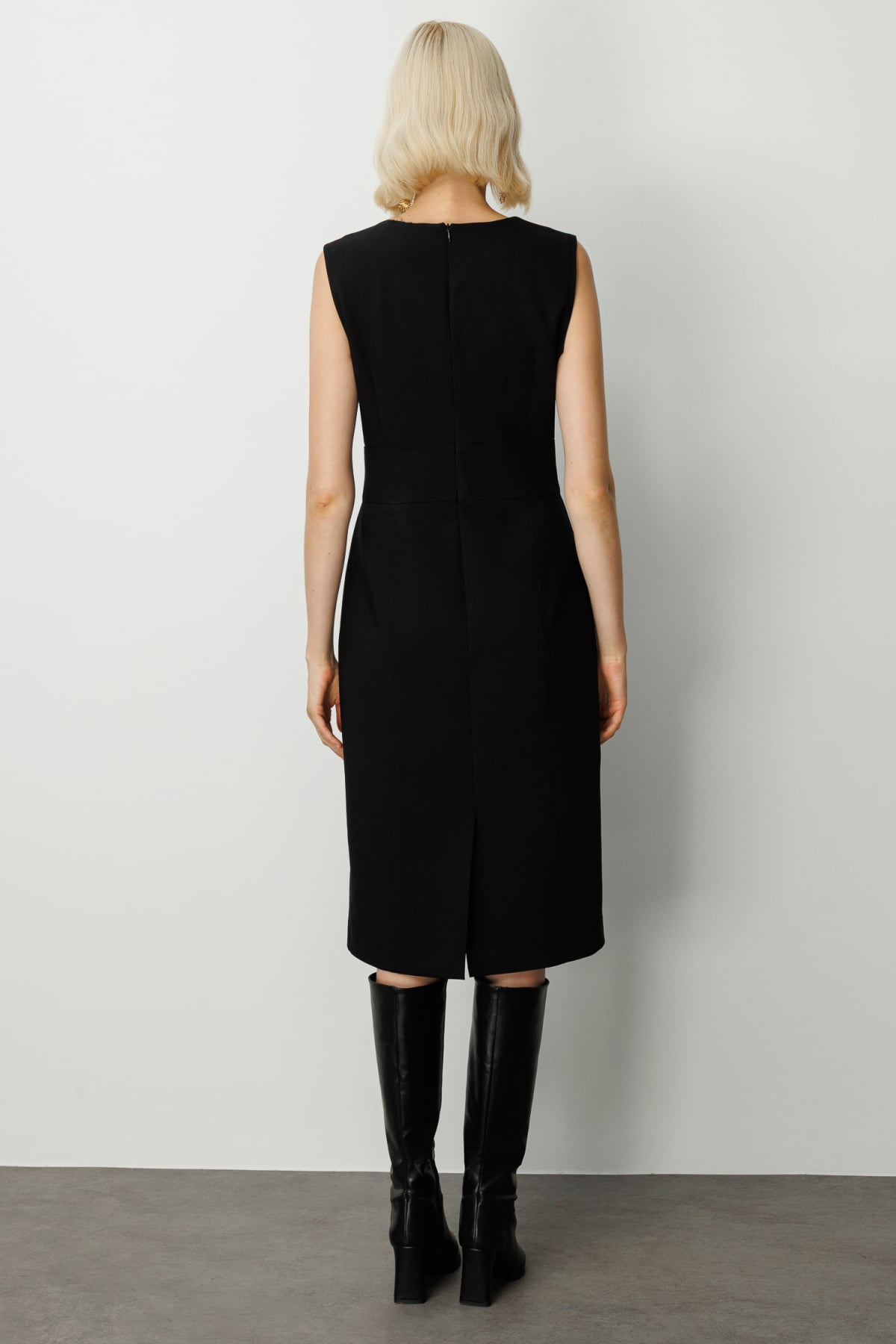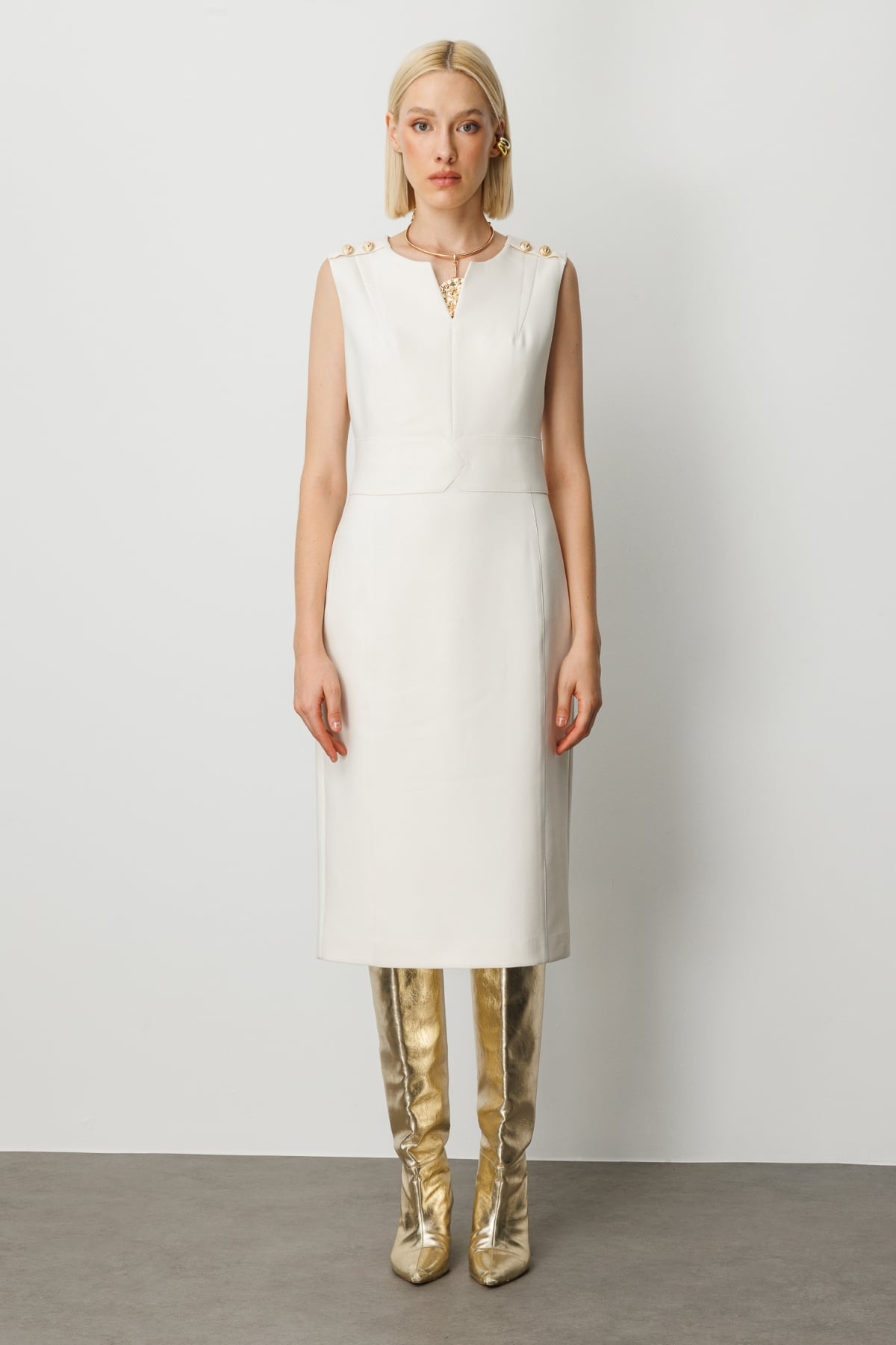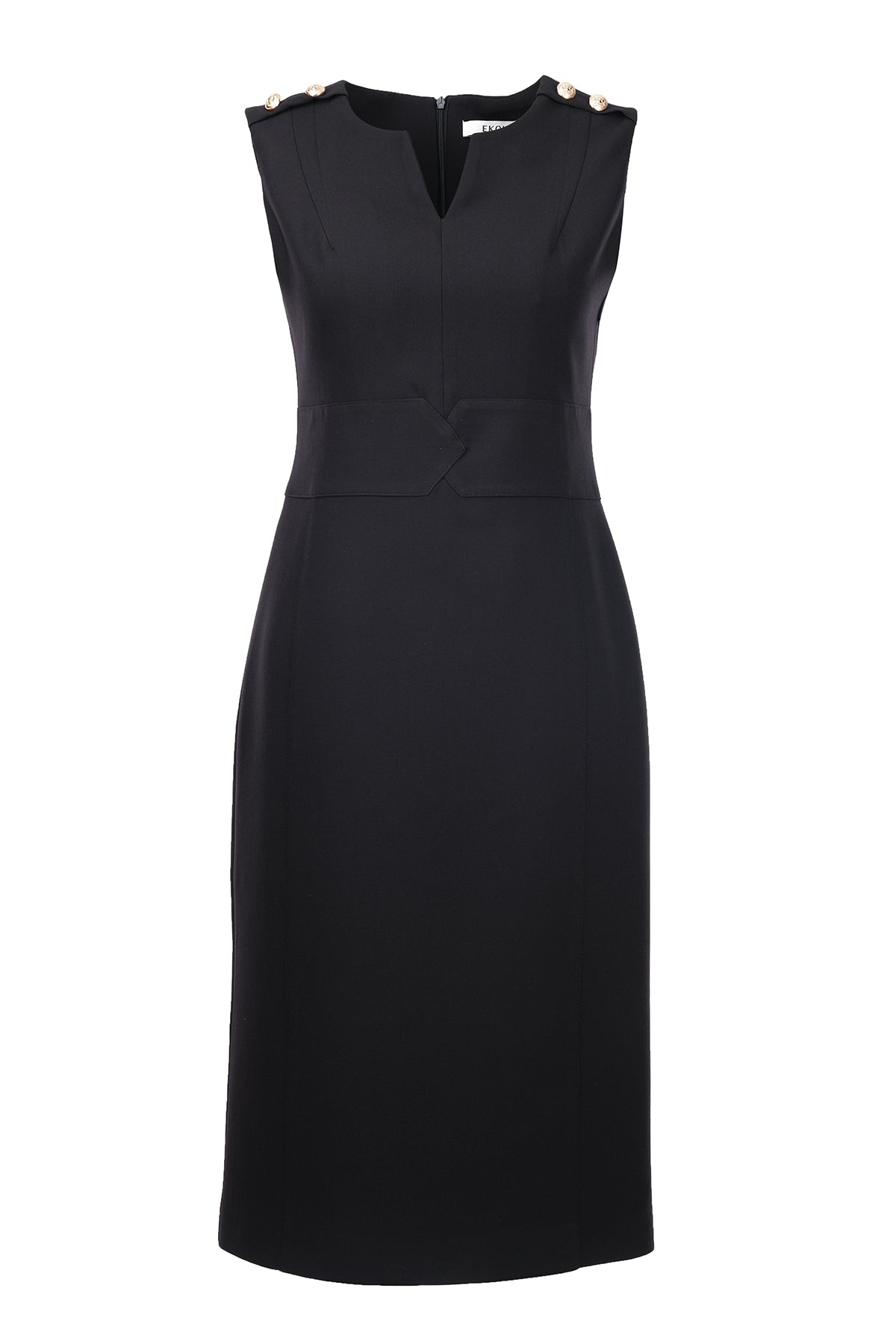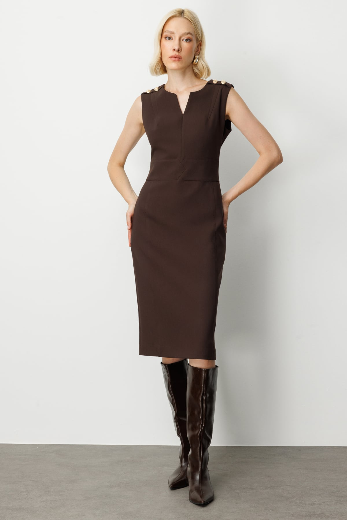 Ekol Minimalist Midi Elbise - Kolsuz V Yaka Günlük & İş Elbisesi