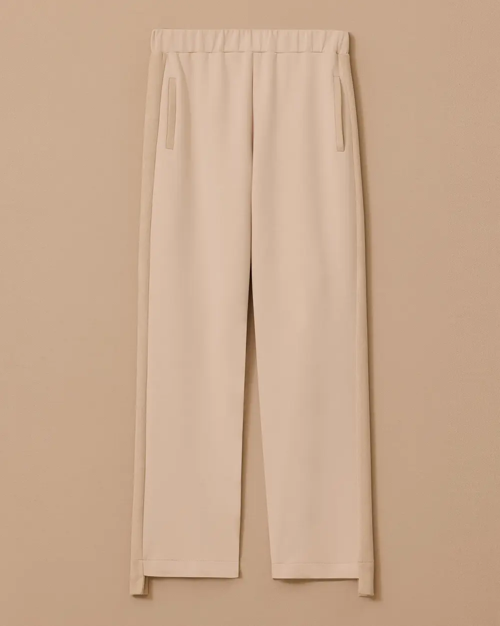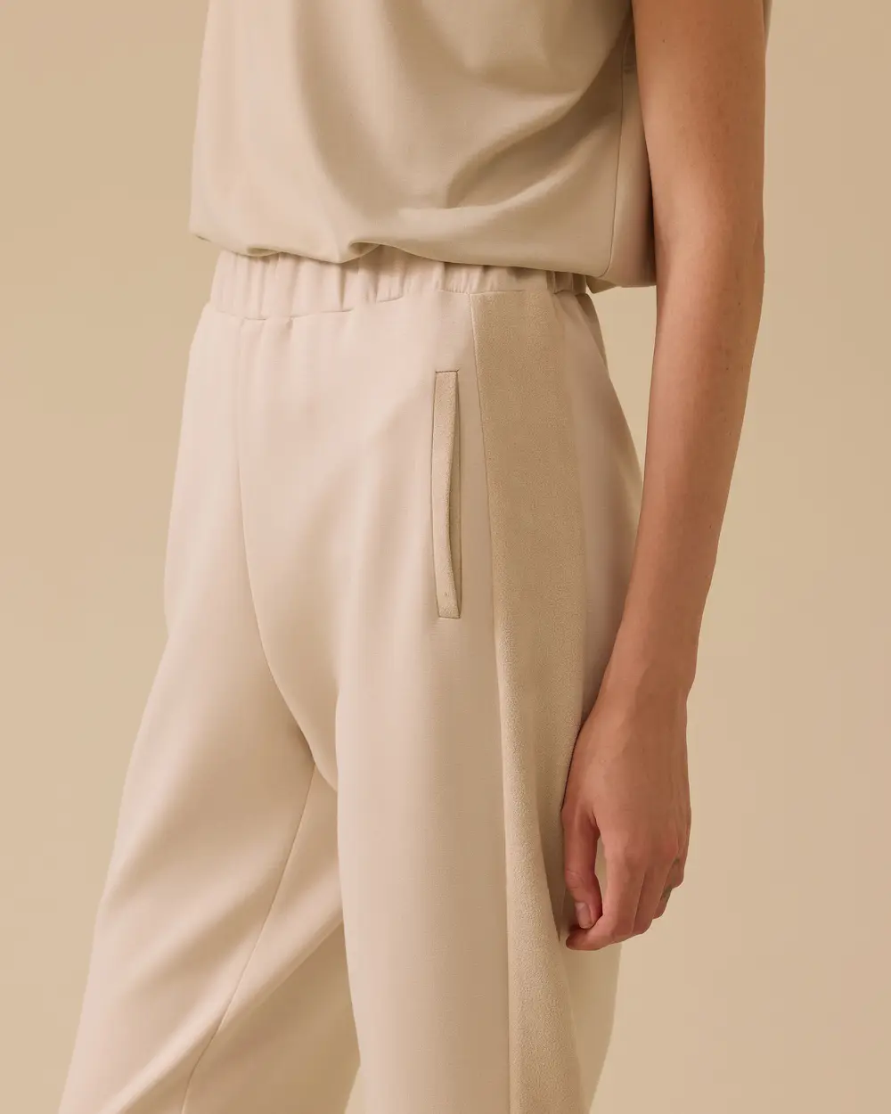 Elastik Bel Süet Detaylı Pantolon, yumuşak dokusu ve süet görünümlü detaylarıyla şık ve rahat bir kullanım sunar.