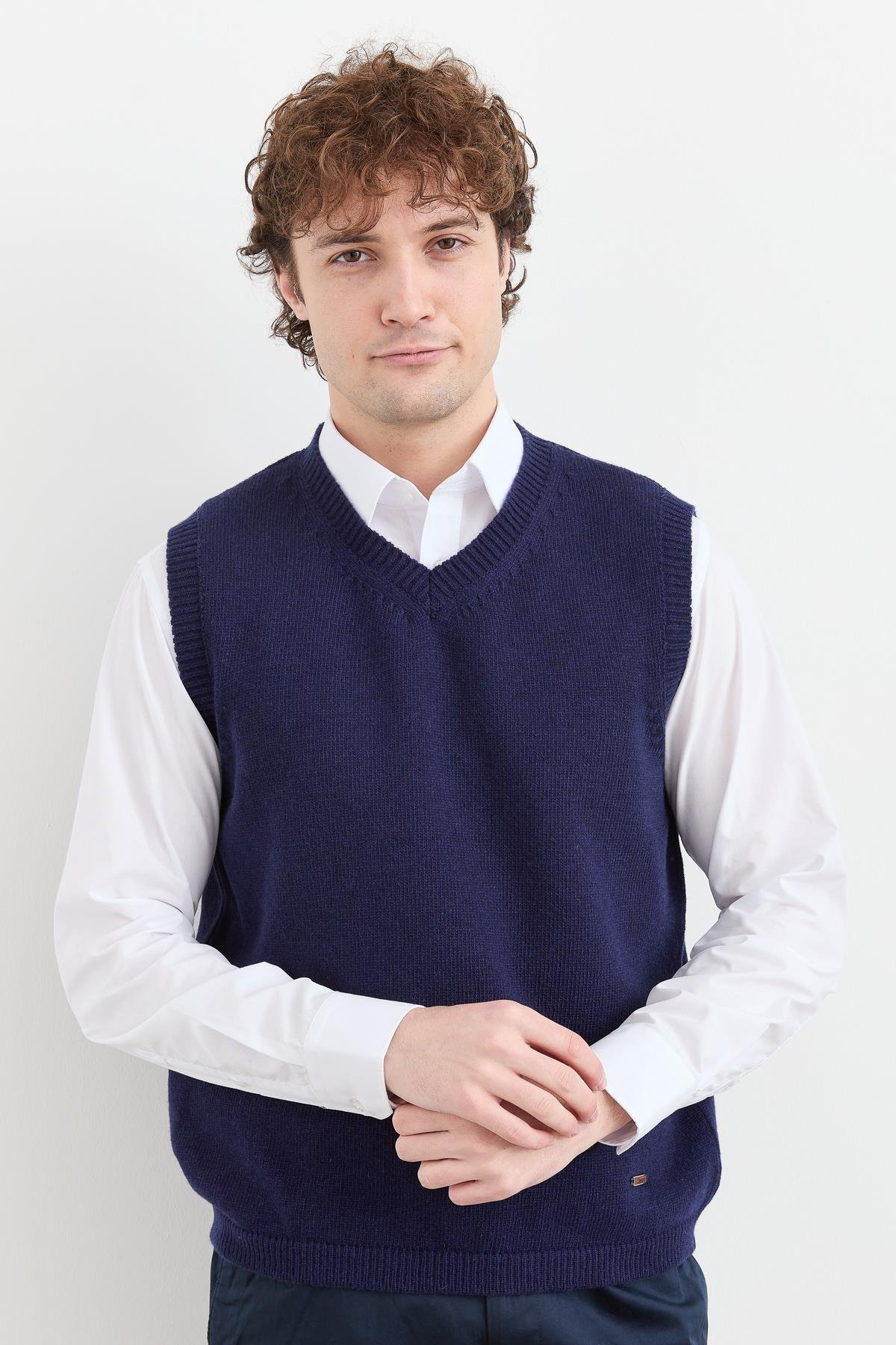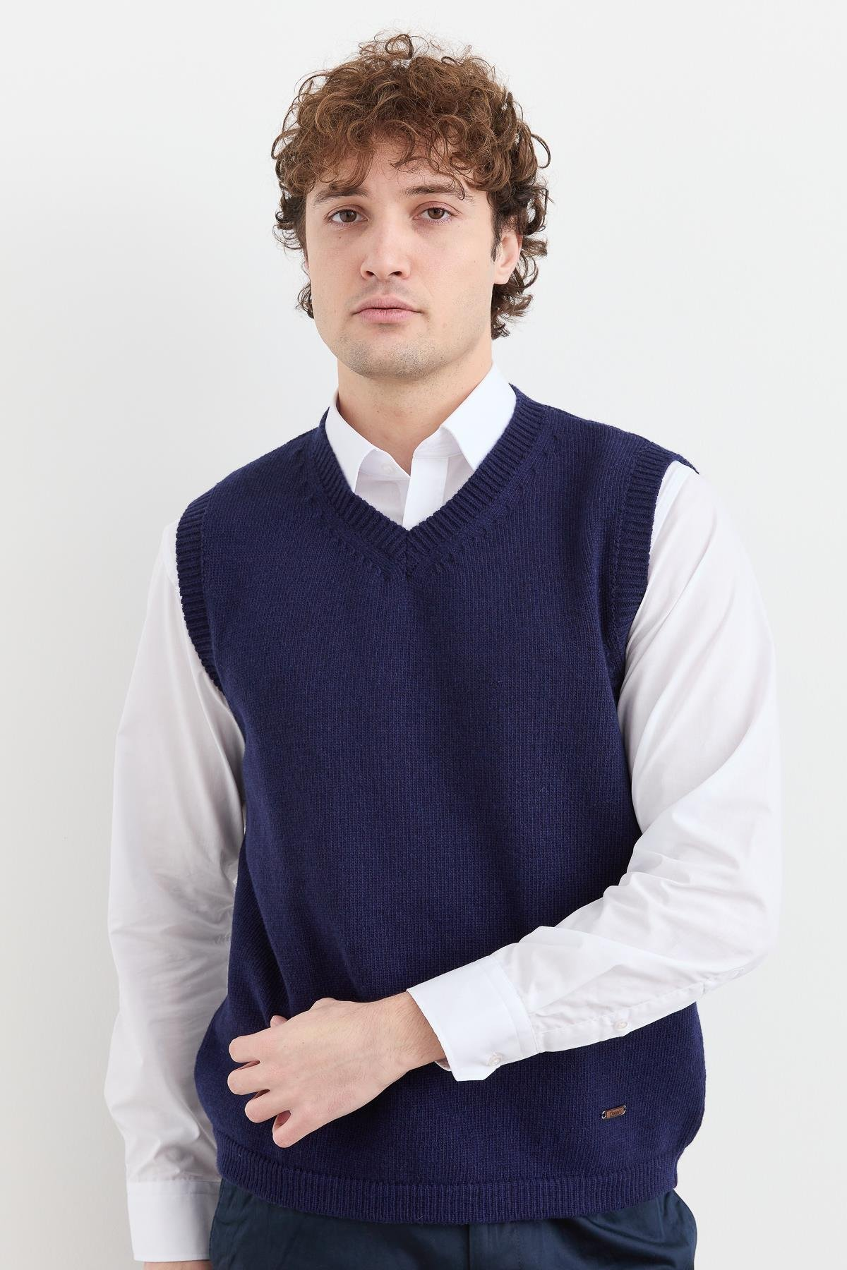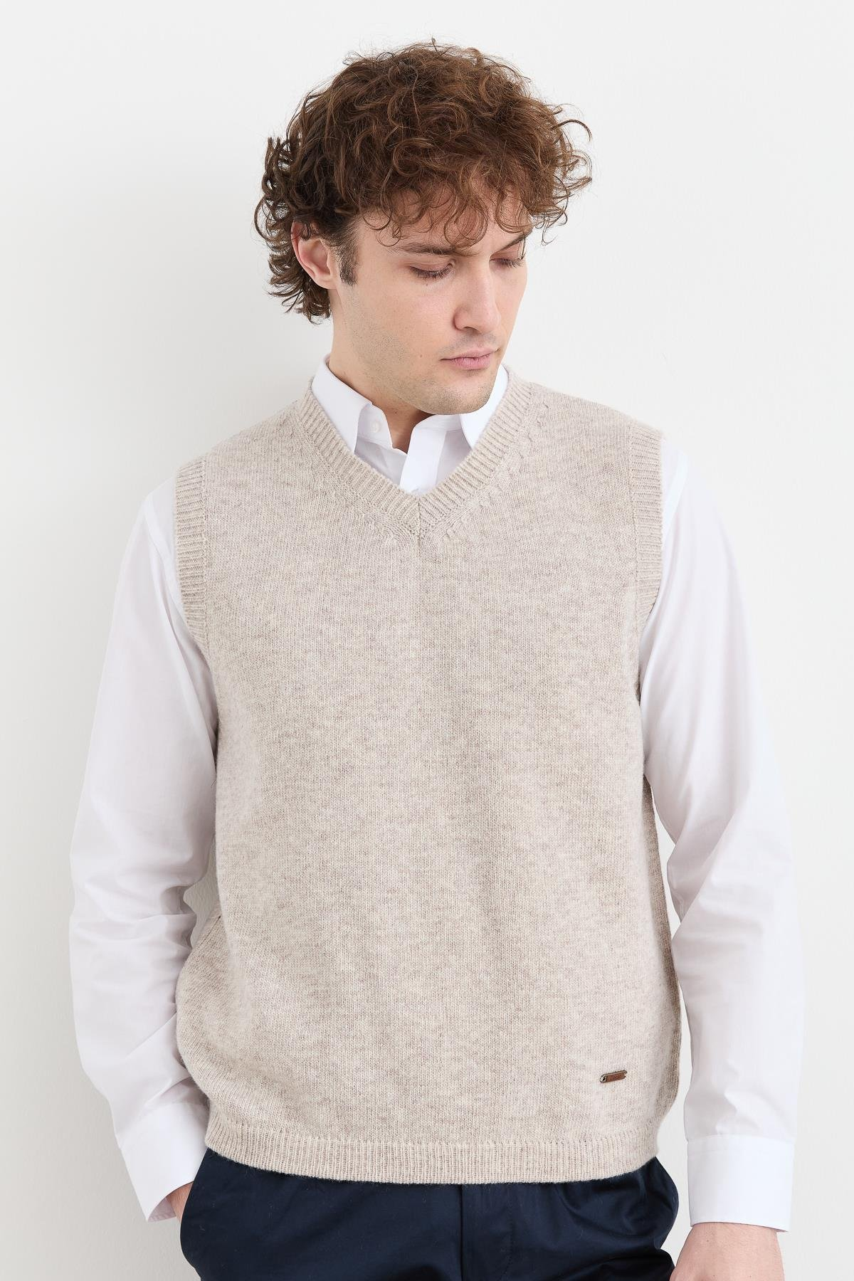 Erkek V Yaka Kalın Klasik Yün Süveter Desen