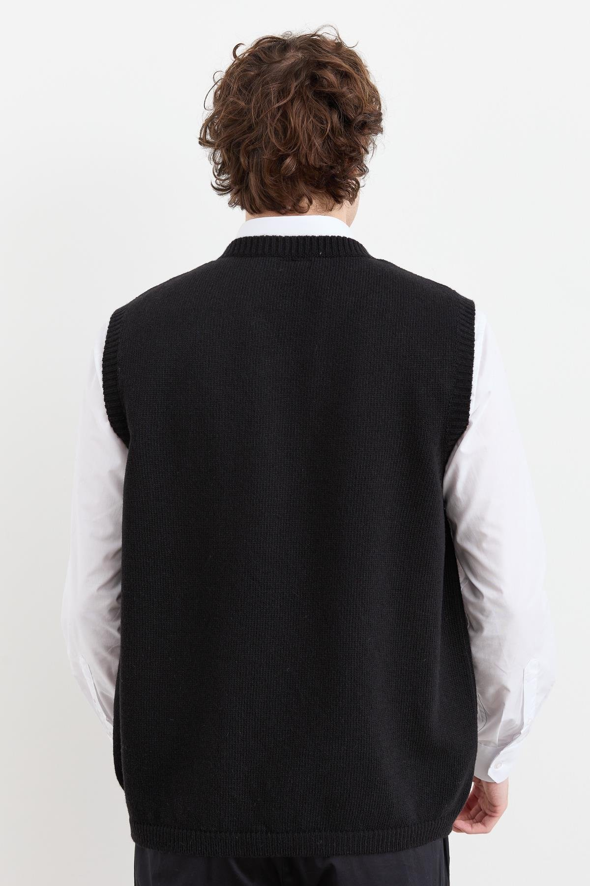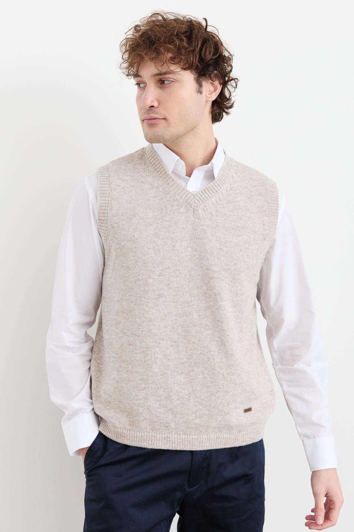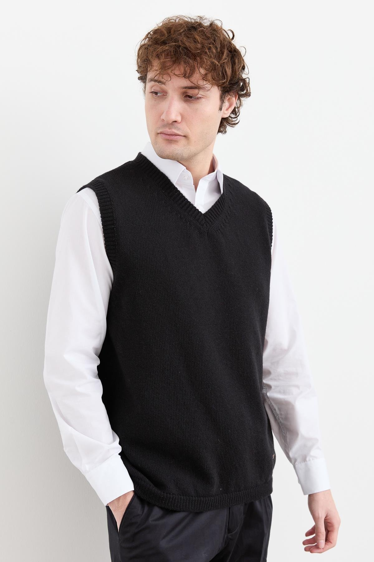 Erkek V Yaka Kalın Klasik Yün Süveter Desen
