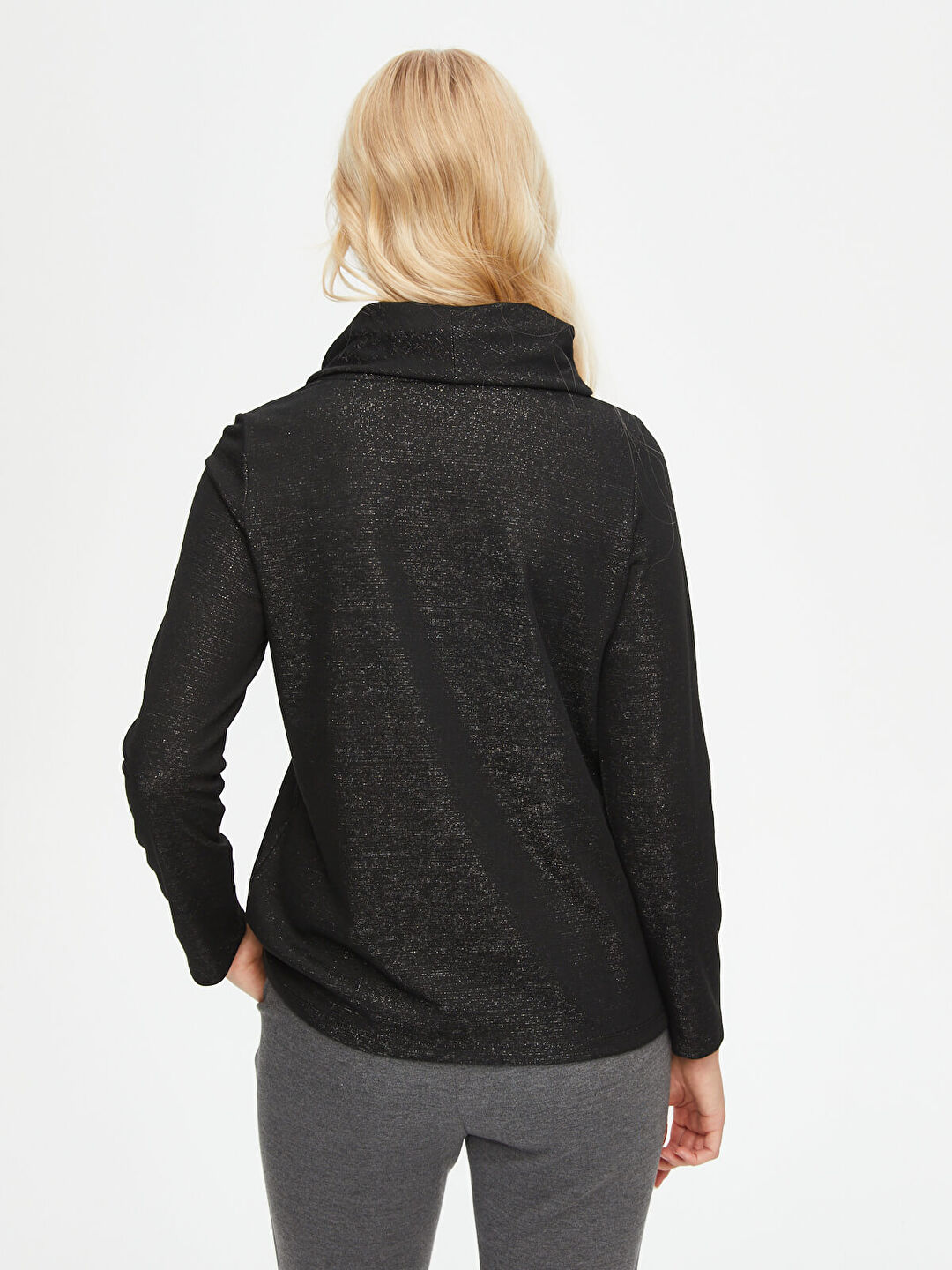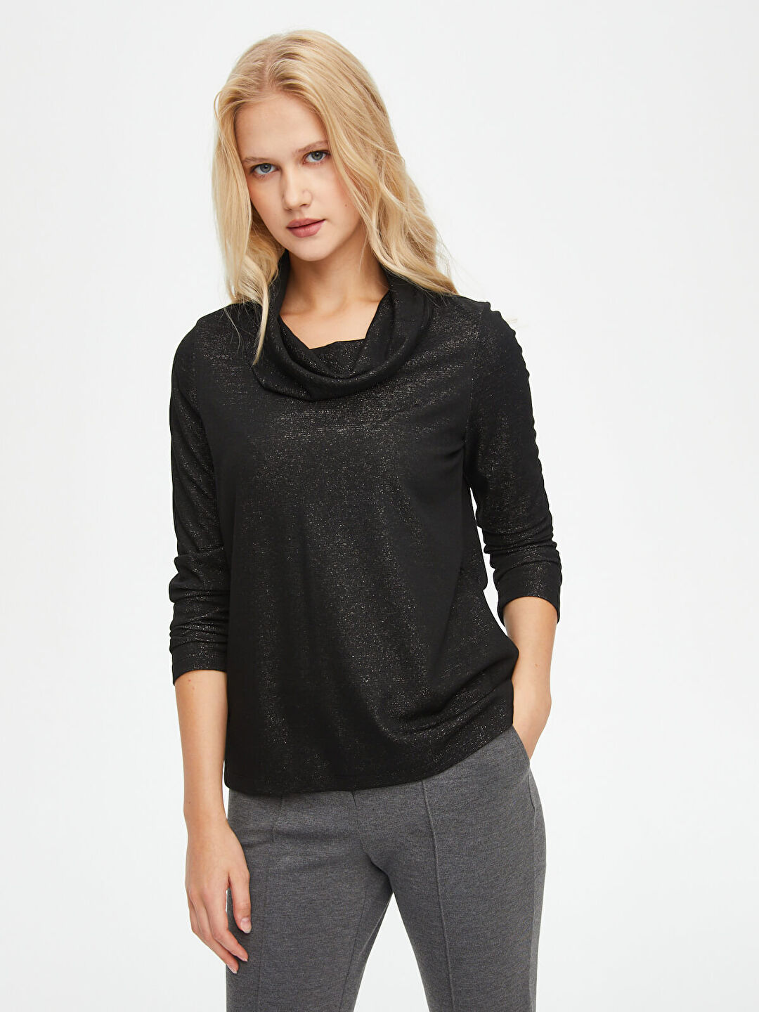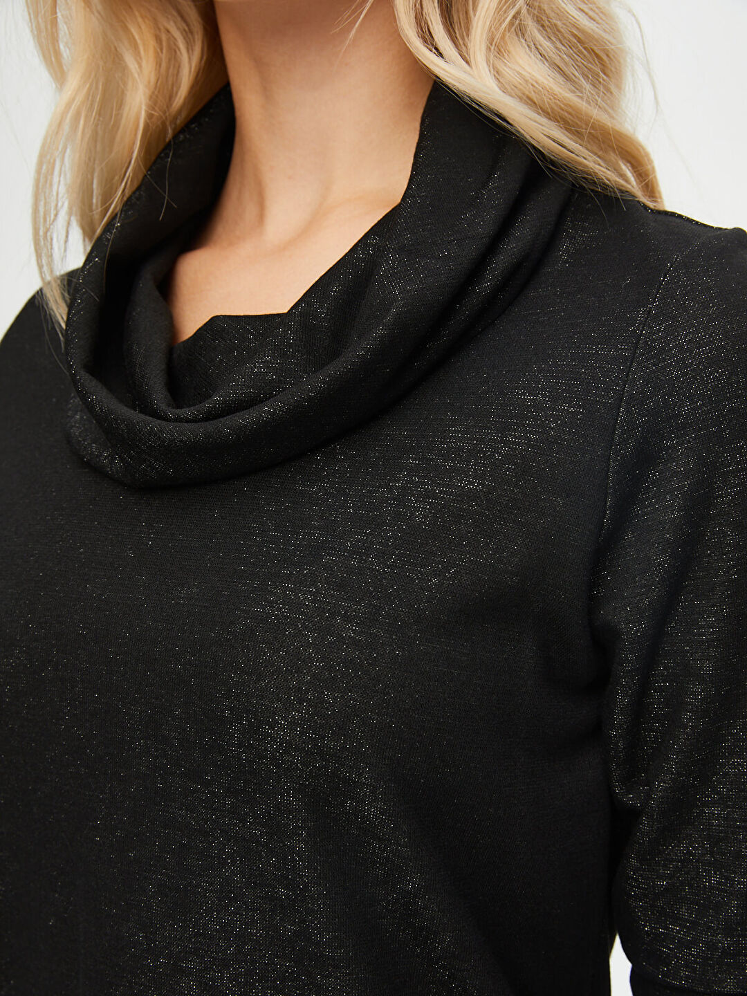 Faik Sönmez Kadın Degaje Yaka Simli Örme Bluz U69132%52 Polyester %28 Viskoz %13 Metalik %7 Elastan
