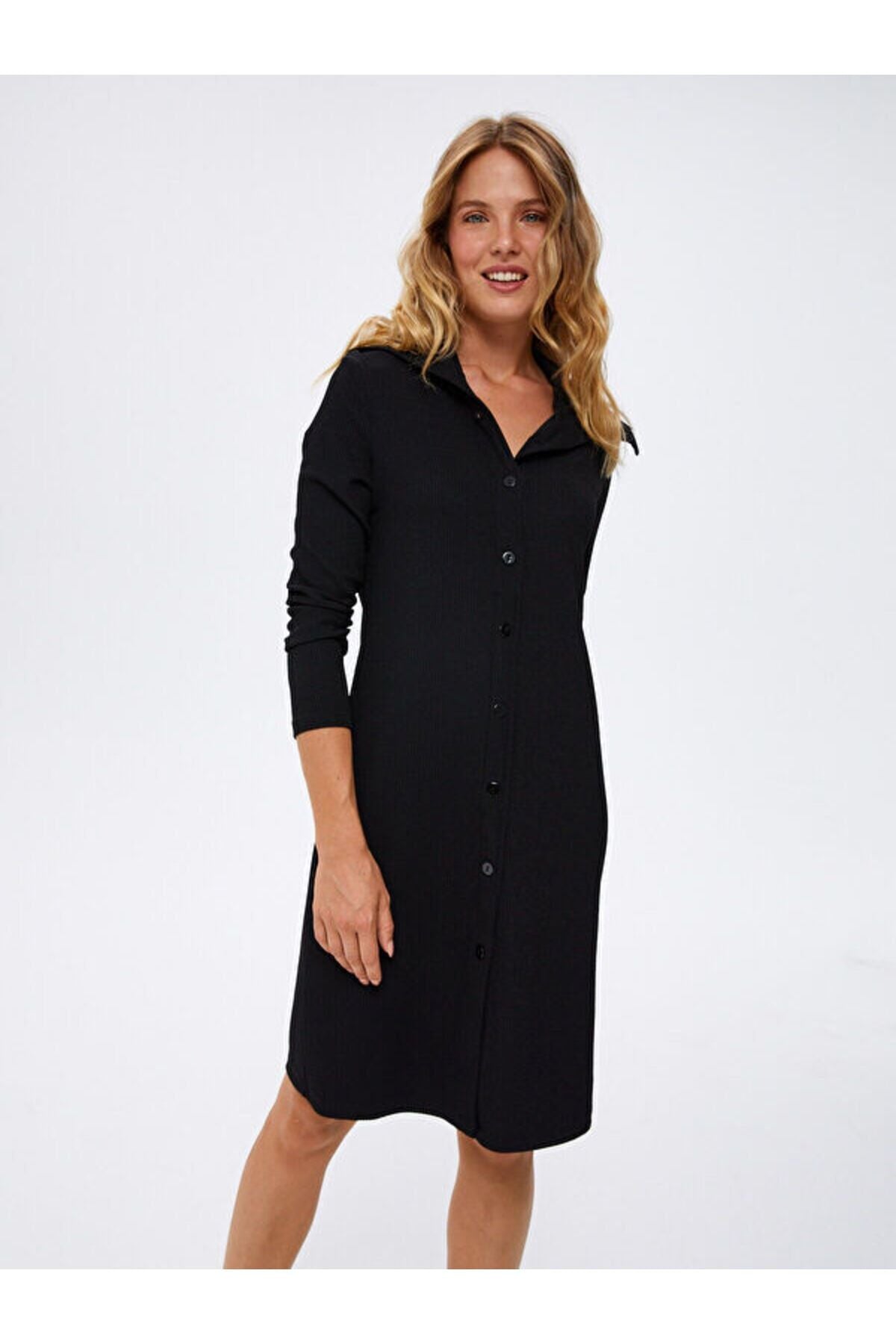 Ürün Adı : Kendinden Simli Dik Yaka Gömlek Elbise 67228; Üretim Yeri : Türkiye; %100 Polyester; Manken...