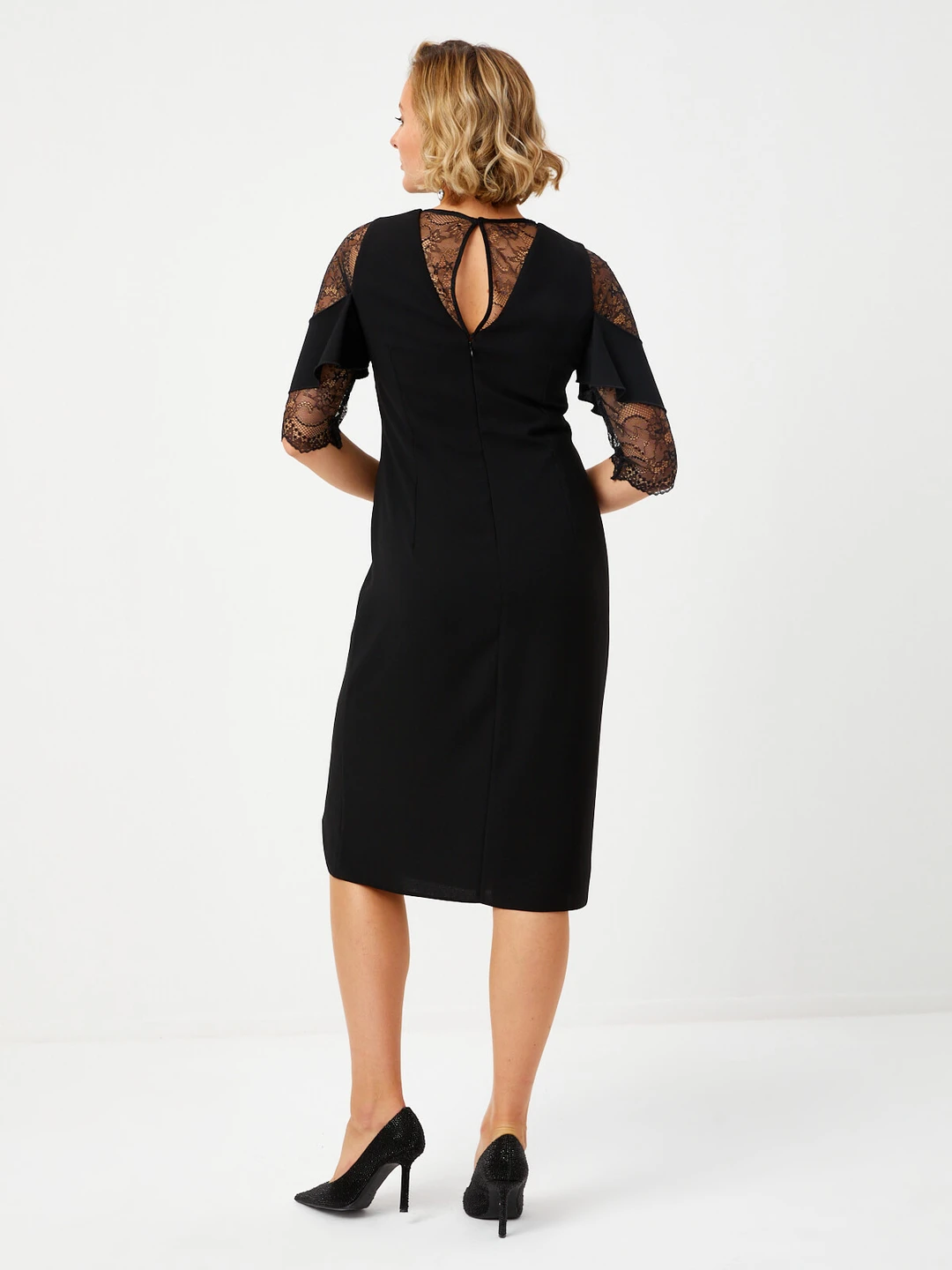 Ürün Adı : Dantel Garnili 3/4 Kollu Abiye Elbise 68107