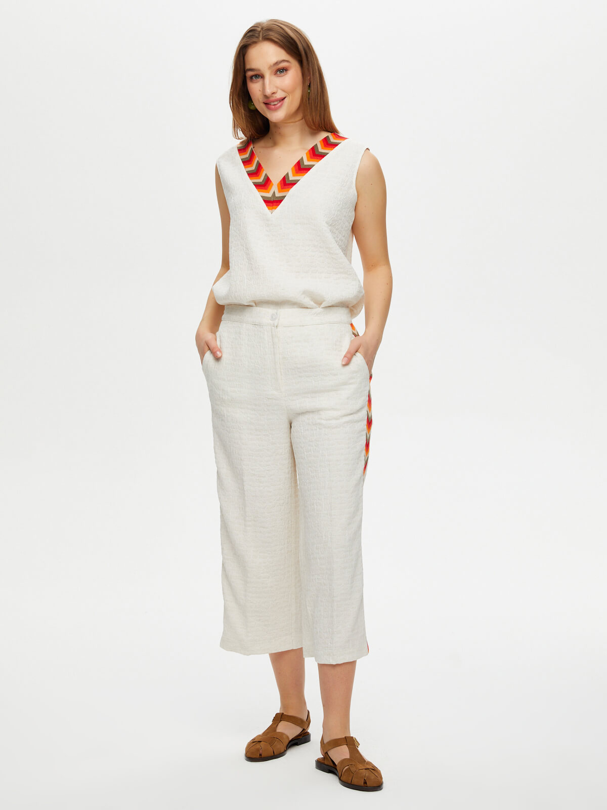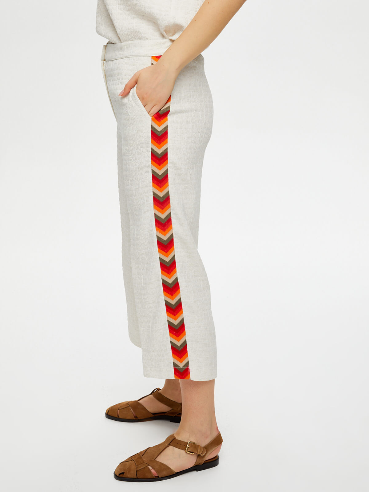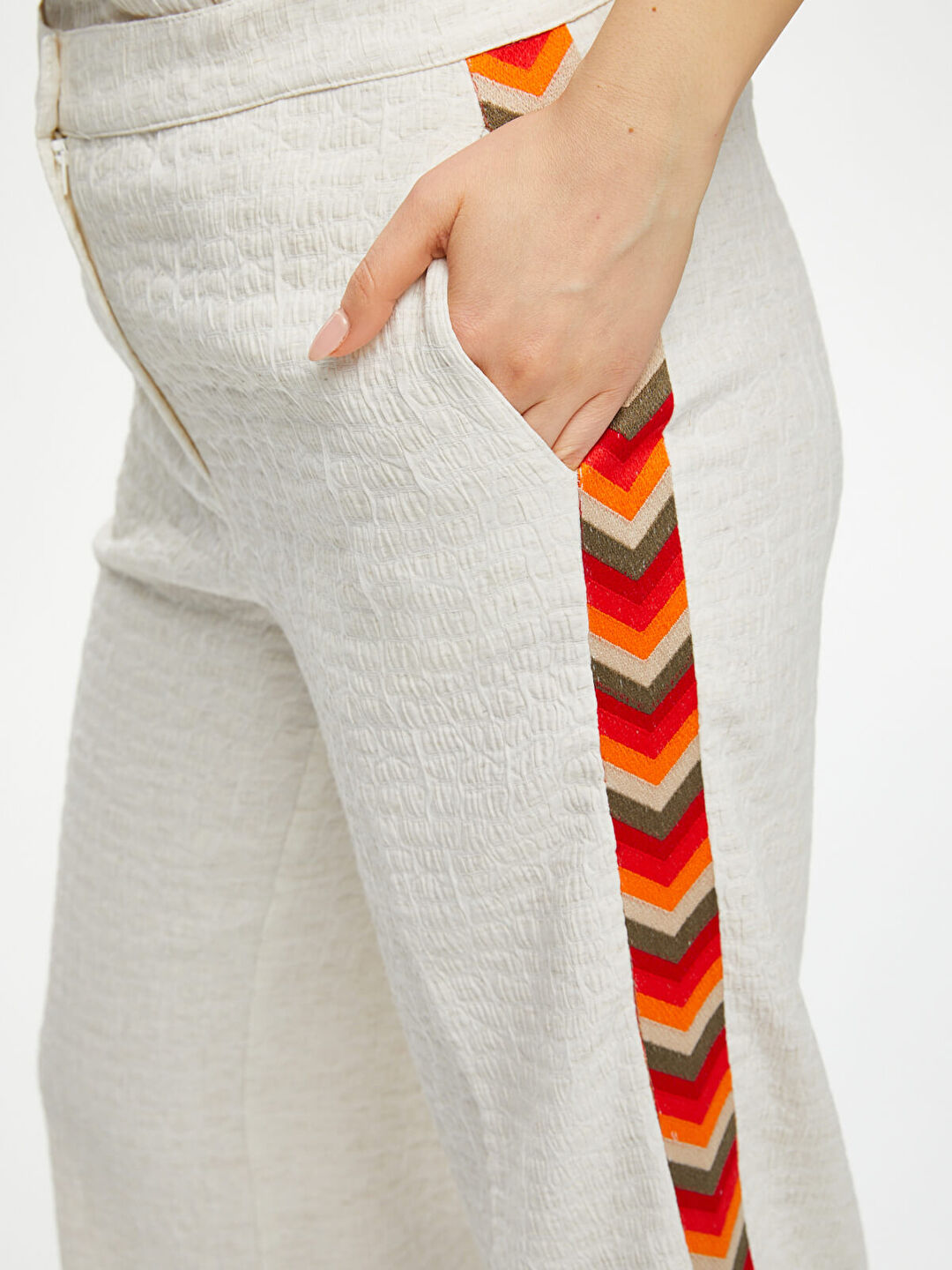 Kapri Yanları Renkli Nakışlı Kendinden Dokulu Wideleg Faik Sönmez%54 Polyester %35 Viskon %8 Keten %3 Elastan