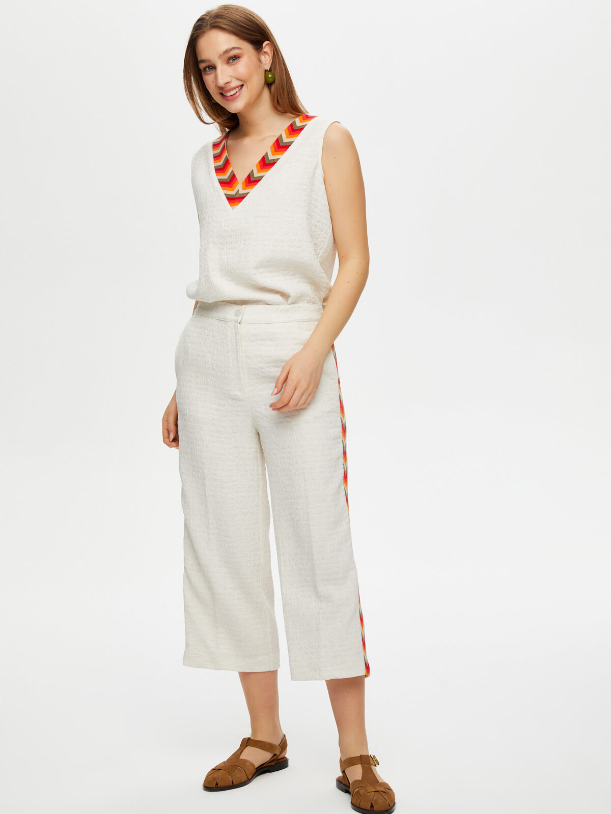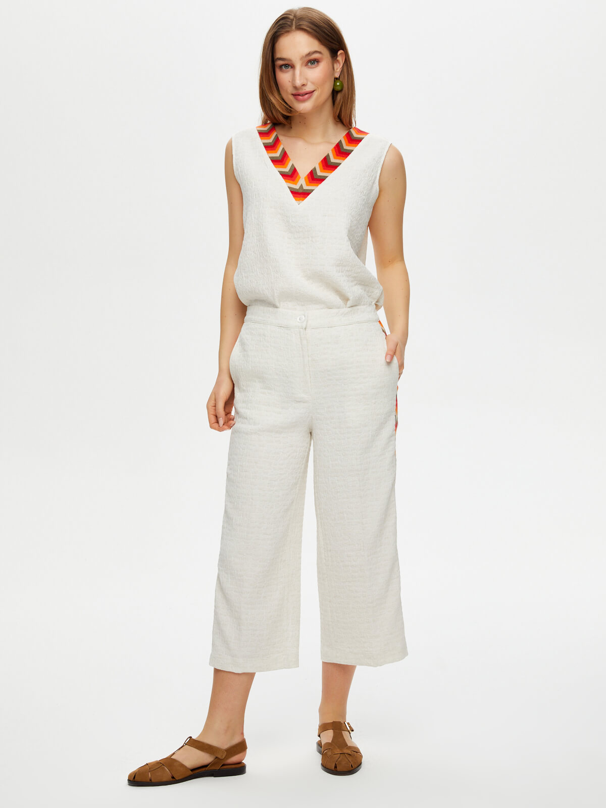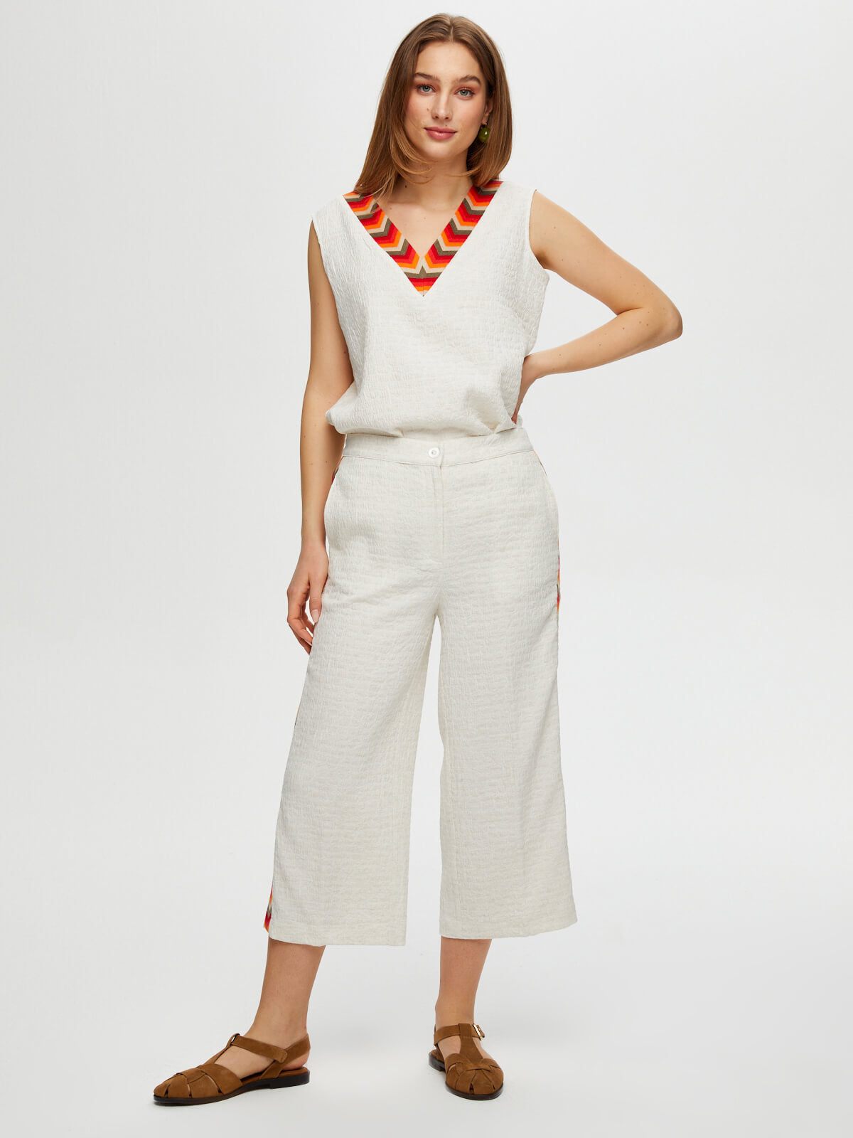 Kapri Yanları Renkli Nakışlı Kendinden Dokulu Wideleg Faik Sönmez%54 Polyester %35 Viskon %8 Keten %3 Elastan