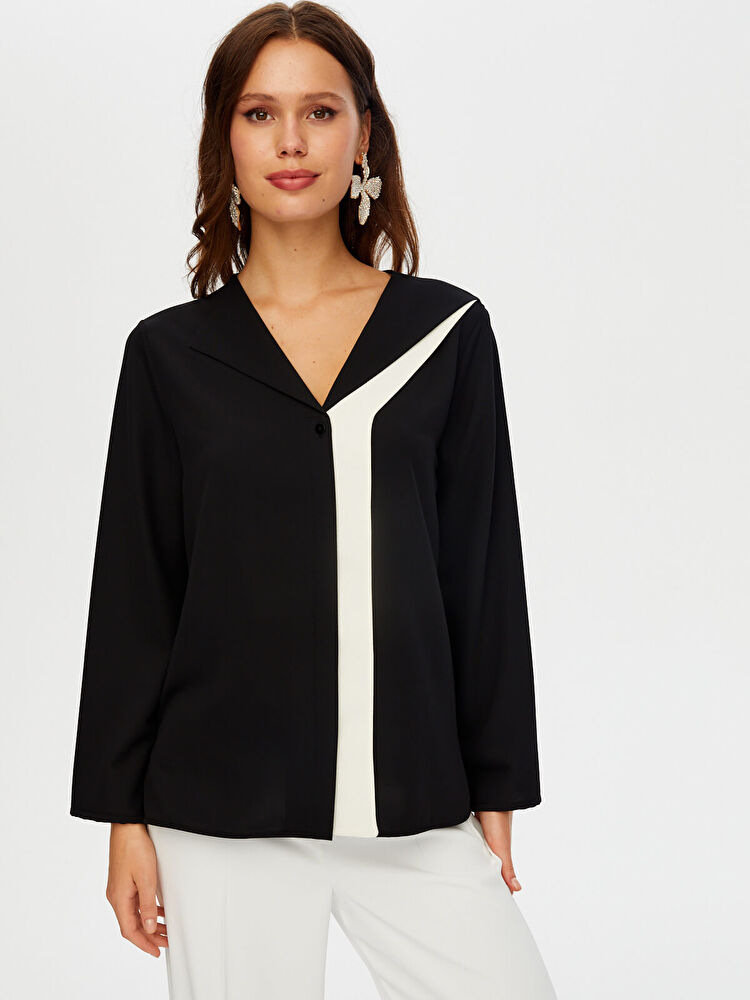 Faik Sönmez Kadın Renk Bloklu Devrik Yaka Gömlek UW26GML013