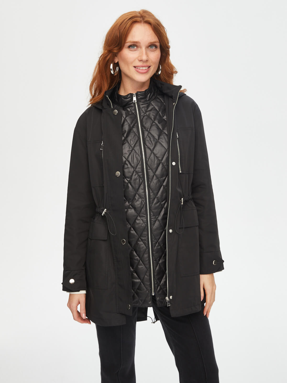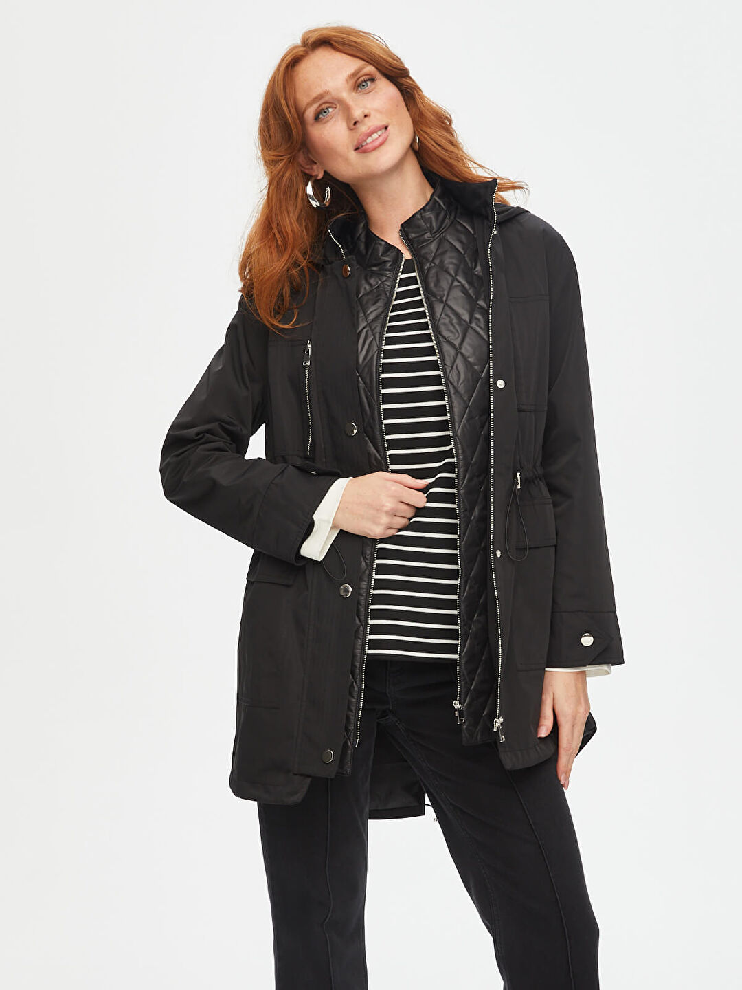 Faik Sönmez Kadın Kapitone Rüzgarlık Detaylı Kapüşonlu Trençkot U69524%100 Polyester