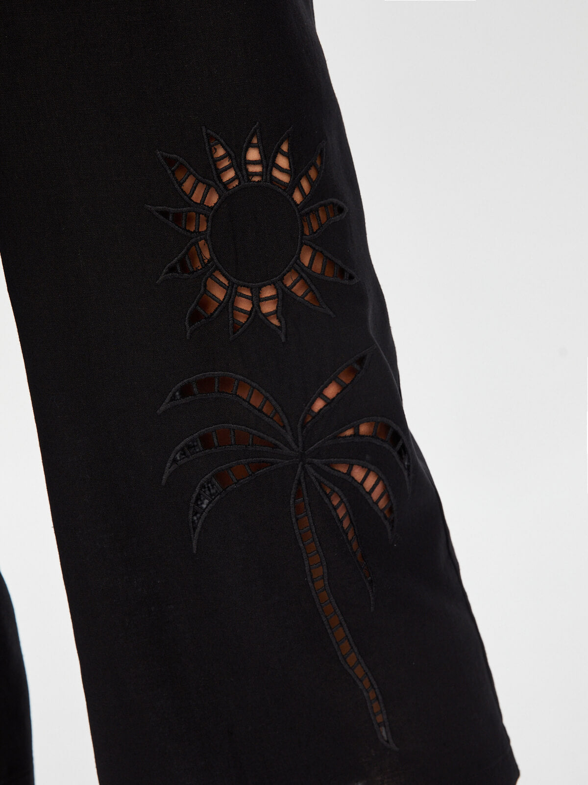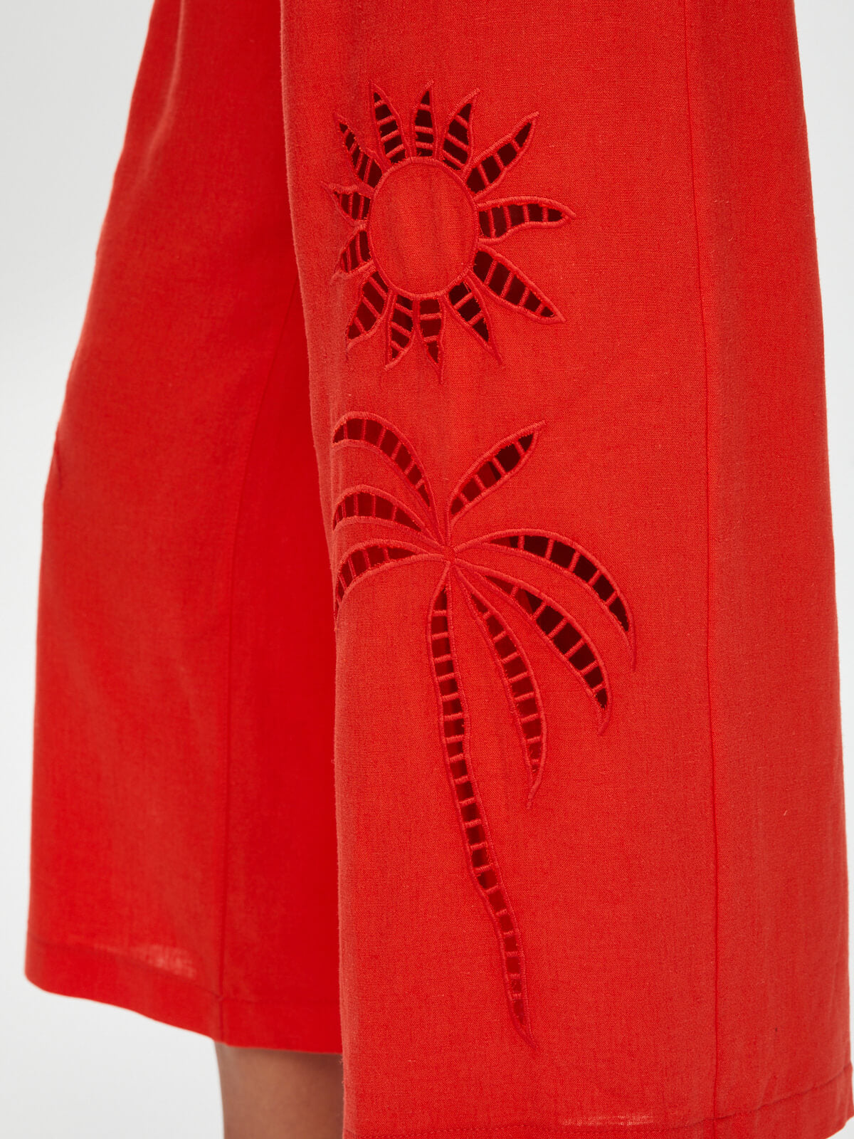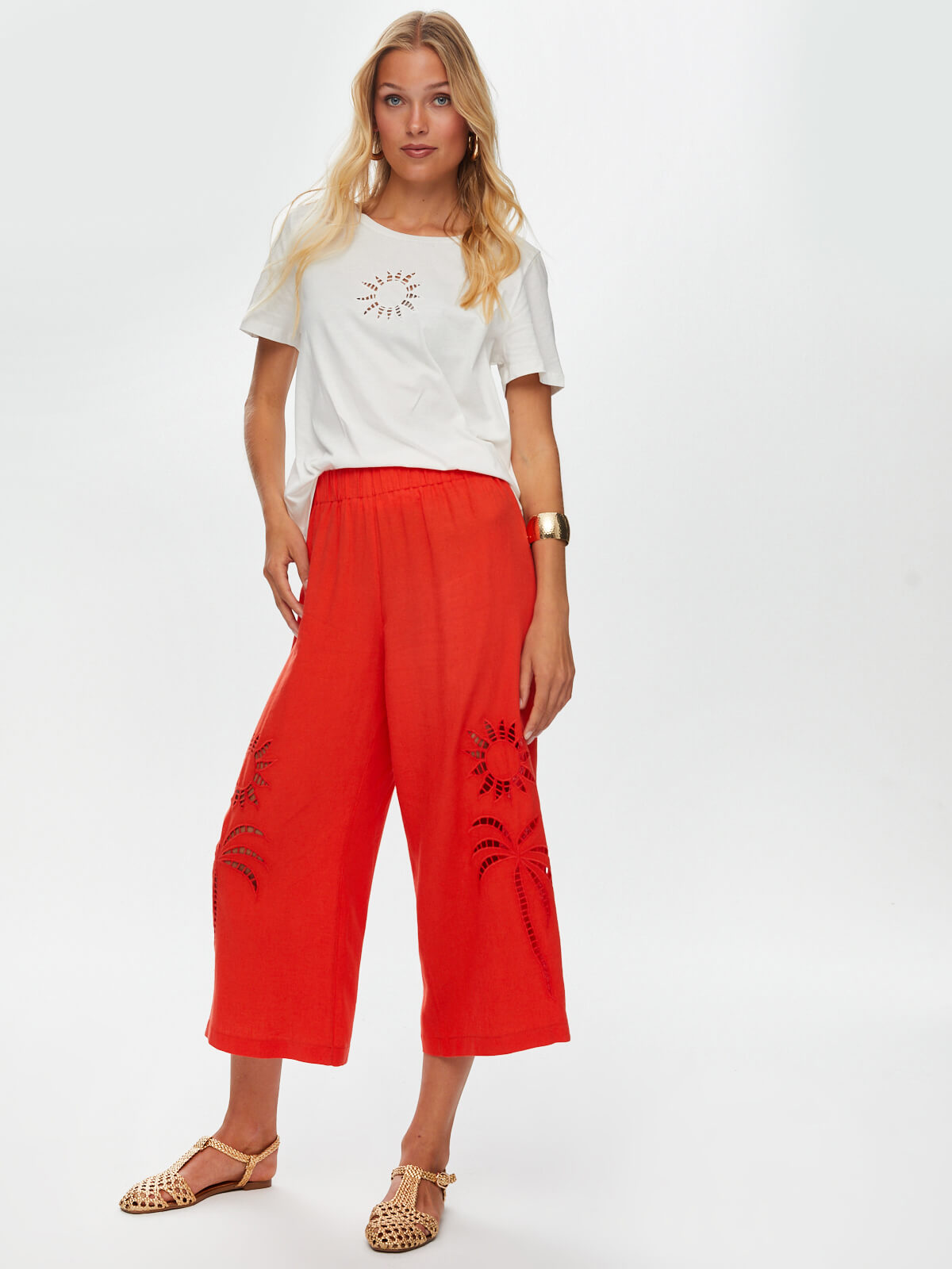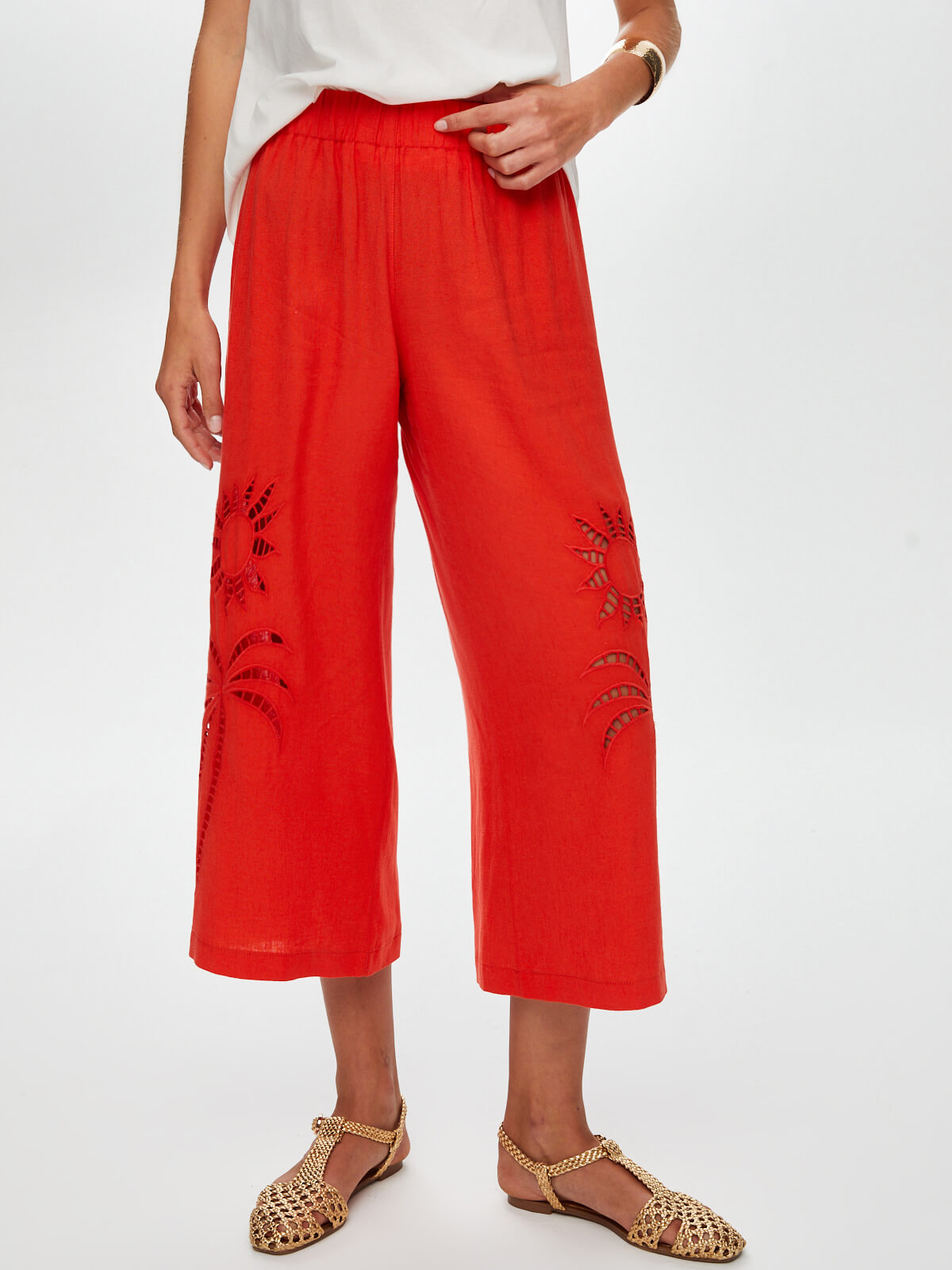Faik Sönmez Minimalist Keten Midi Kırpılmış Pantolon - Yazlık