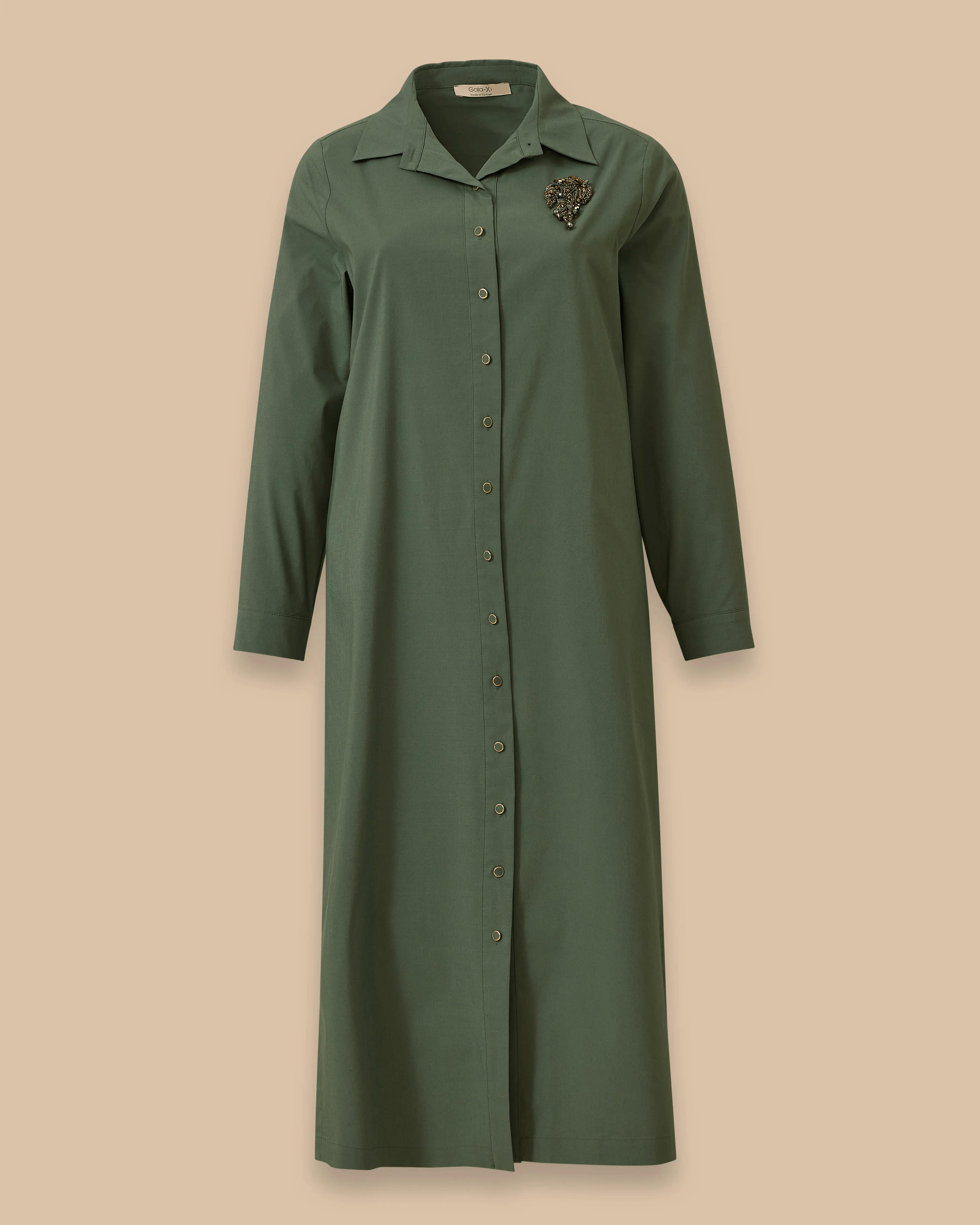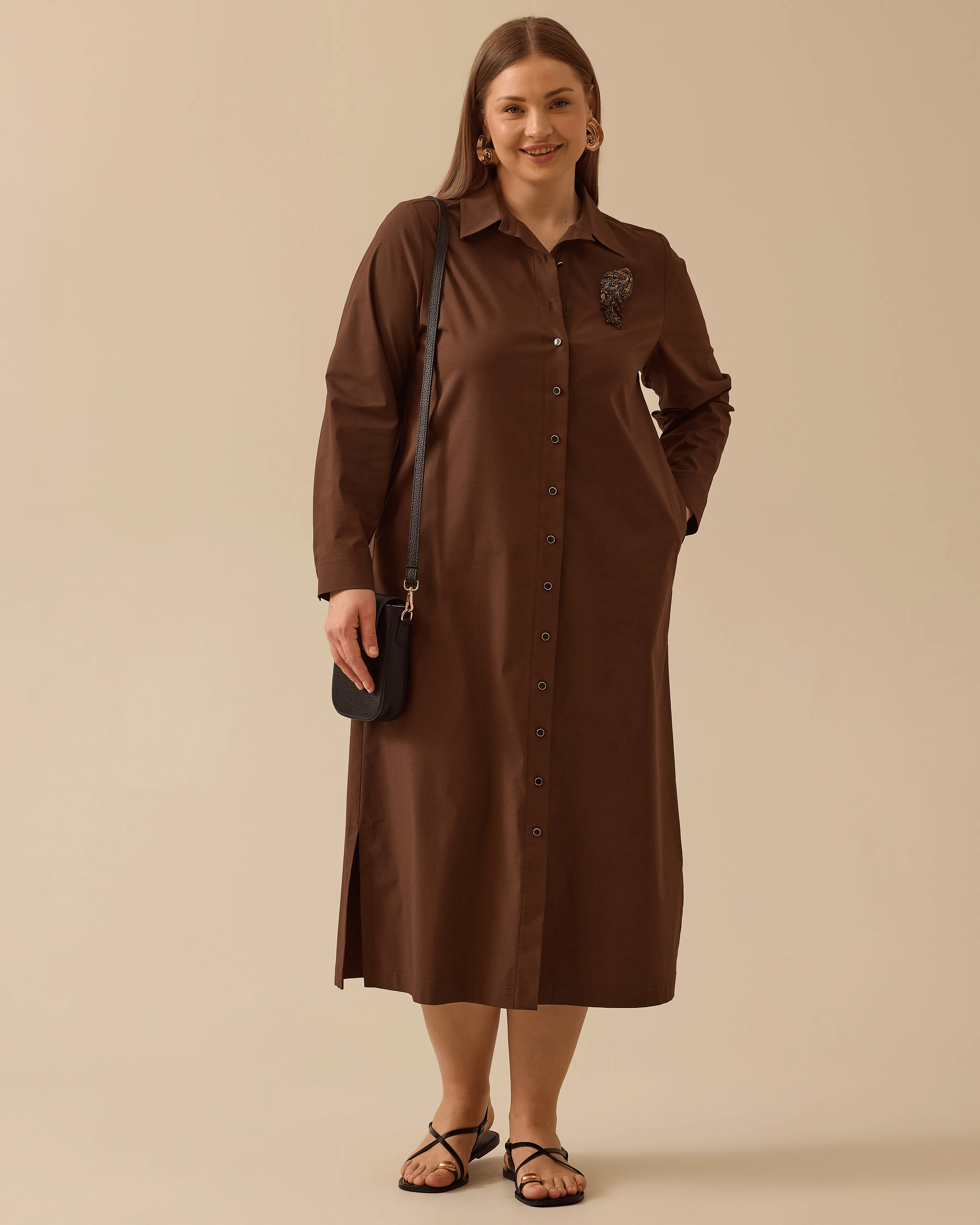 Büyük Beden Taş Detaylı Düğmeli Gömlek Elbise, klasik gömlek yaka ve zarif taş detayıyla şıklık sunar. Rahat kesimi ve yırtmaç detayıyla konforlu bir kullanım sağlar.