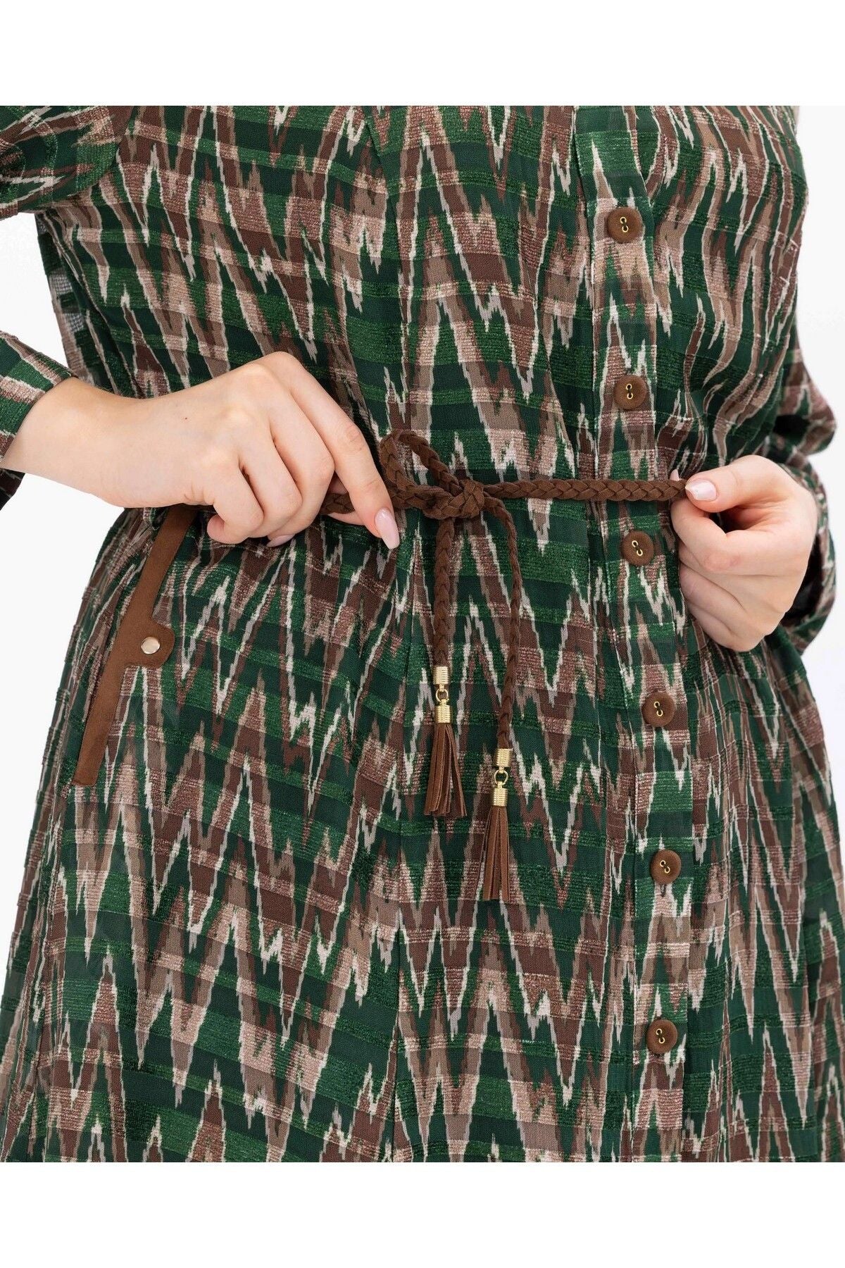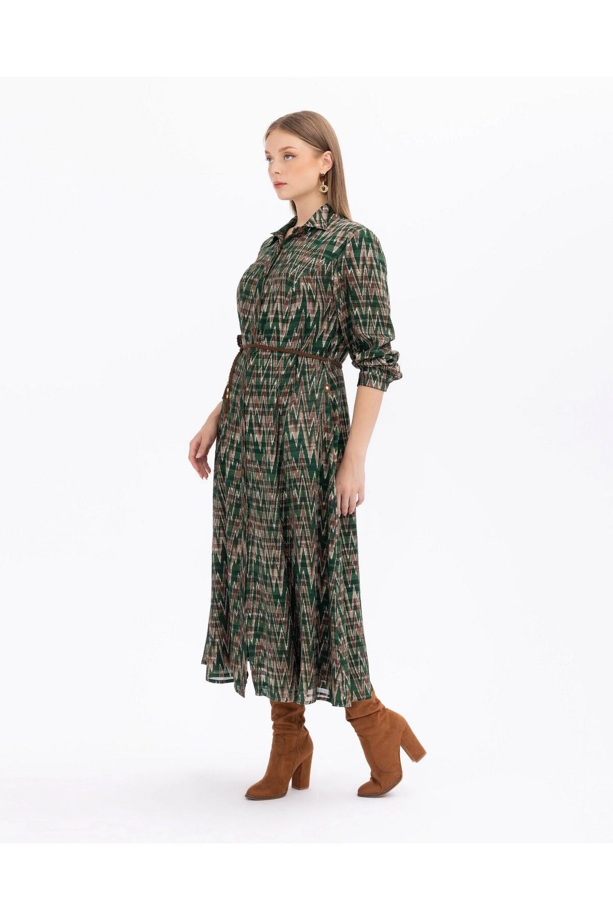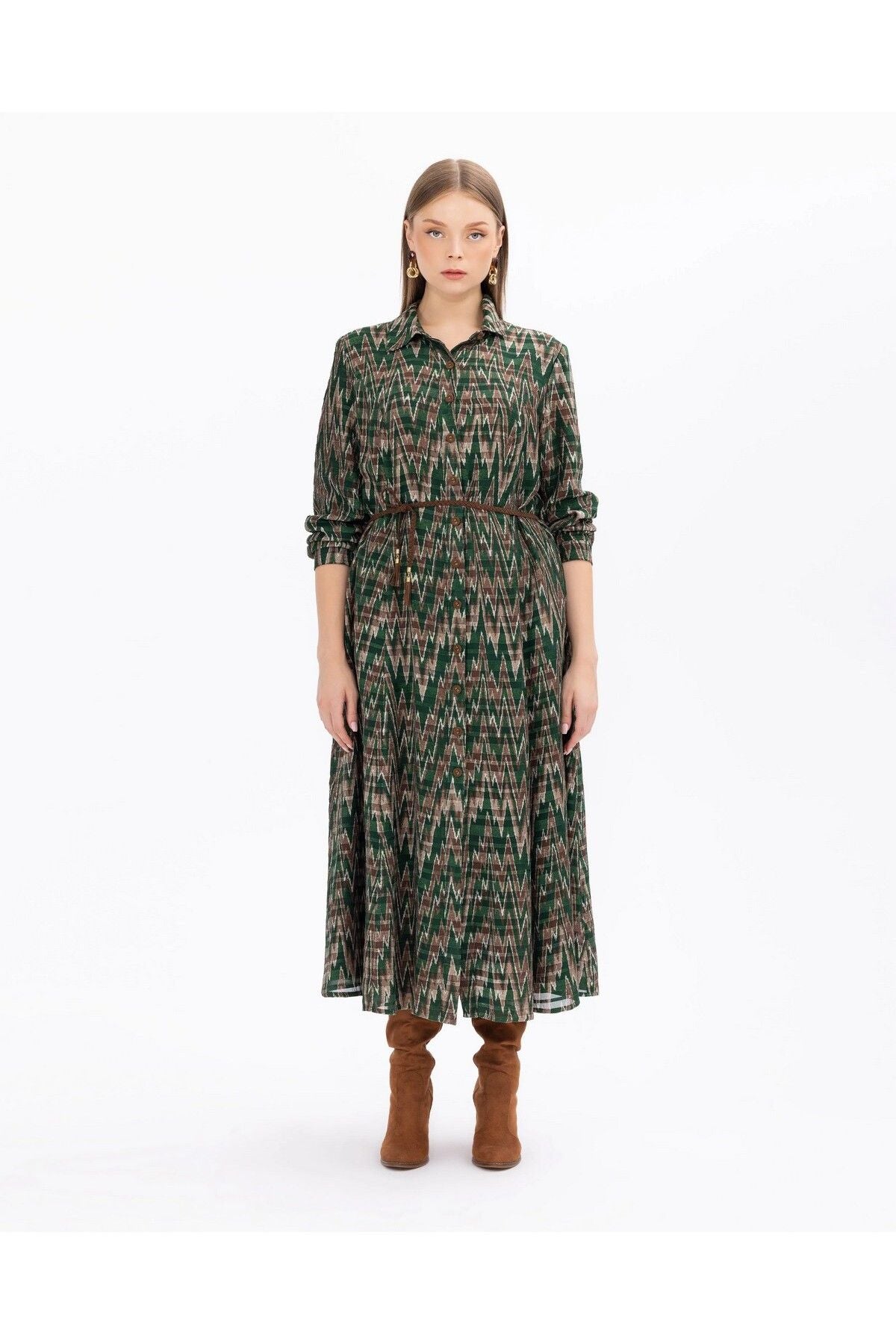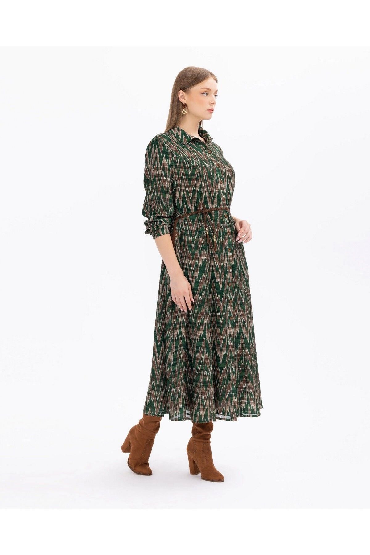 Büyük beden desenli midi boy gömlek elbise, şıklığı ve rahatlığı bir araya getirir. Benzersiz deseni ile dikkat çekerken, rahat kesimi sayesinde günlük kullanıma uygun bir seçenek sunar. Şık ve konforlu bir görünüm için idealdir; Ürün Özellikleri; Aksesuarlı Cep Detaylı Uzun Kol Kemerli Düğmeli Gömlek Yaka Takma Kol Bele Oturan Midi Boy Cepli Astarlı Yırtmaç Detaylı Düğme Detaylı Örnek Beden: 44 Manken Boyu 180 Ölçüler: 102 / 80 / 104