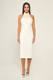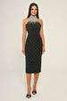 Halter Yaka Boncuklu Krep Midi Abiye Elbise Alfa Beta B7028