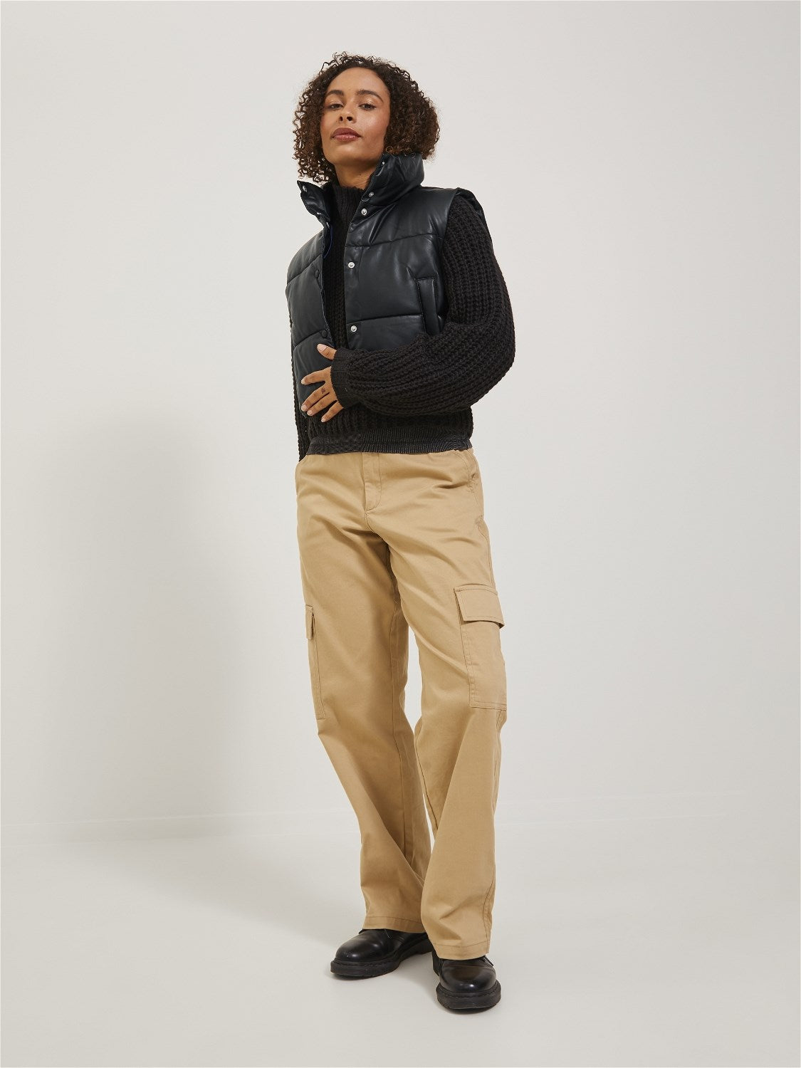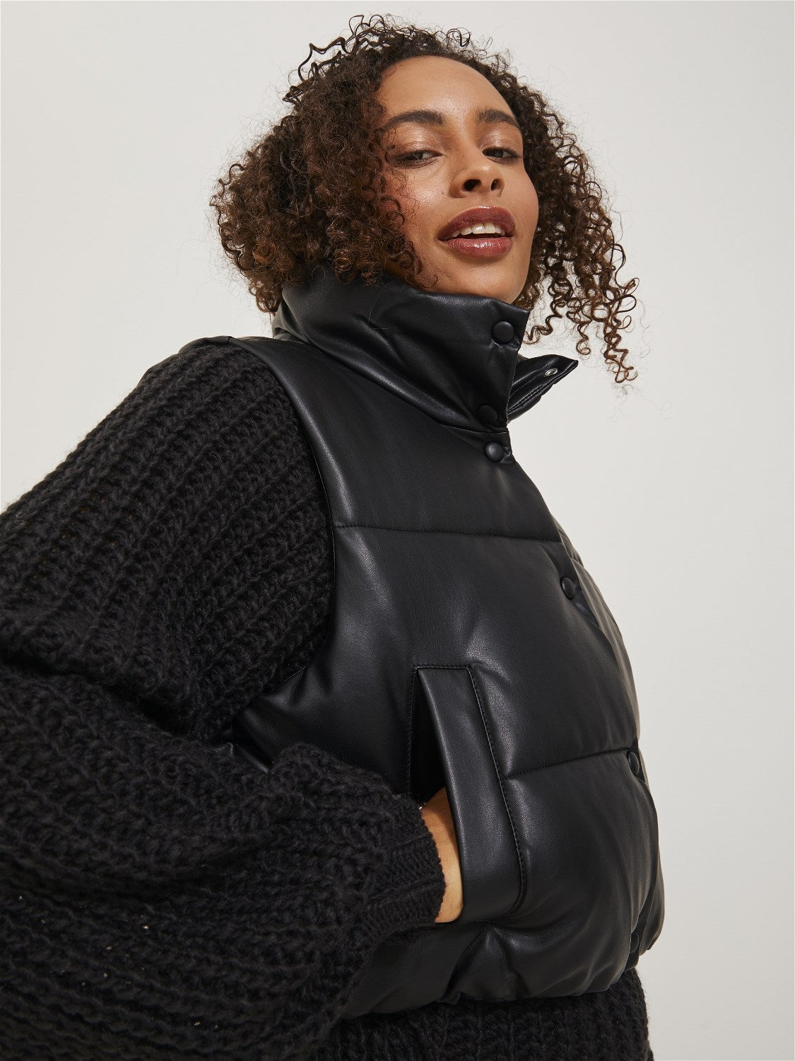 Hava durumuna göre tişört veya sweatshirt ile kolayca kombinlenebilen bir jile ile rahat bir görünüm elde edin; Suni deri, hakiki deriye benzeyecek şekilde tasarlanmıştır. Hafiftir ve bakımı kolaydır; - Ürün Tipi : Şişme Yelek; - Yaka : Yüksek Dik Yaka; - Kol : Kolsuz (S/L); - Kapanış: Önden düğme ilikleme; - Uzunluk/Boyut : Kısa; - Astar: Rahat bir his için polyester astar; Kompozisyon: %85 Viskon - Poliüretan kaplamalı, %15 Polyester-Poliüretan kaplamalı;