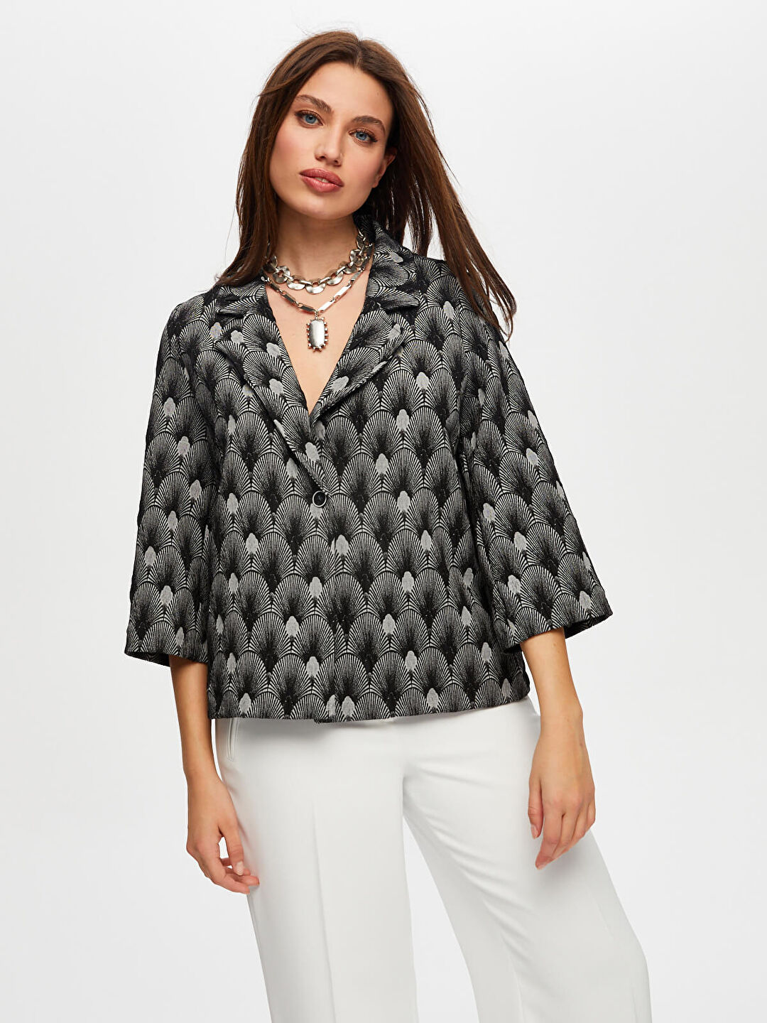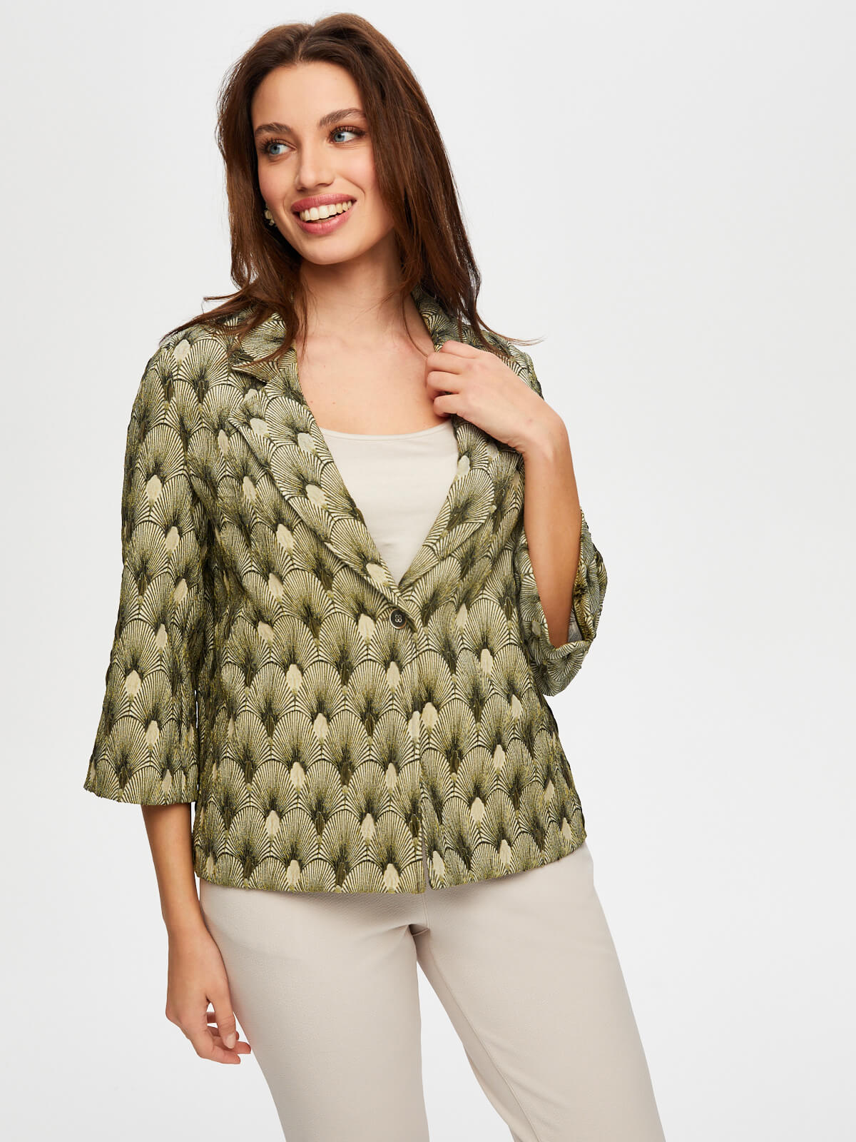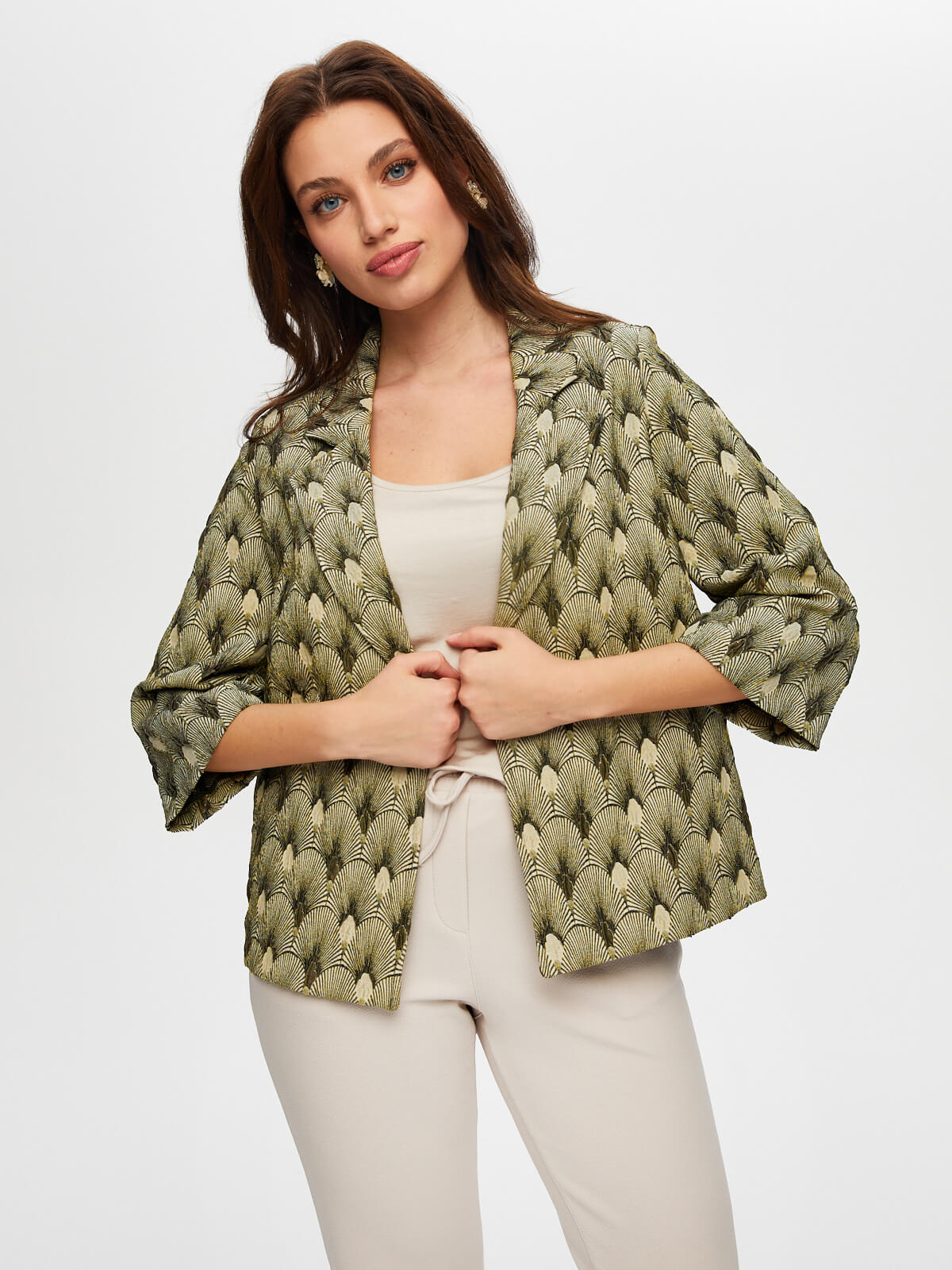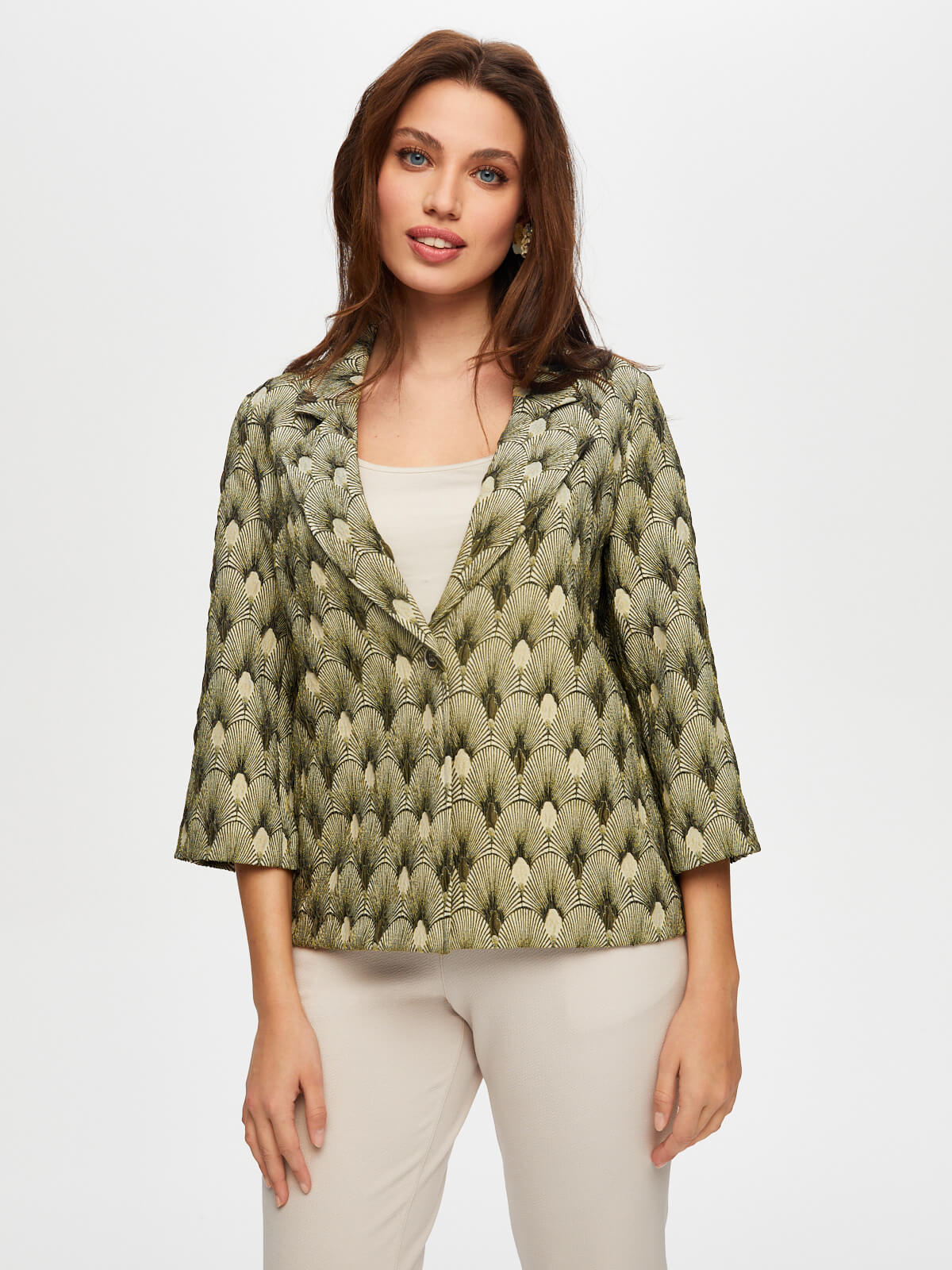 Kadın Kendinden Jakarlı 3/4 Kol Ceket Faik Sönmez