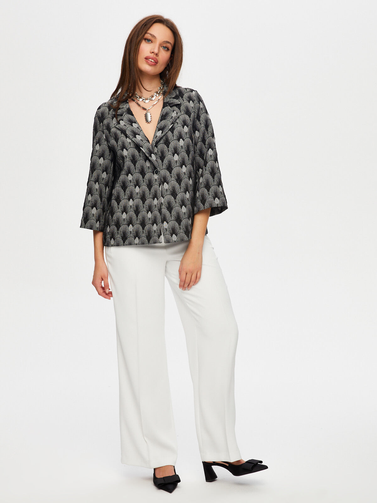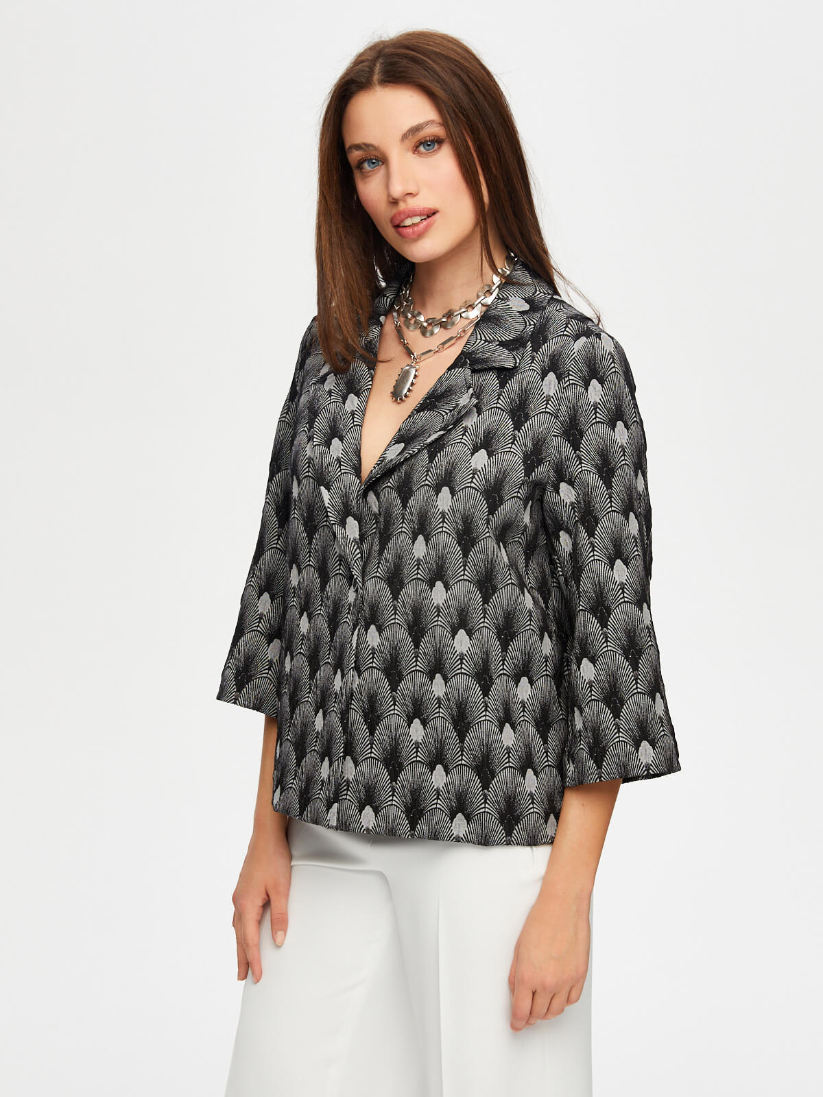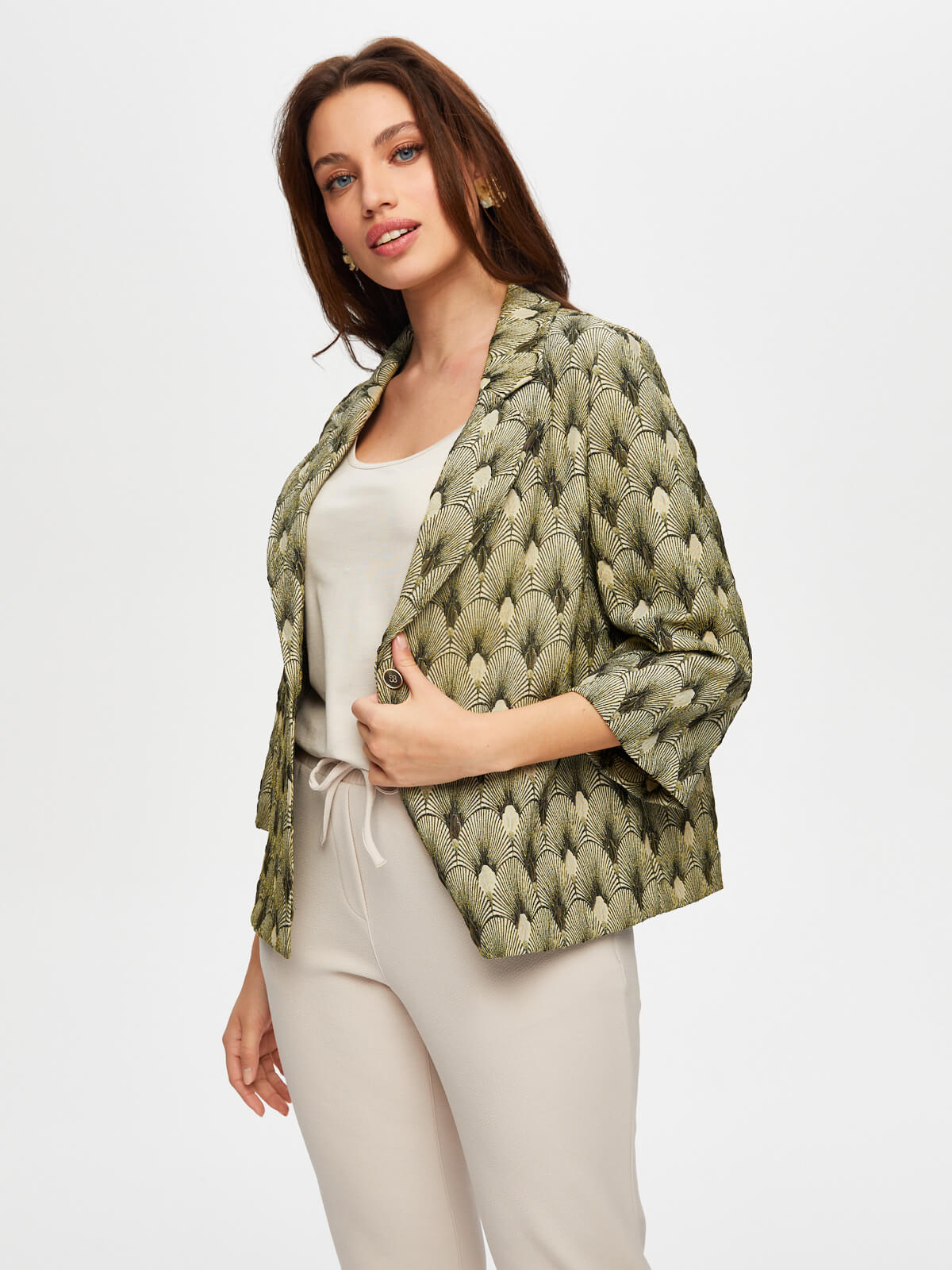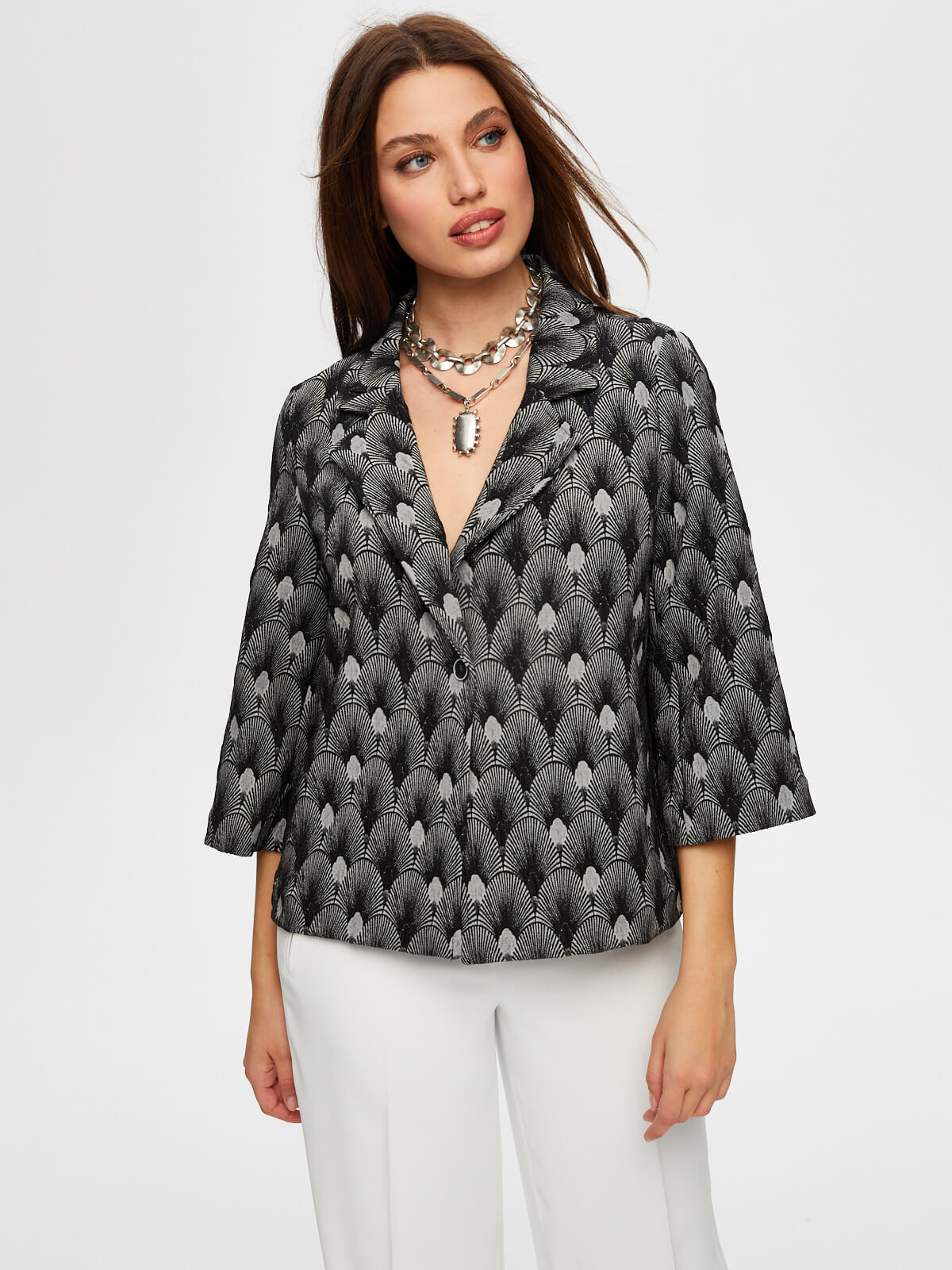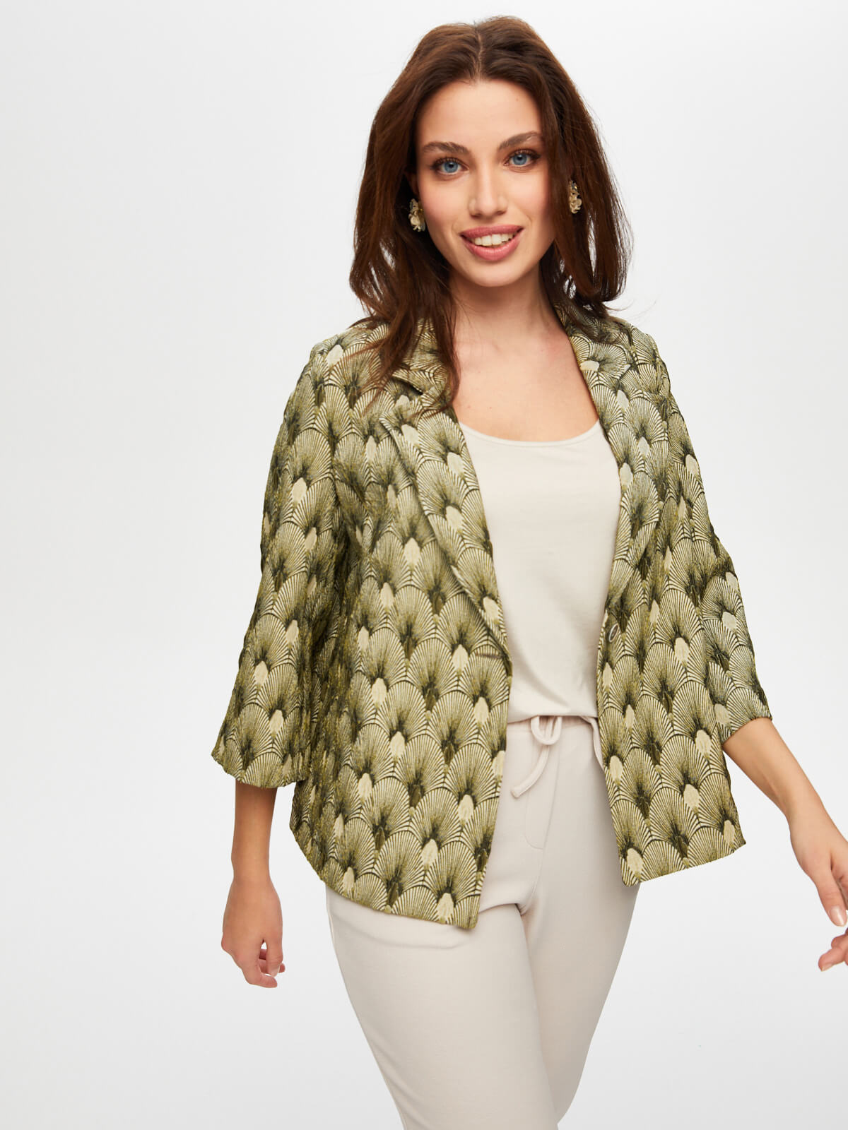 Kadın Kendinden Jakarlı 3/4 Kol Ceket Faik Sönmez