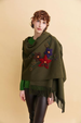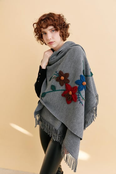 Kadın Örgü Çiçek İşlemeli Püsküllü Şal Desen