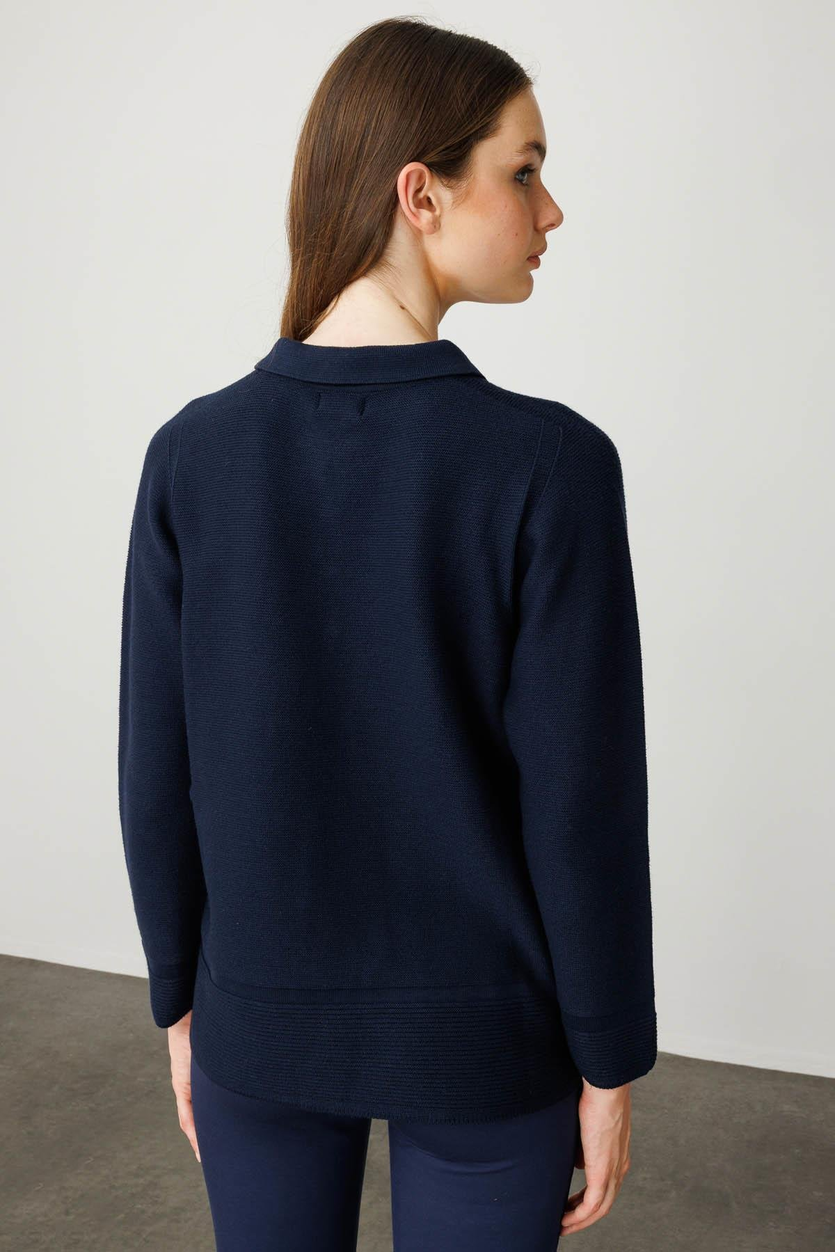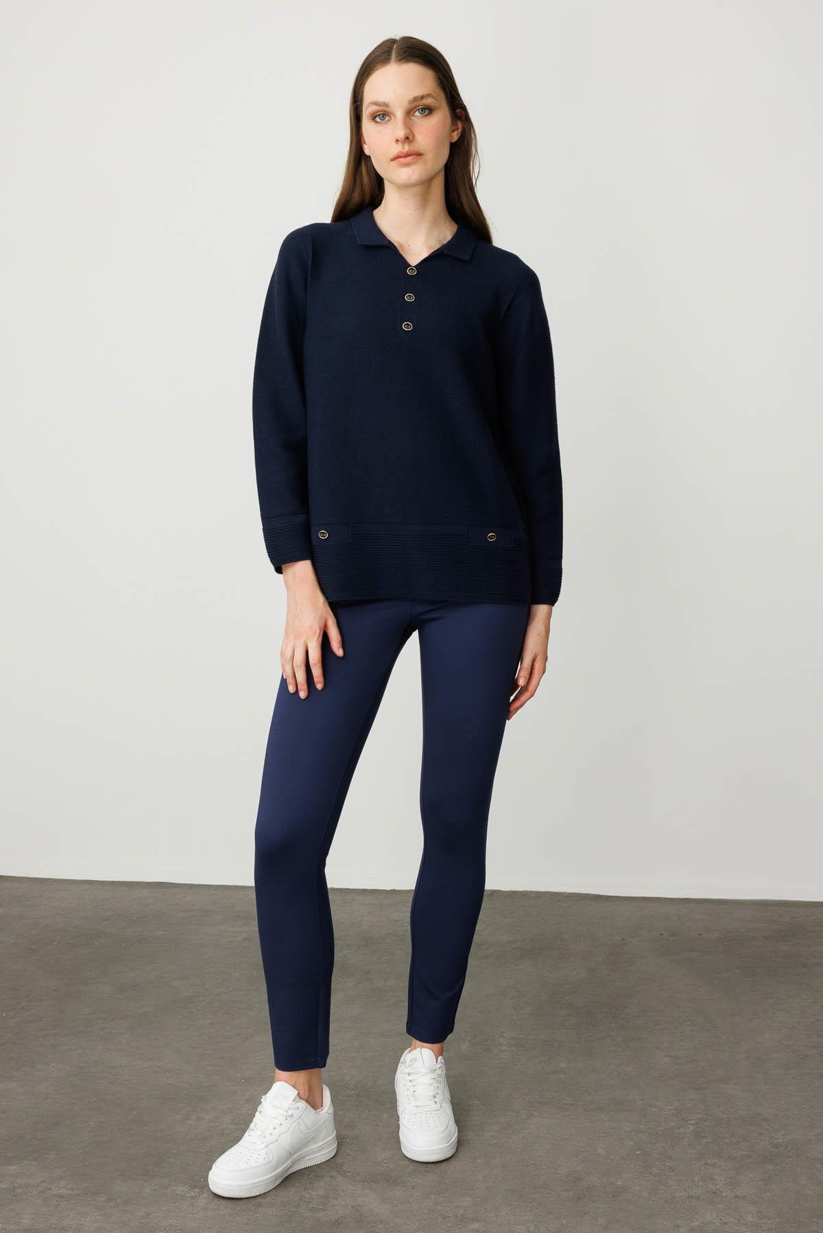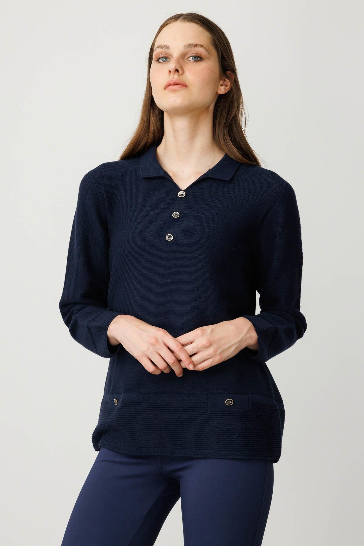 Kadın Polo Yaka Sahte Cepli Bluz Desen