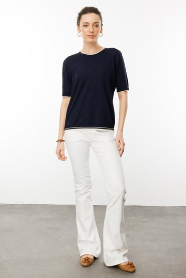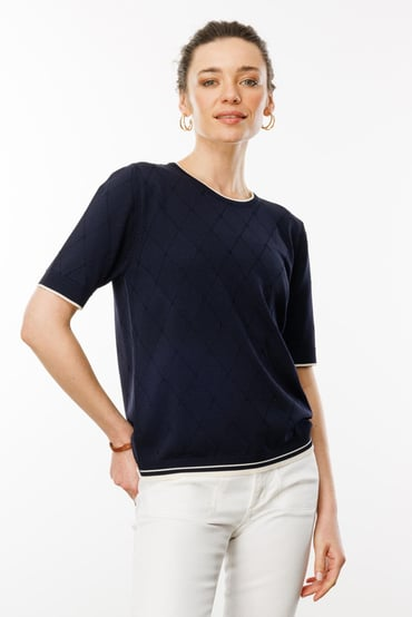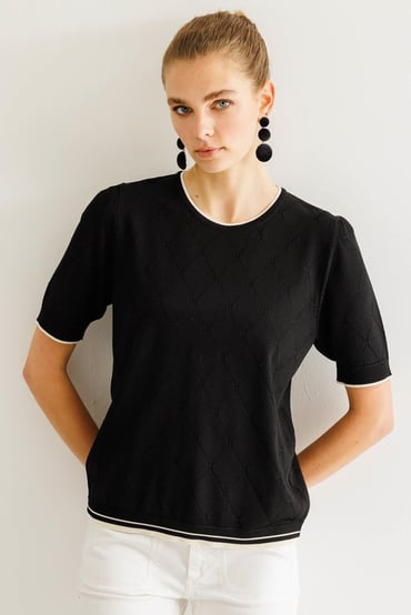 Kadın Sıfır Yaka Baklava Desenli Yazlık Triko Bluz Desen