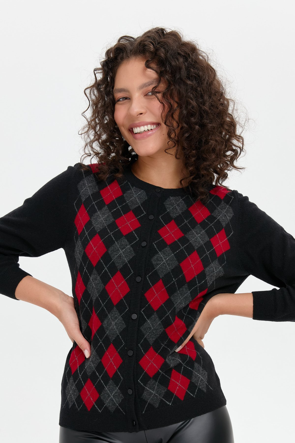 Kadın Sıfır Yaka Önü Baklavalı Yün Hırka Desen