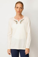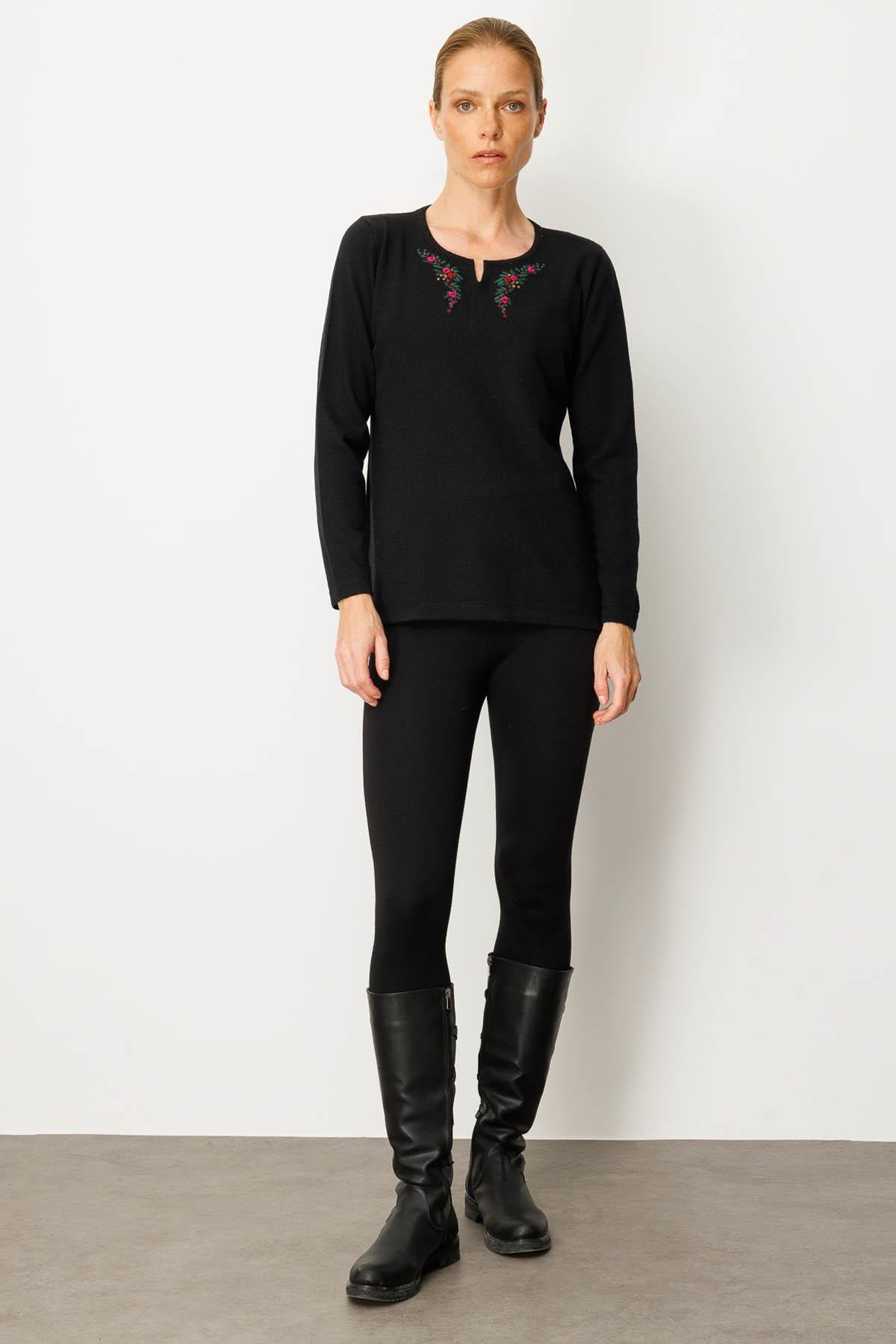 Kadın Sıfır Yaka Yaka Kenarı İşlemeli Yün Bluz Desen
