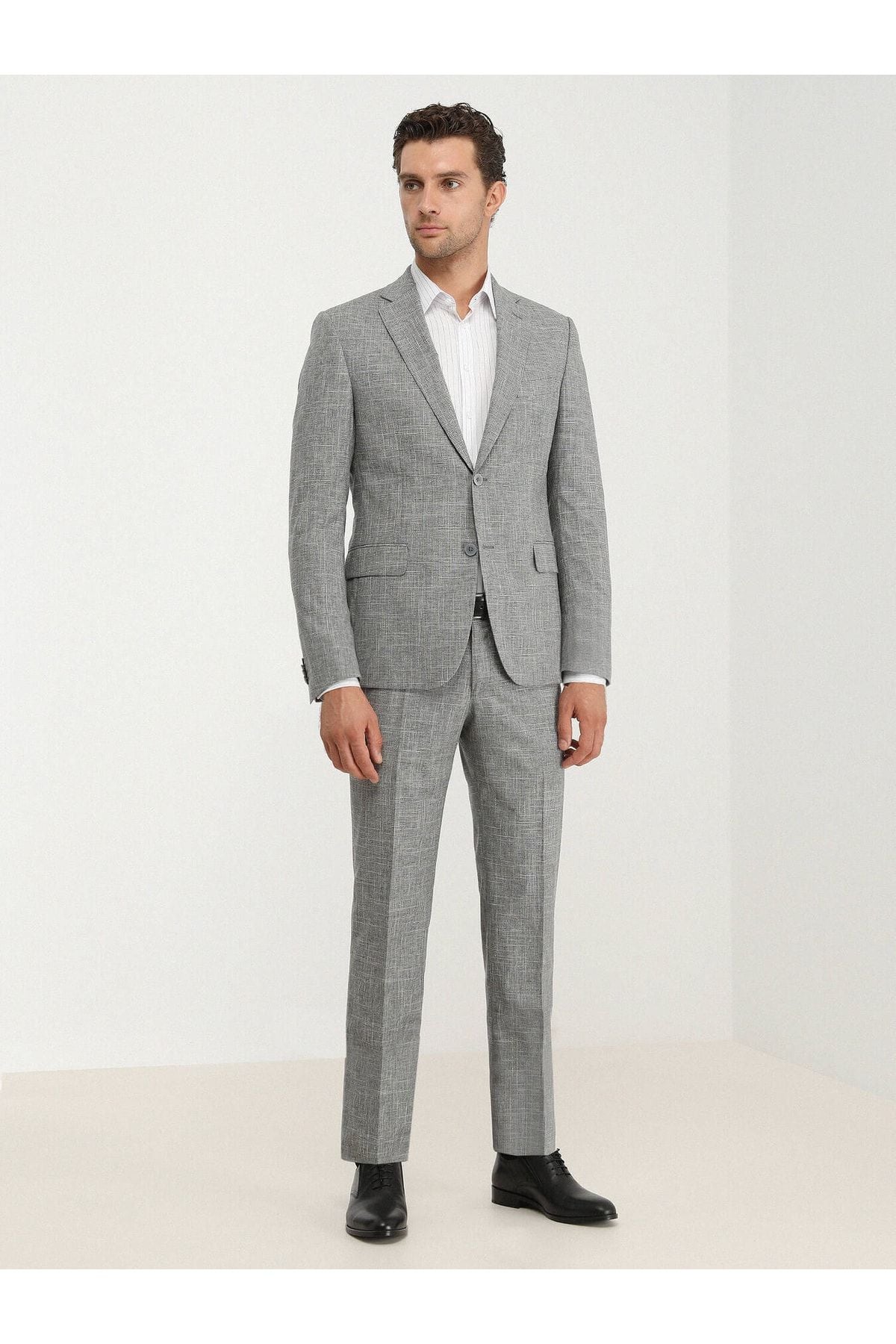 Takım Elbise; Desen: Mikro; Line: Klasik; Yaka: Kelebek Yaka; Paça: Klasik Paça; Fit: Modern Fit; Yırtmaç: Tek Yırtmaç; İç Astar: Yarım Astarlı; Çalışma Tipi: Soft; Cep: Kapaklı Cep; Karışım: %43 Pamuk, %26 Saf Yün, %18 Viskon, %11 Keten, %2 Elastan;