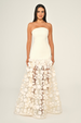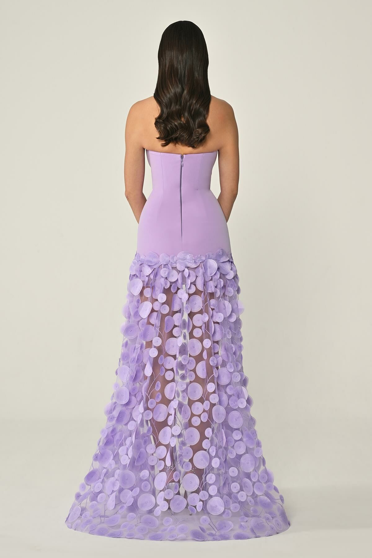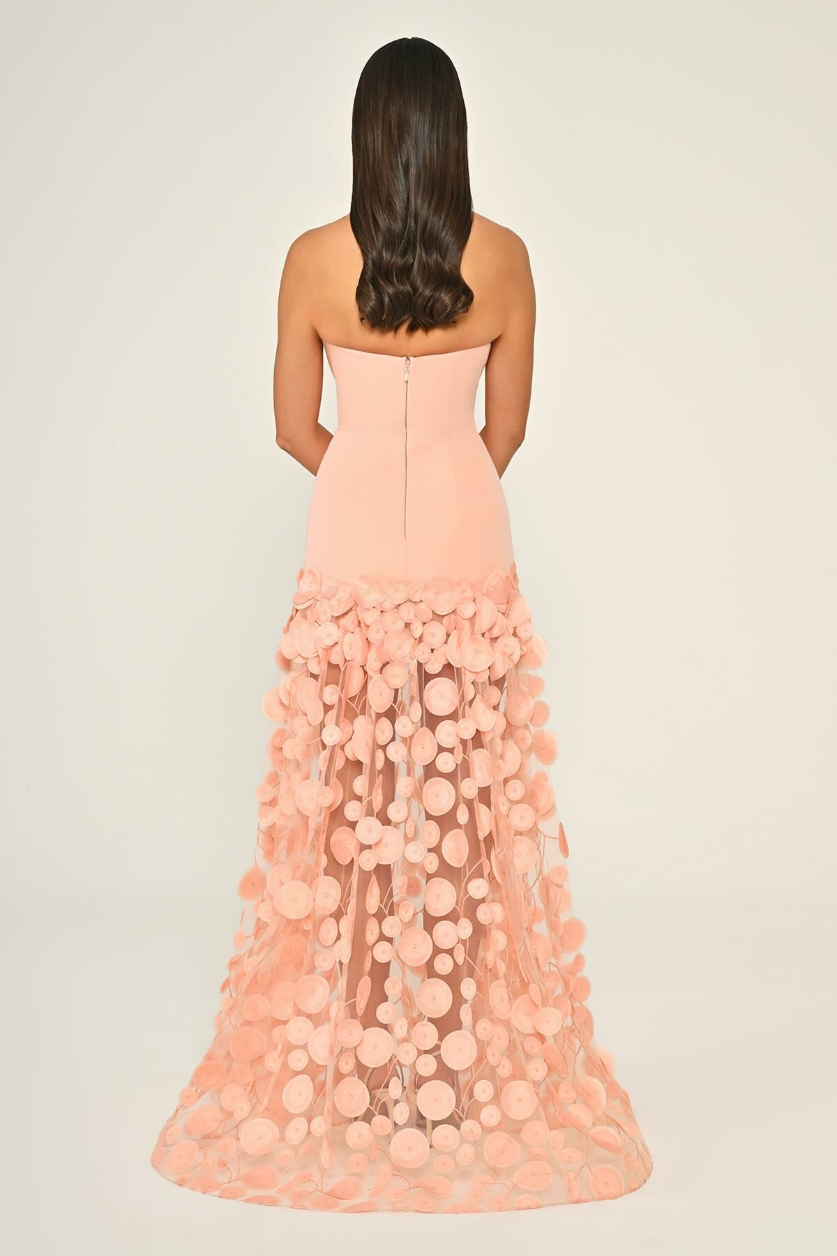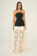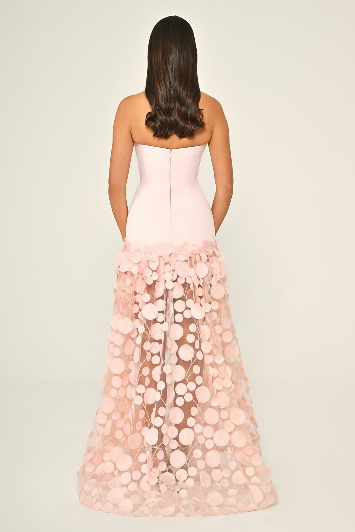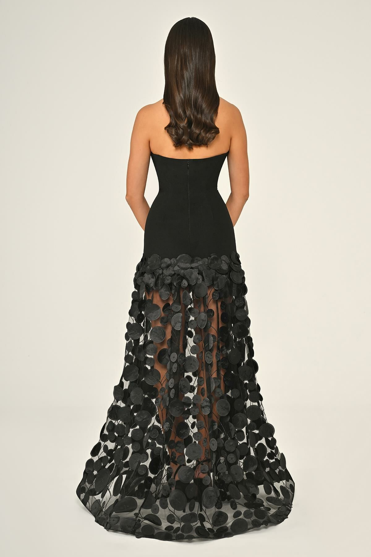 Straplez Üst Krep Eteği 3 Boyutlu Tül Uzun Elbise