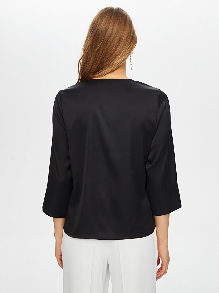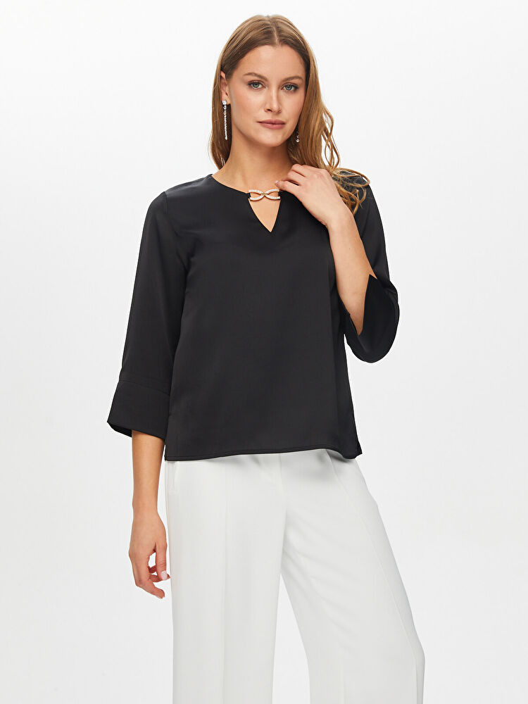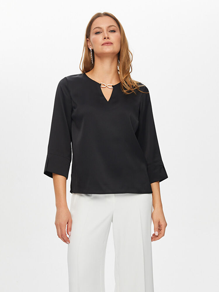 Metal Taşlı Aksesuar Detaylı 3/4 Kol Şık Bluz Faik Sönmez