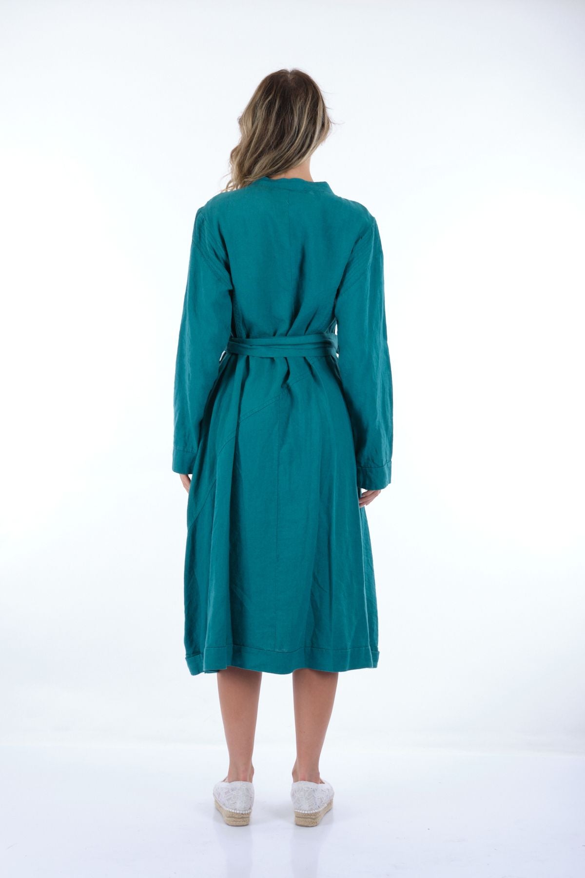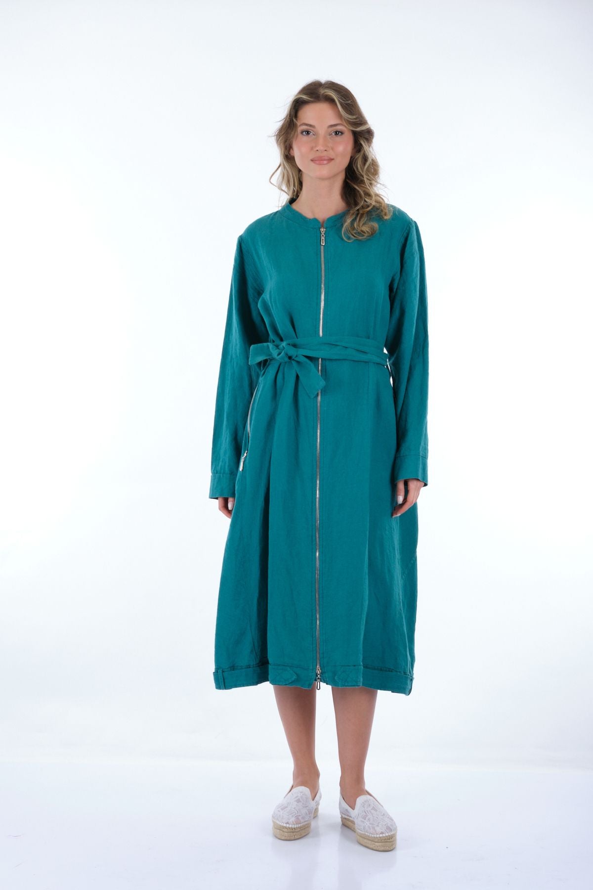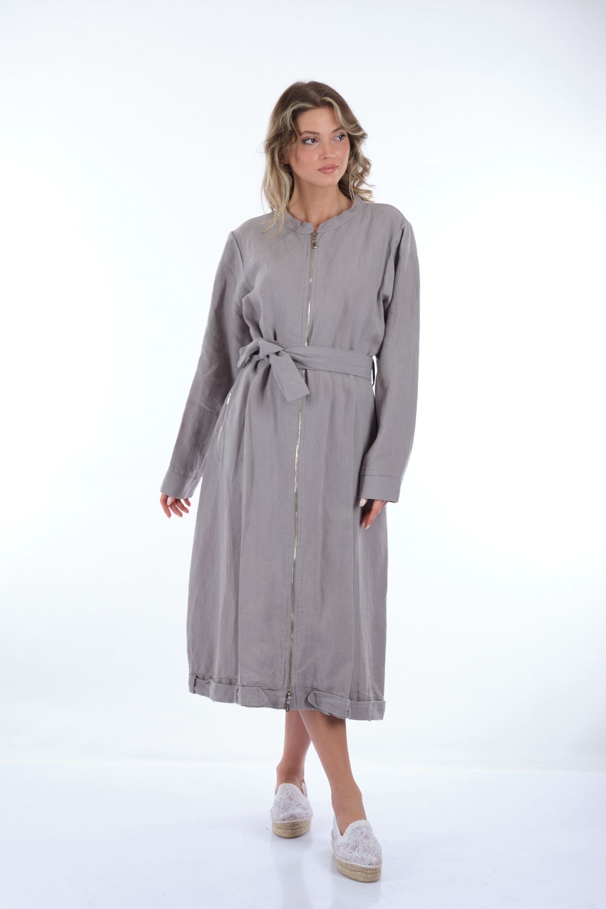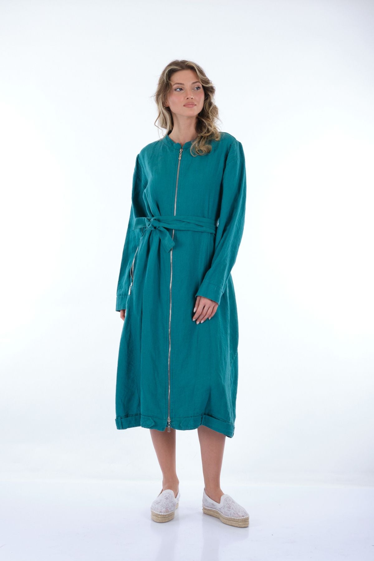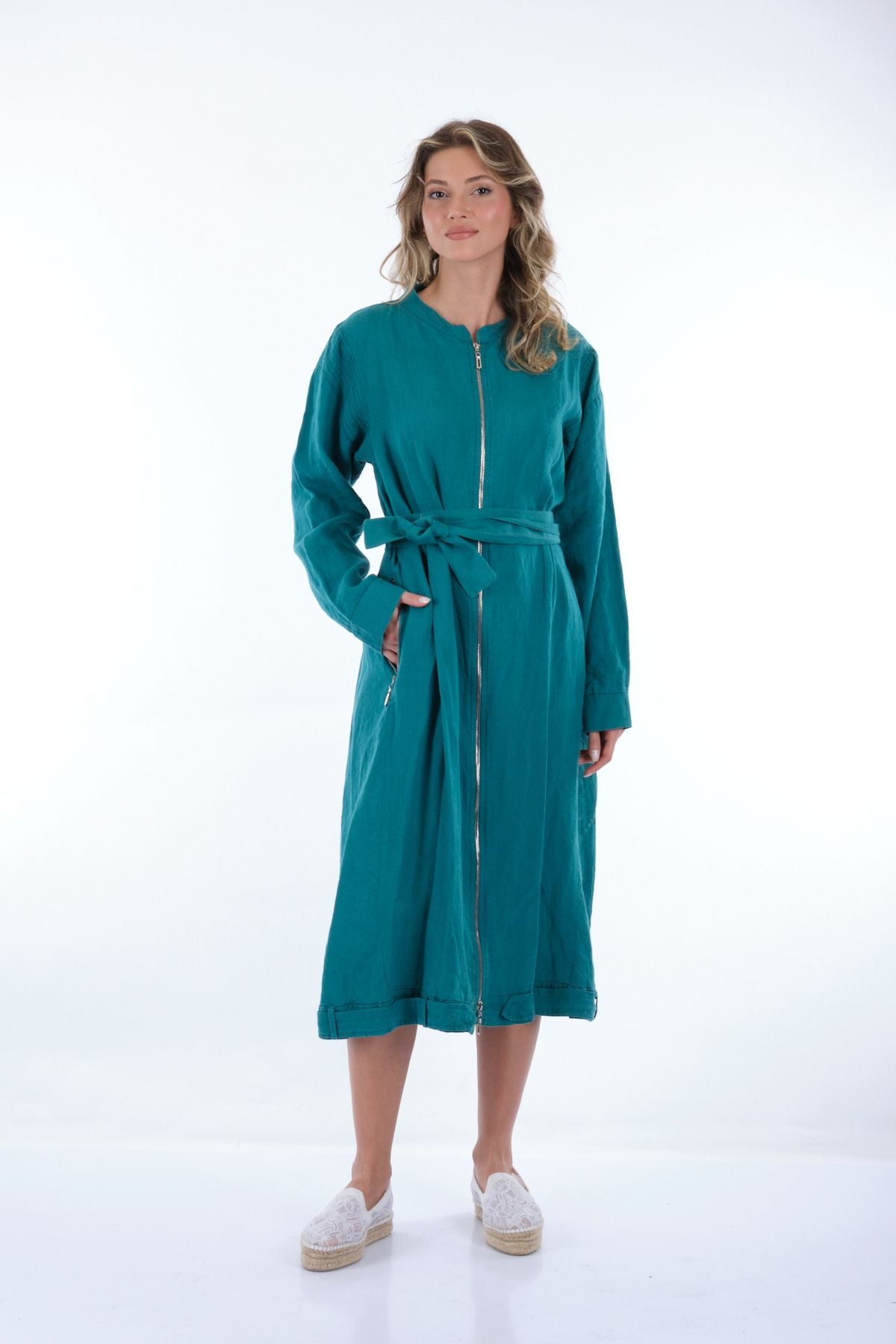 Manken Ölçüsü : Kilo : 52 kg / Boy : 1.73 cm / Göğüs : 86 cm / Bel : 65 cm / Basen : 92 cm / Beden : 38; Kumaş İçeriği:% 100 KETEN