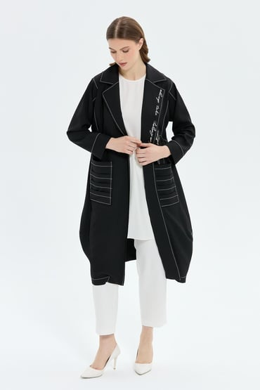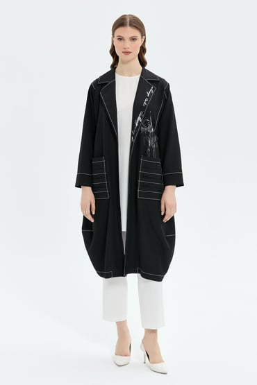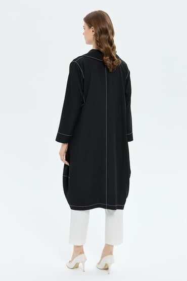 Dokuma kumaş İç tunik kolsuz Spor dikişli cepli Gümüş baskı detaylı içli dışlı takım Tam kalıp Dış kap boyu 120 cm İç tunik boyu 94 cm