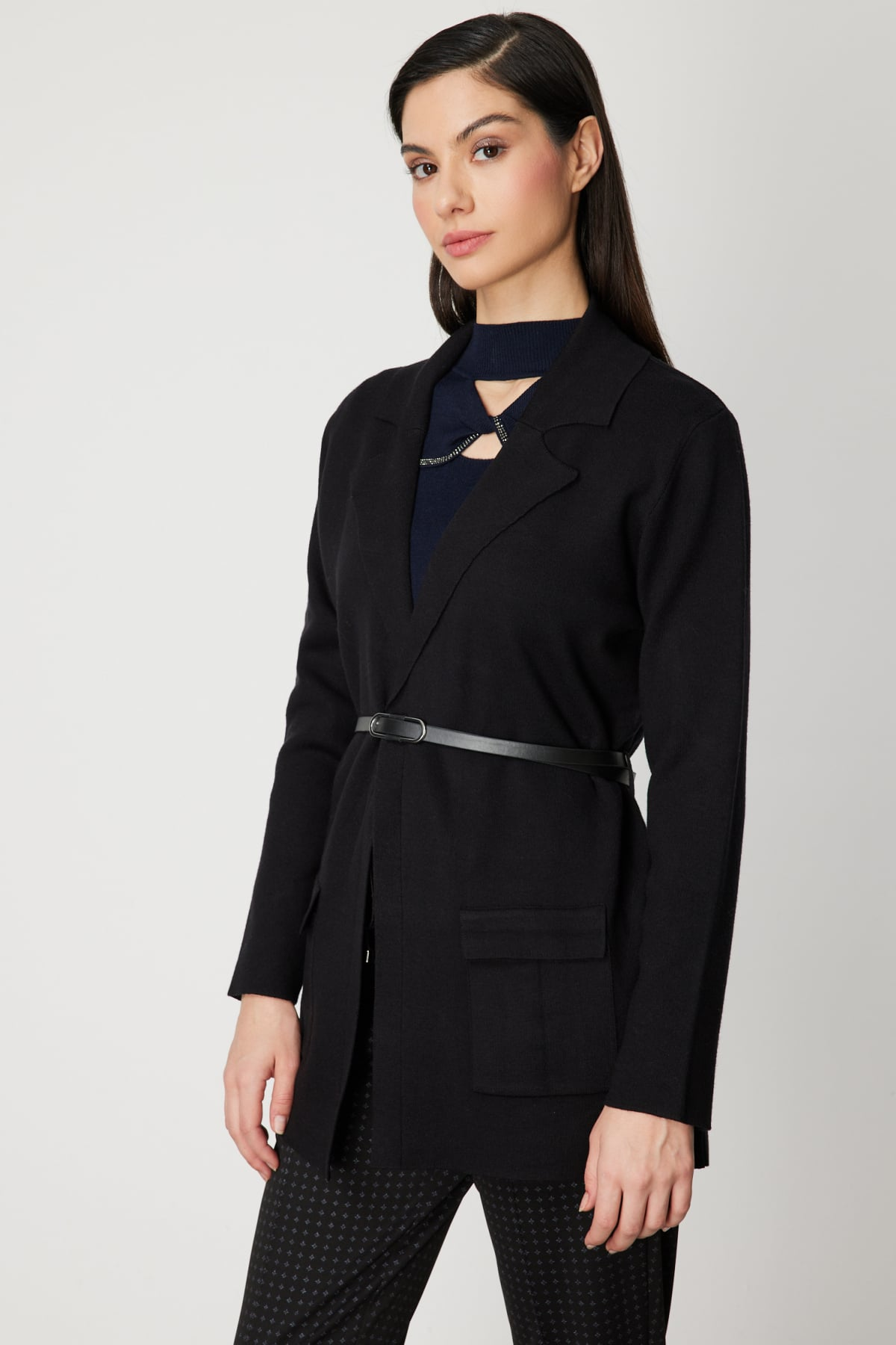 On Beli Kemerli Kapak Cepli Hırka On