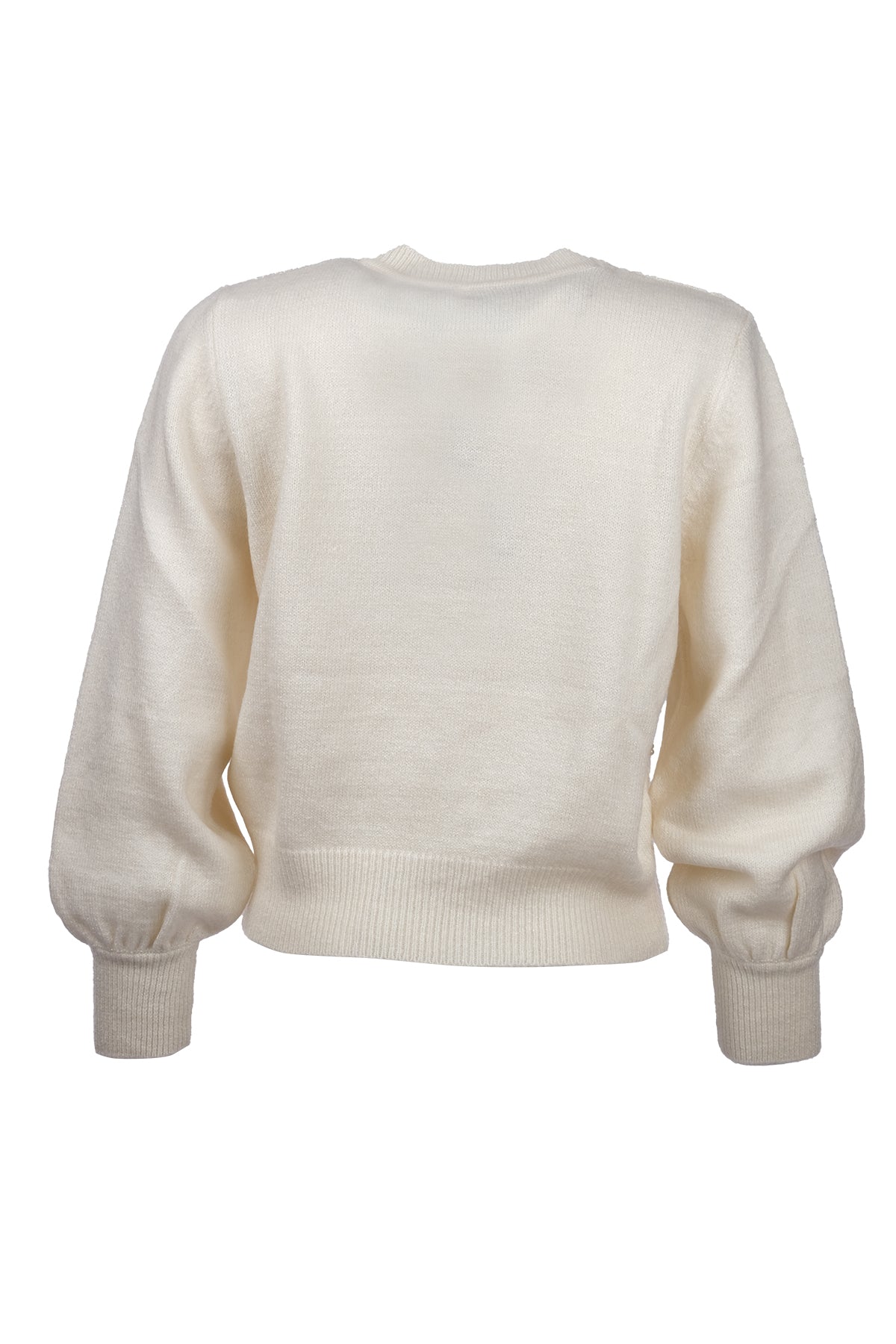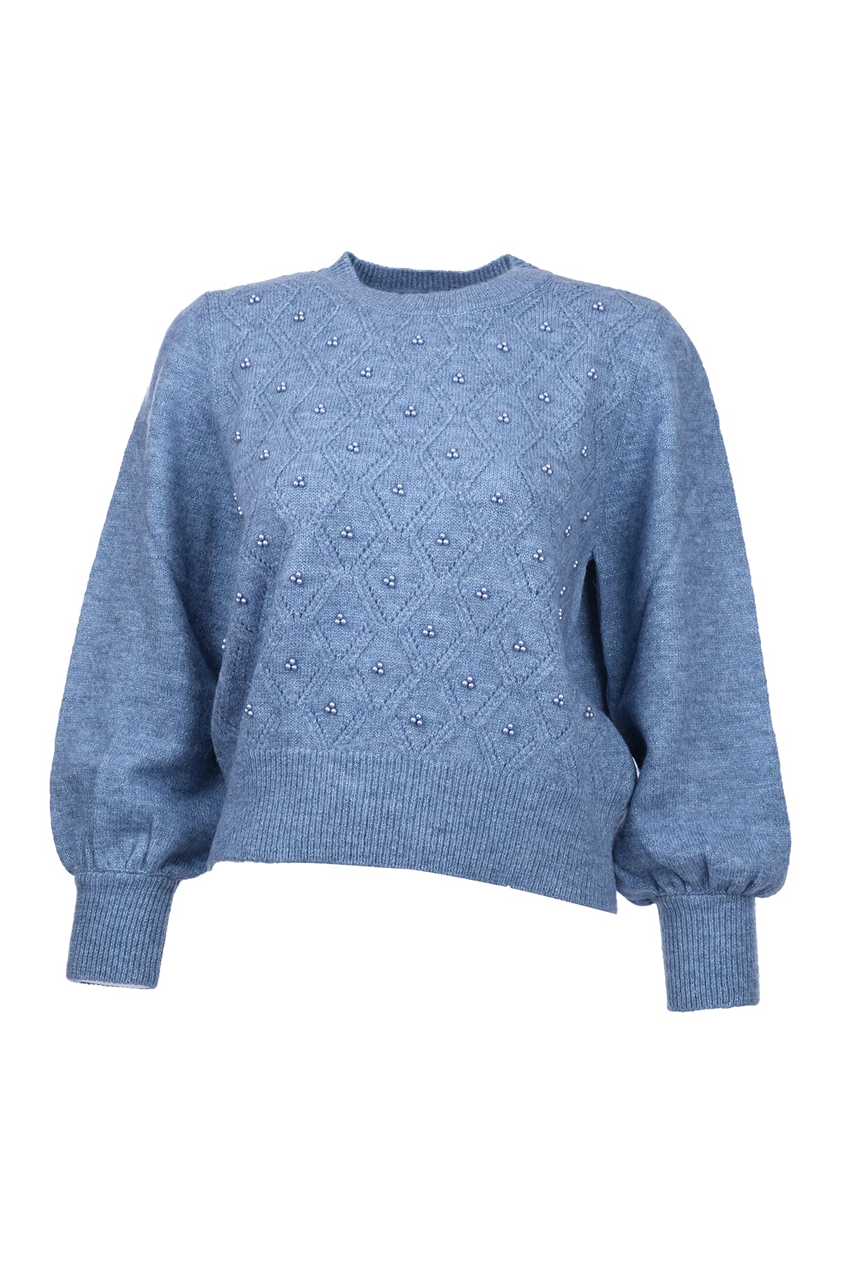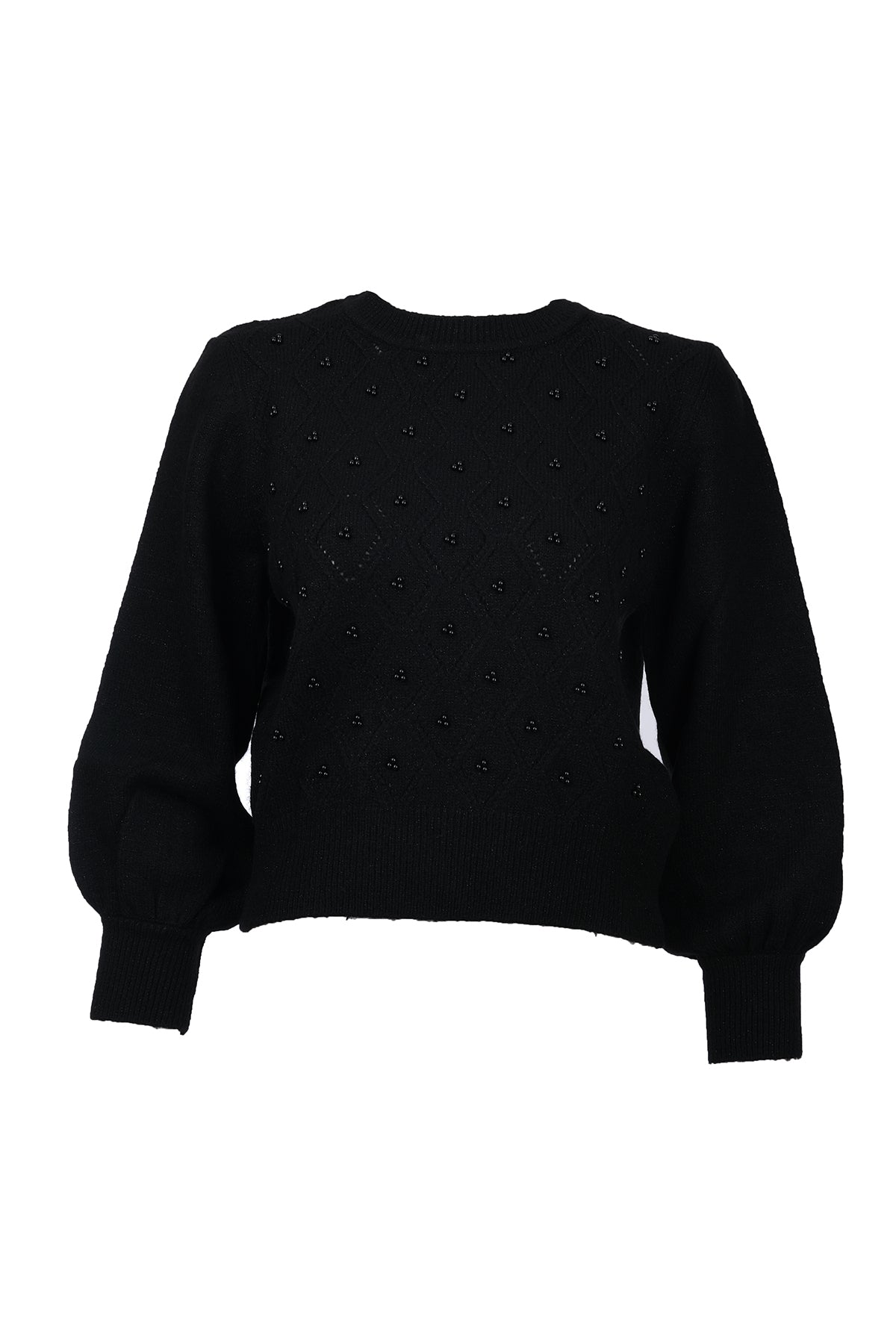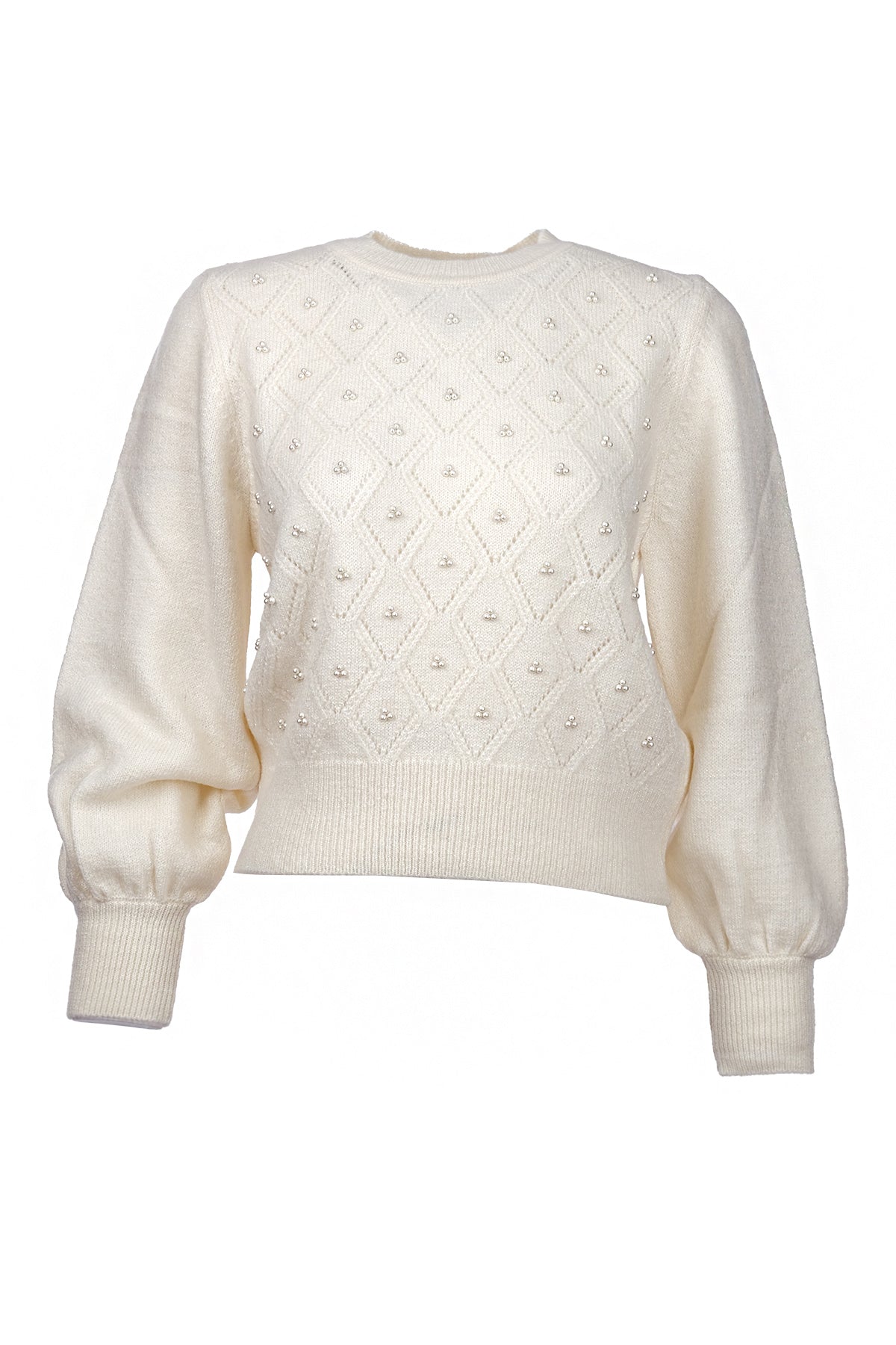 On Kadın Minimalist Crop Kazak - Balon Kol, İncili Detay - Günlük & Özel Gün