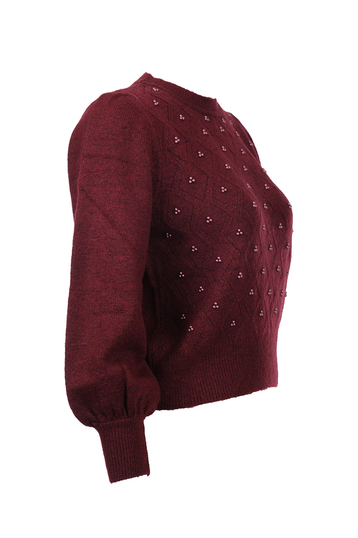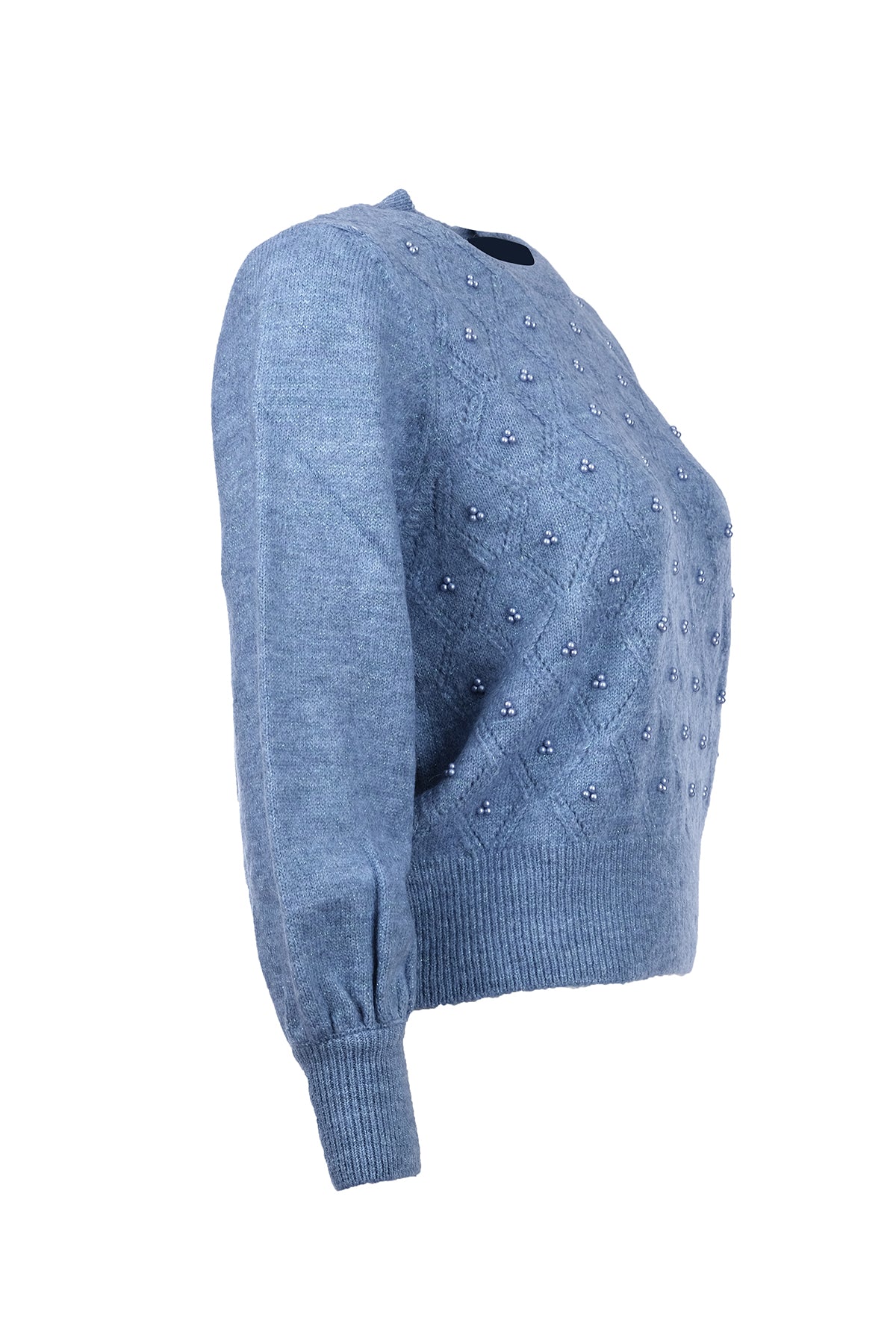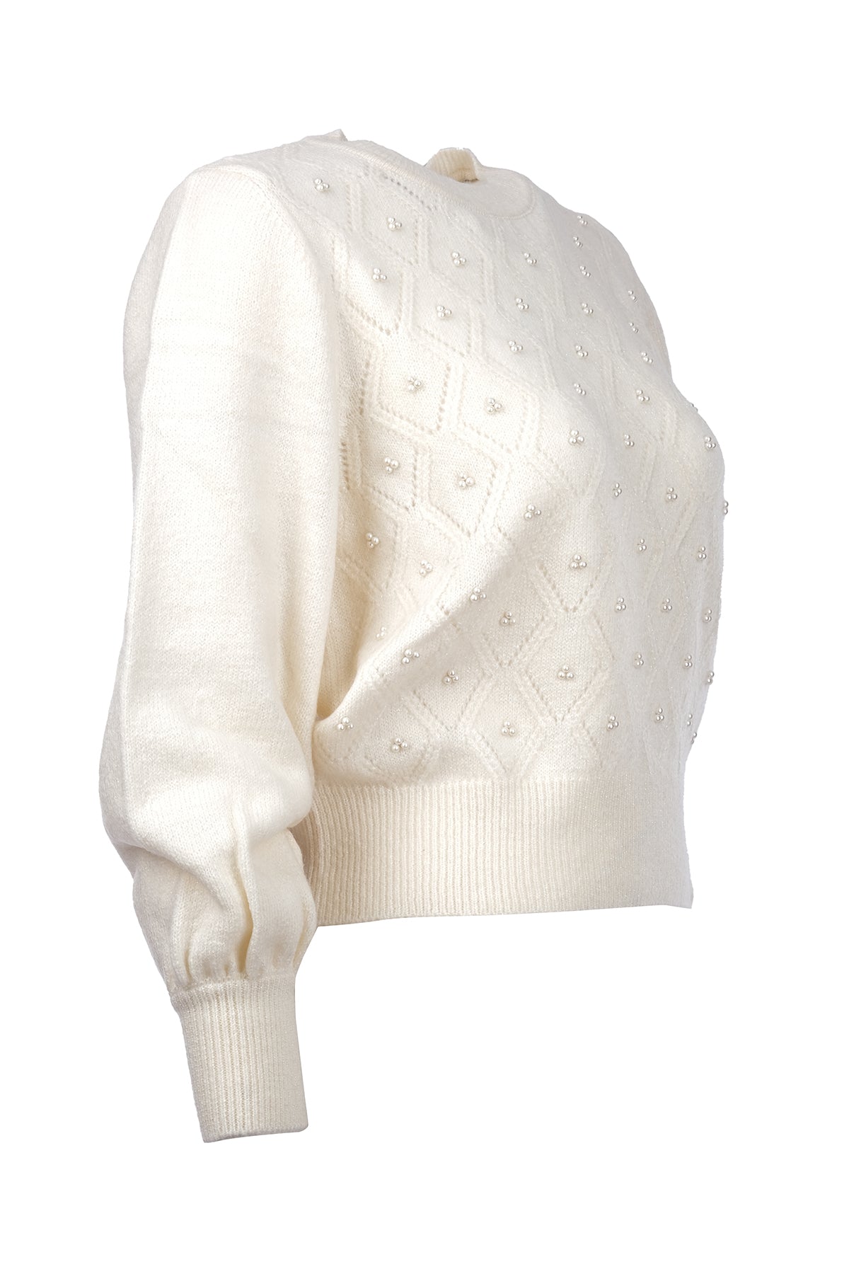 On Kadın Minimalist Crop Kazak - Balon Kol, İncili Detay - Günlük & Özel Gün