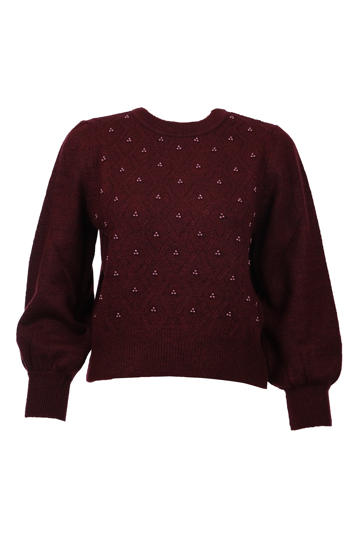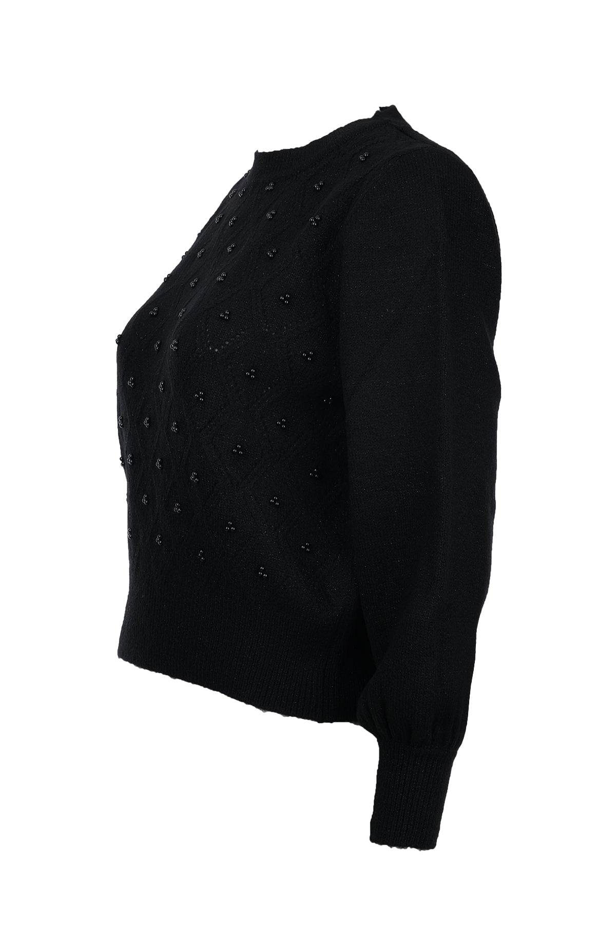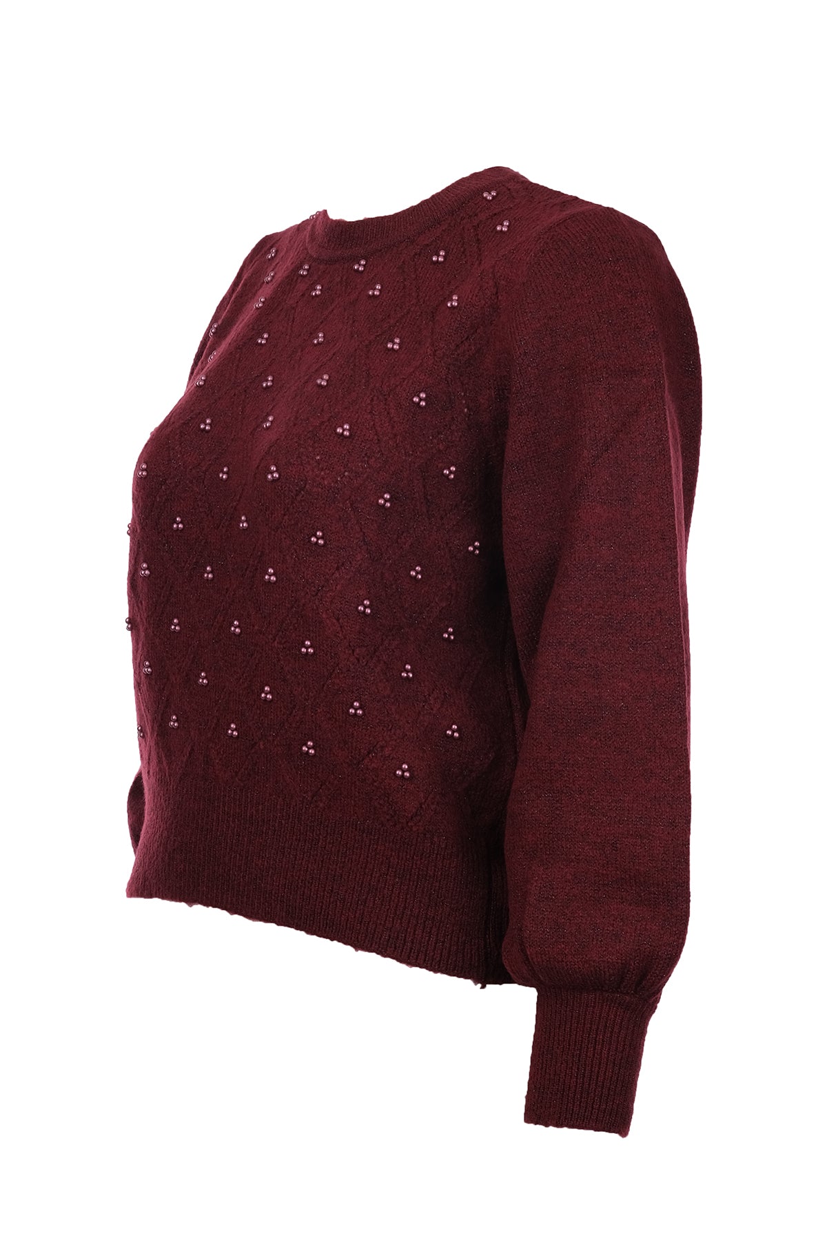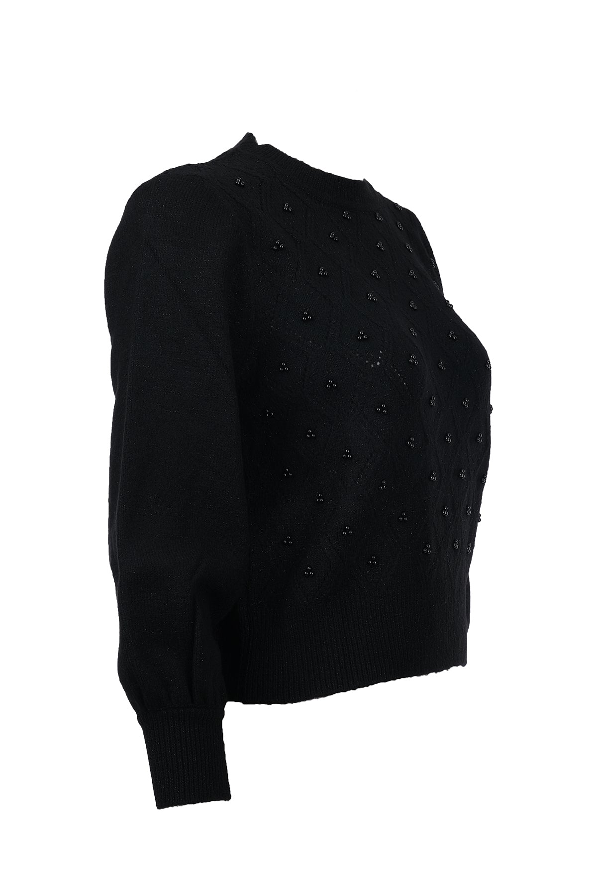 On Kadın Minimalist Crop Kazak - Balon Kol, İncili Detay - Günlük & Özel Gün