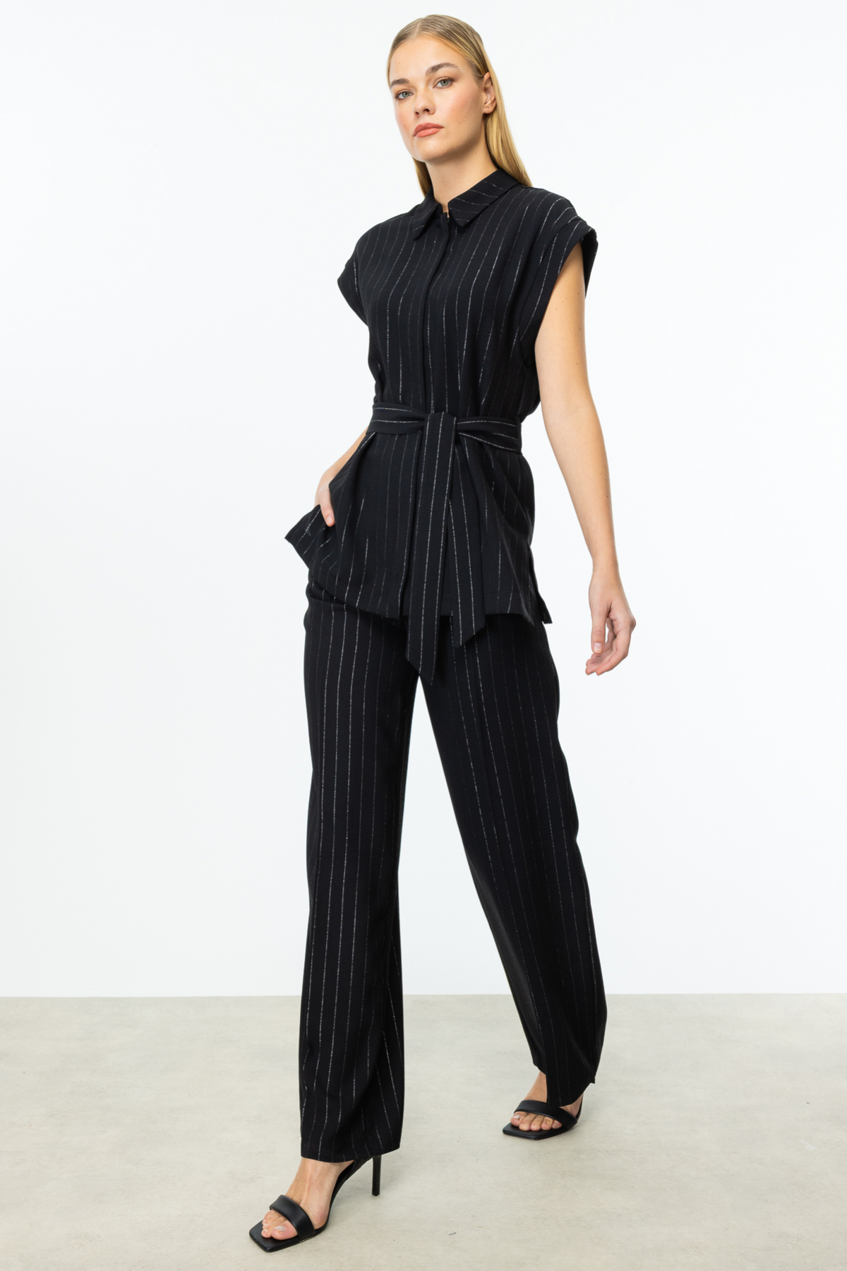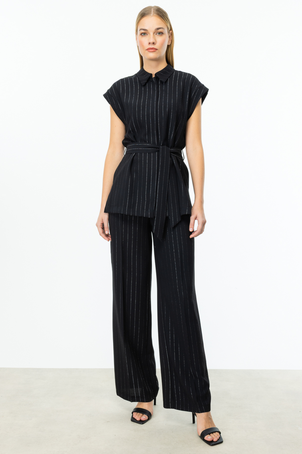 Ürün Özellikleri:Yüksek bel, simli çizgili, yandan cepli, bol paça