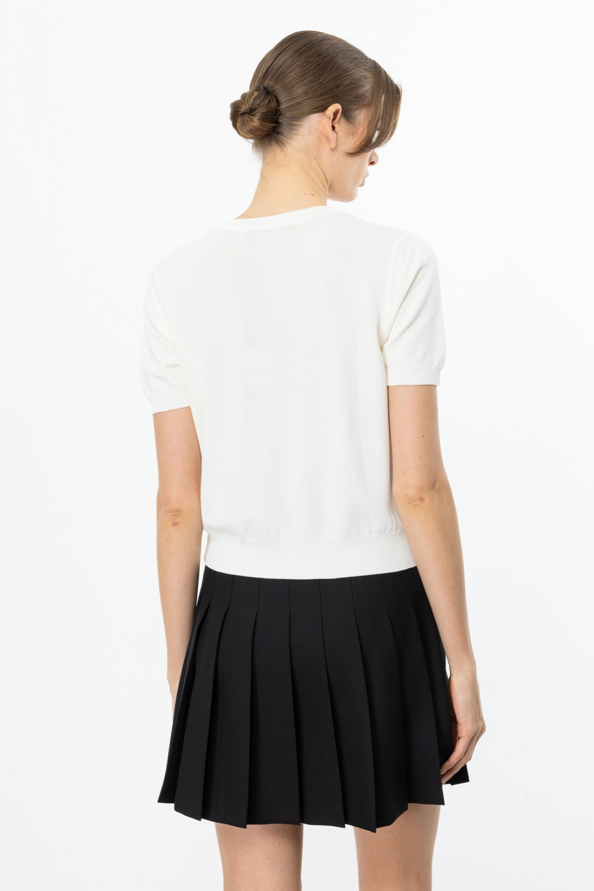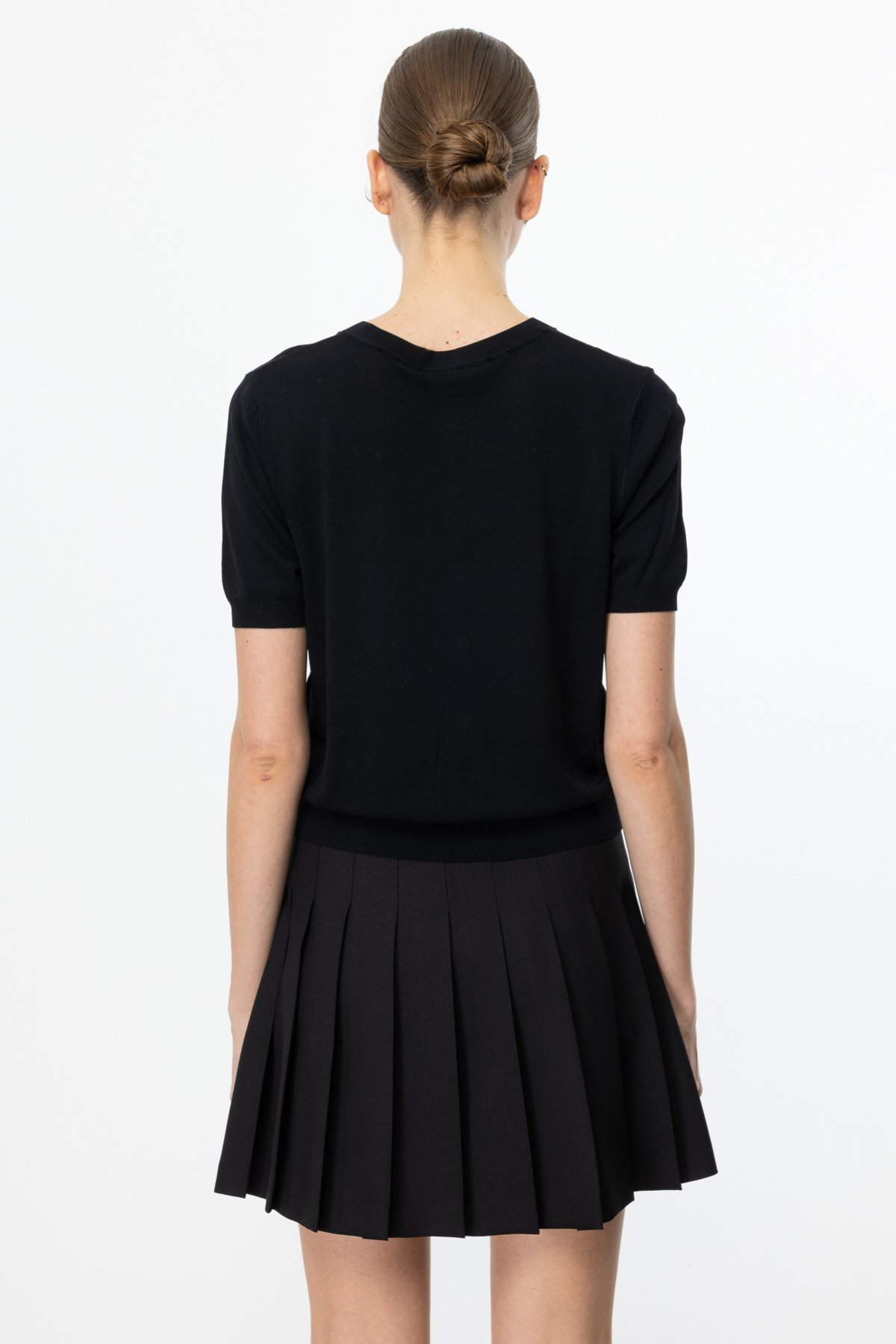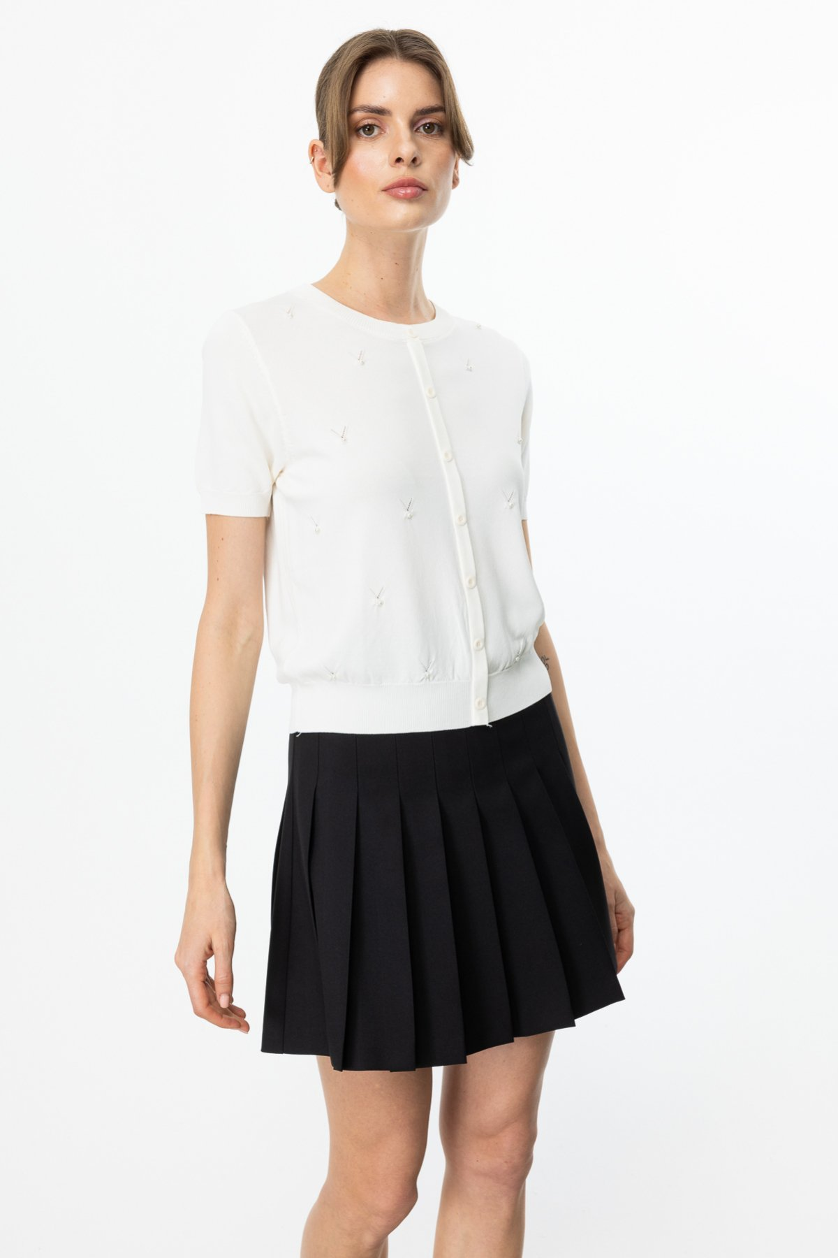 On Minimalist İnci Detaylı Kısa Kol Kadın Bluz - Günlük & Özel Gün