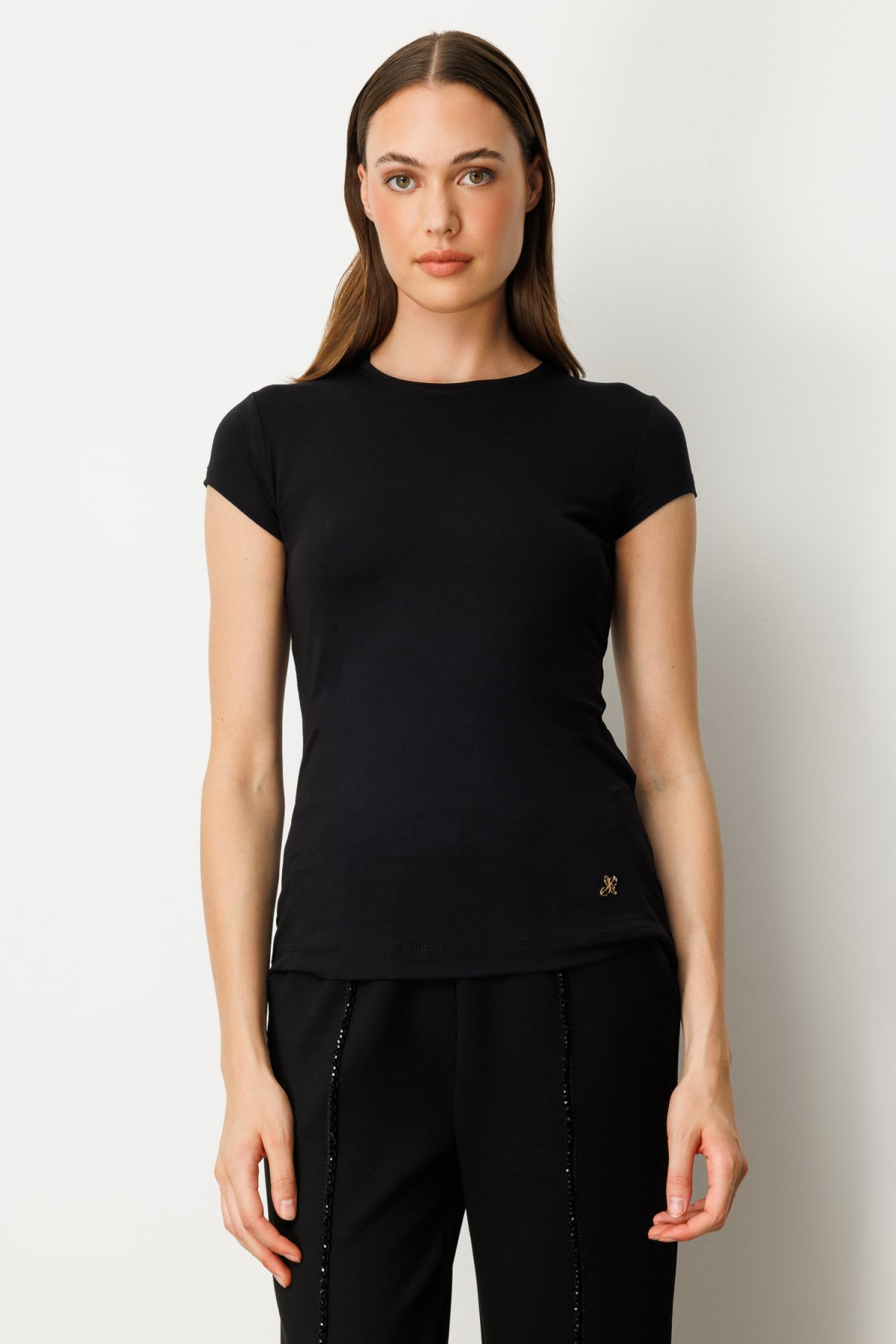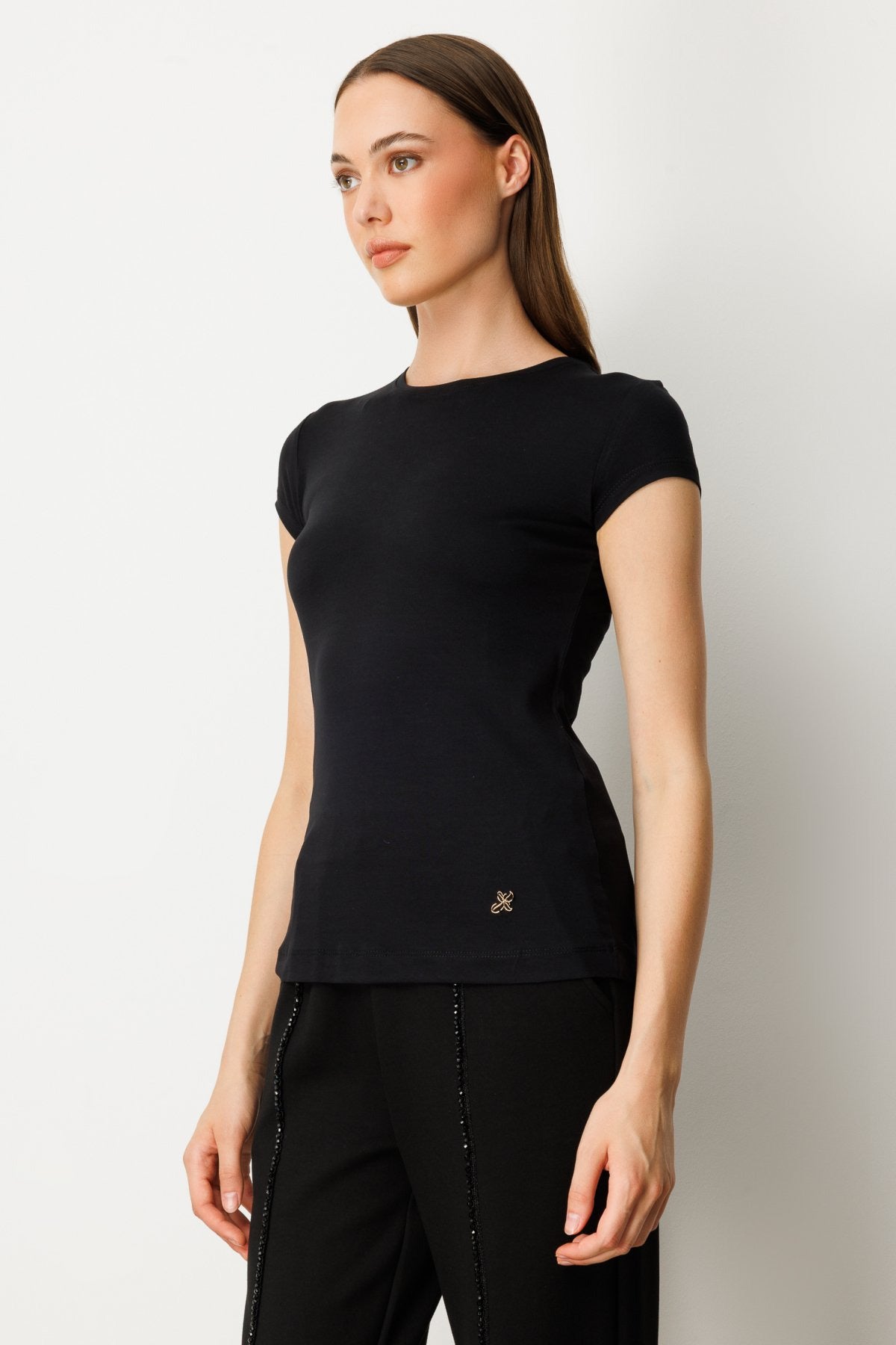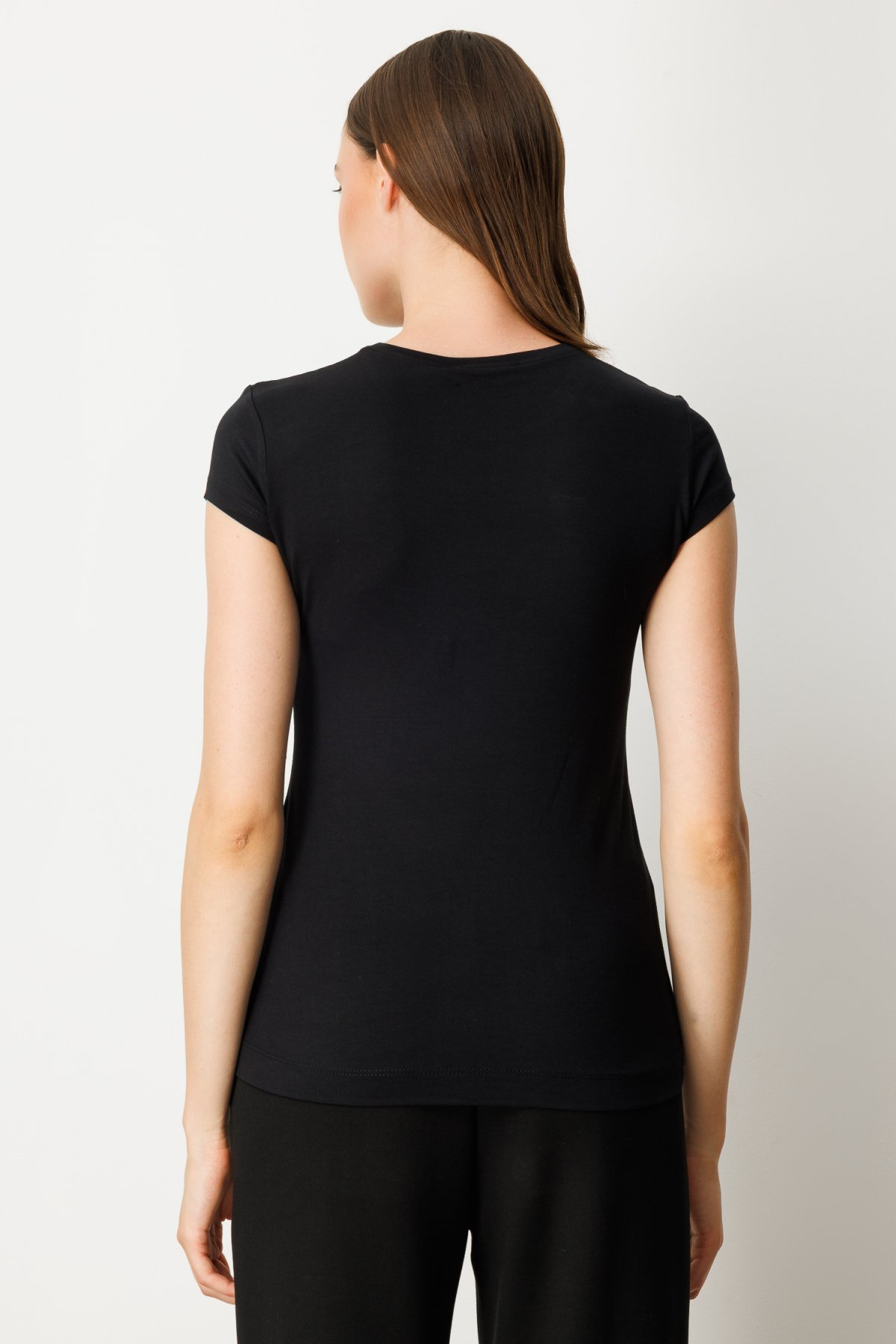 On Sıfır Yaka Ay Kol Basic Bluz