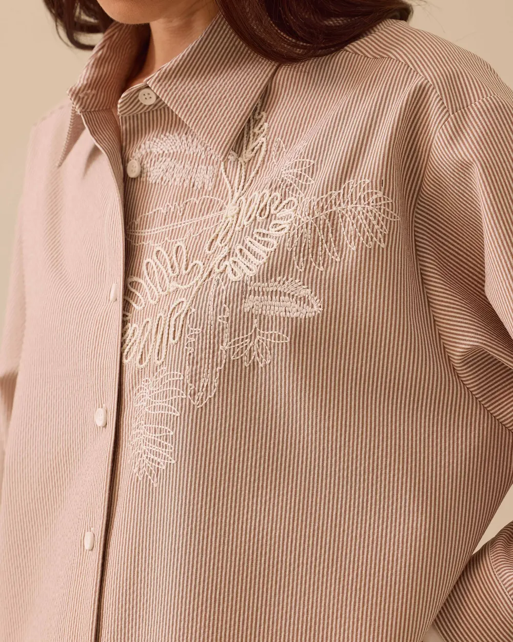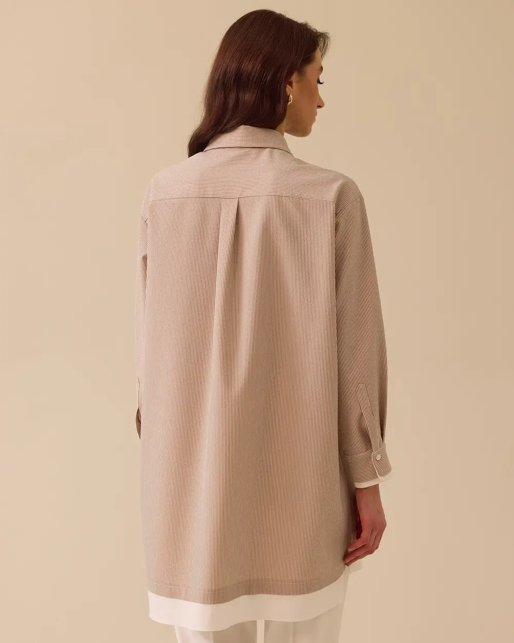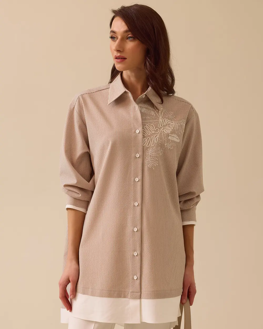 Çizgili Nakış Detaylı Tunik, ince çizgileri ve zarif nakış işlemeleriyle sade şıklığı bir araya getirir.
