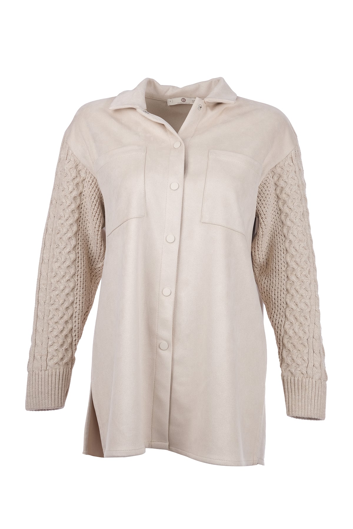 SCL'den şık ve modern oversize kadın gömleğiyle tanışın! Minimalist tasarımı ve rahat kesimiyle günlük şıklığınıza yeni bir boyut katacak. Suede kumaş gövdesi ve örgü detaylı, uzun kolları ile benzersiz bir stile sahip olan bu gömlek, sonbahar ve kış aylarında ideal bir tercih. Midi boyu ile her vücut tipine uyum sağlarken, pratik cep detayları ile de kullanımı kolaylaştırıyor. Şık bir pantolon veya kot pantolon ile kombinleyerek, ofis şıklığından günlük kombinlere kadar her ortamda rahatlıkla kullanabilirsiniz. Sürdürülebilir moda anlayışıyla üretilen bu gömlek, kaliteli malzemelerden üretilmiştir ve uzun ömürlü kullanım sunar. Bu sezonun en trend parçalarından biri olan SCL oversize gömleğini kaçırmayın!