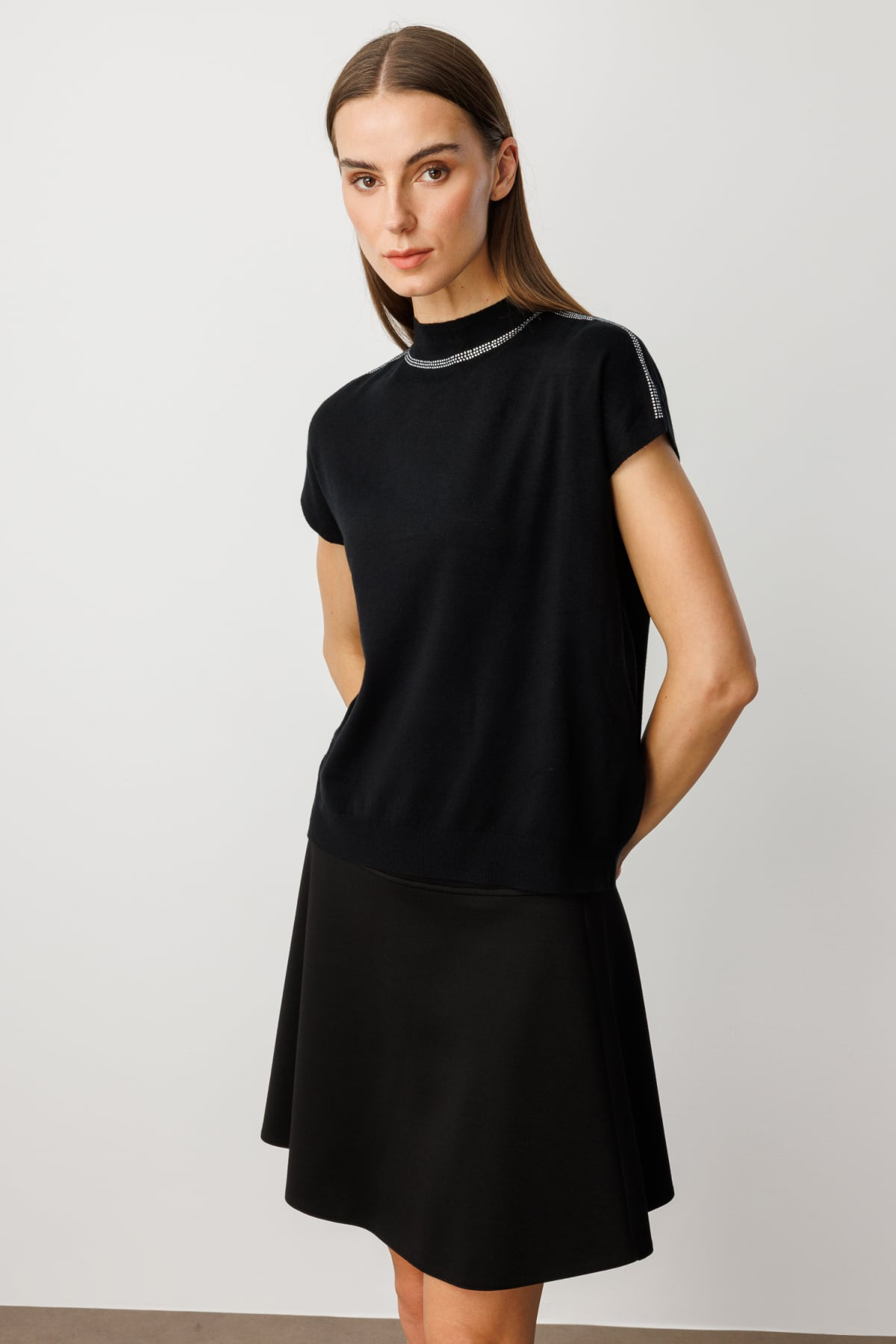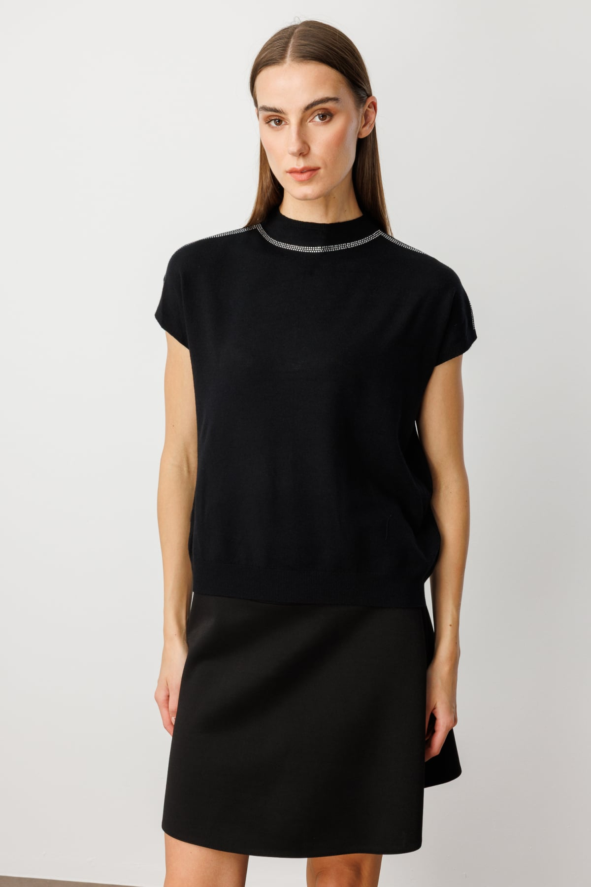 Taş İşlemeli Kısa Kol Triko Bluz On