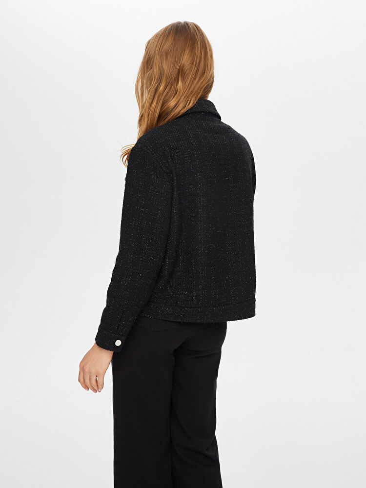 Taşlı Broş Detaylı Kendinden Simli Track Ceket Faik Sönmez