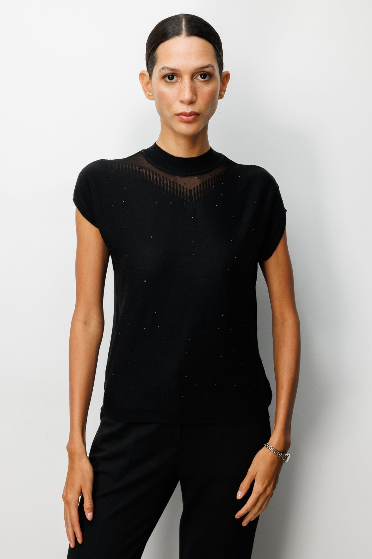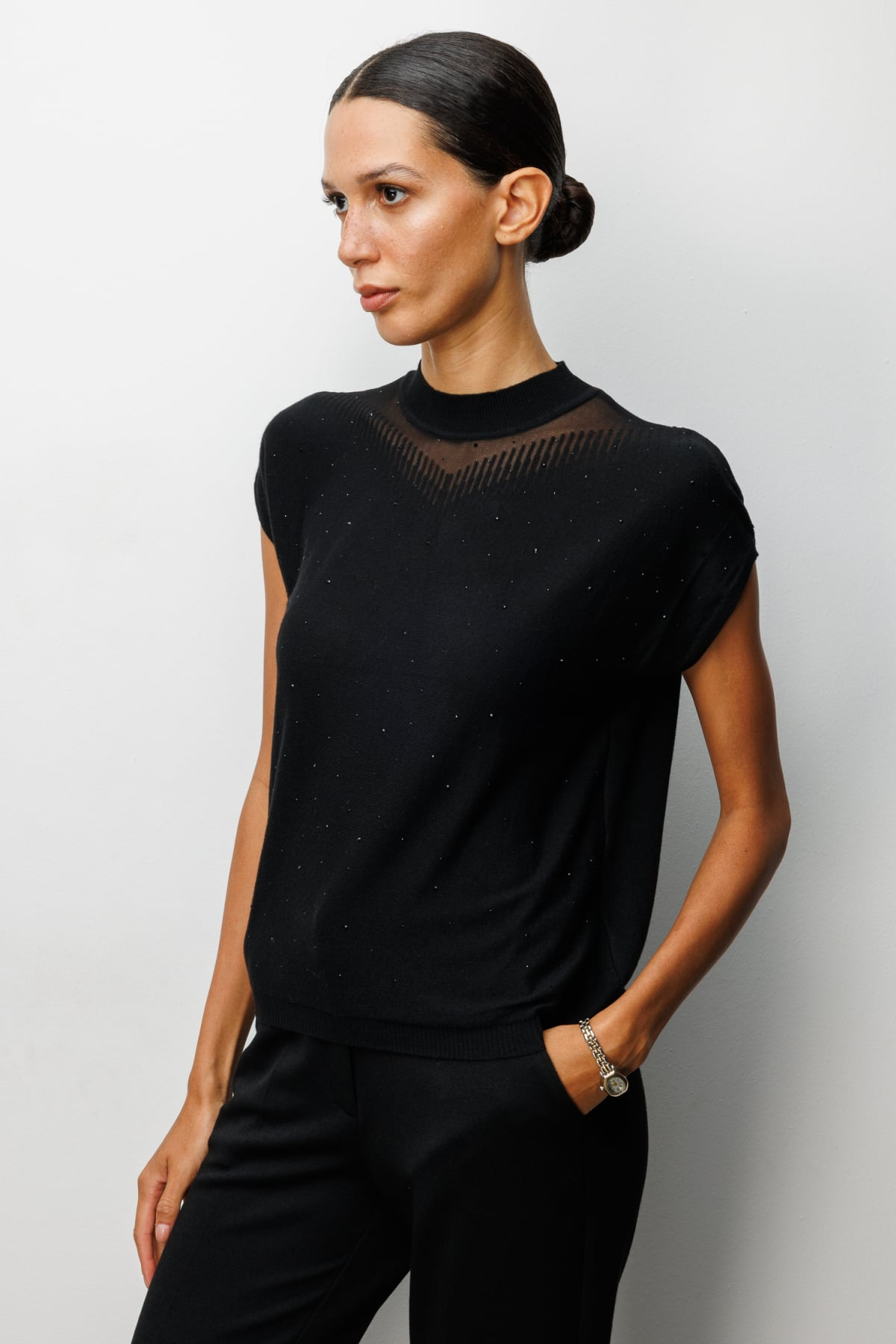Transparan Detaylı Taşlı Bluz On