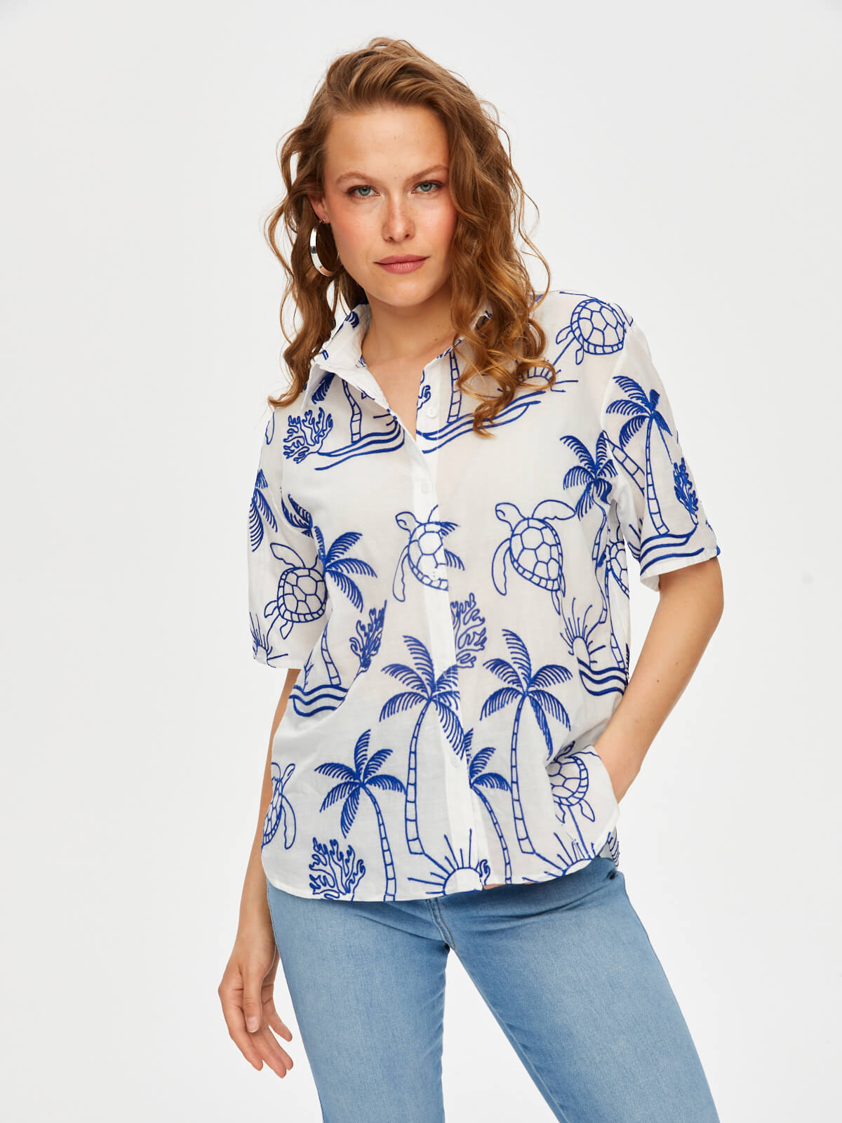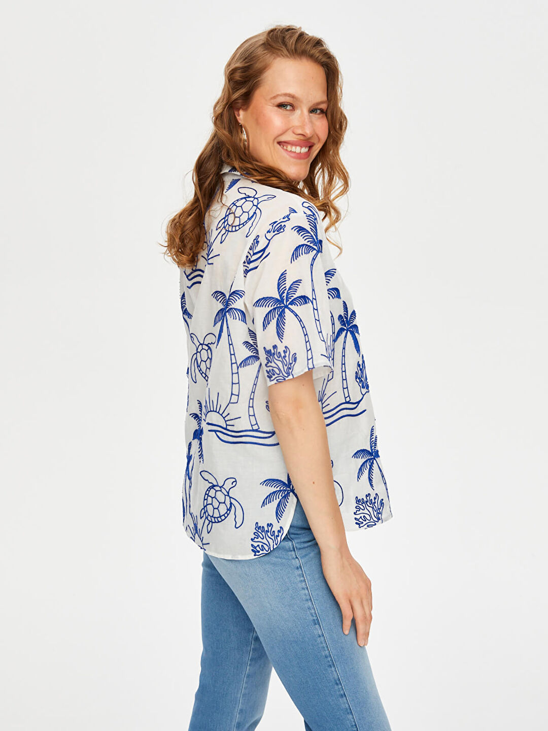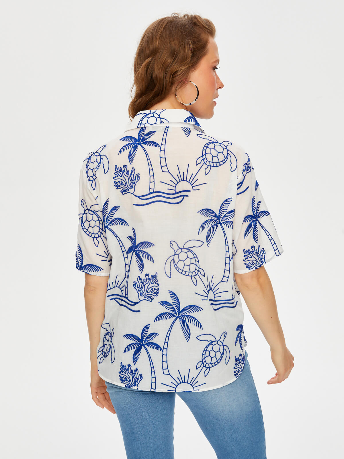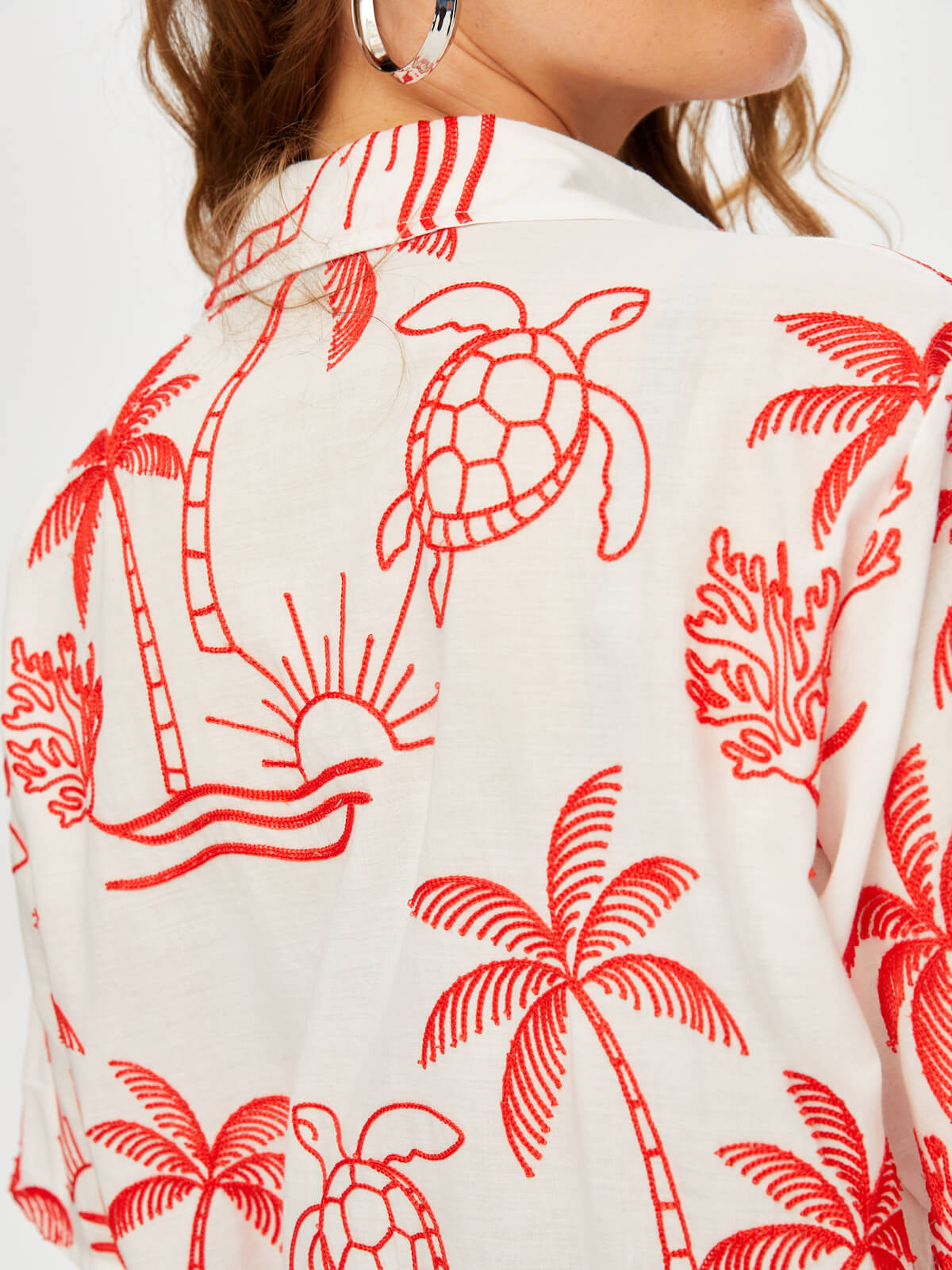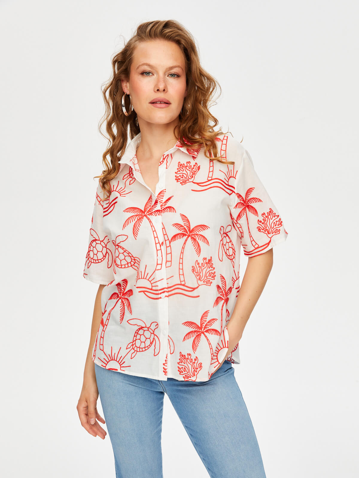 Tropik Brode Nakışlı Kısa Kol Pamuk Vual Gömlek Faik Sönmez