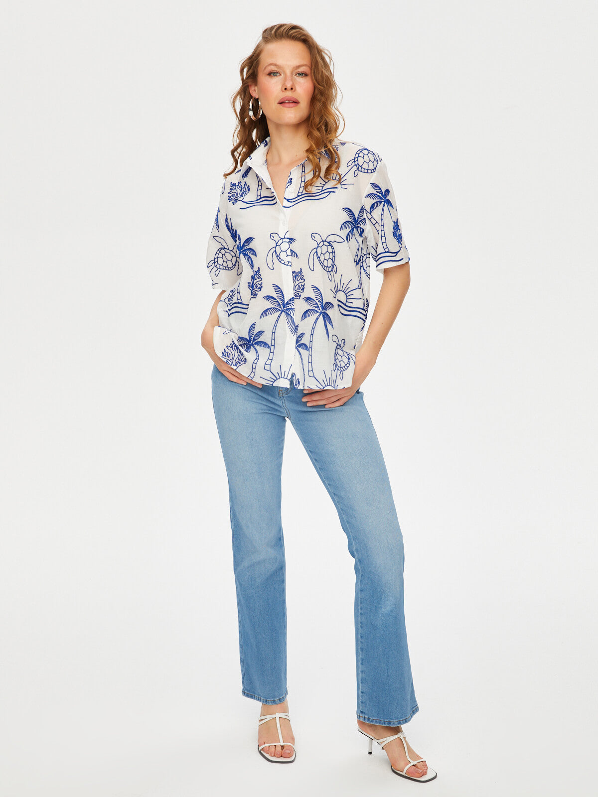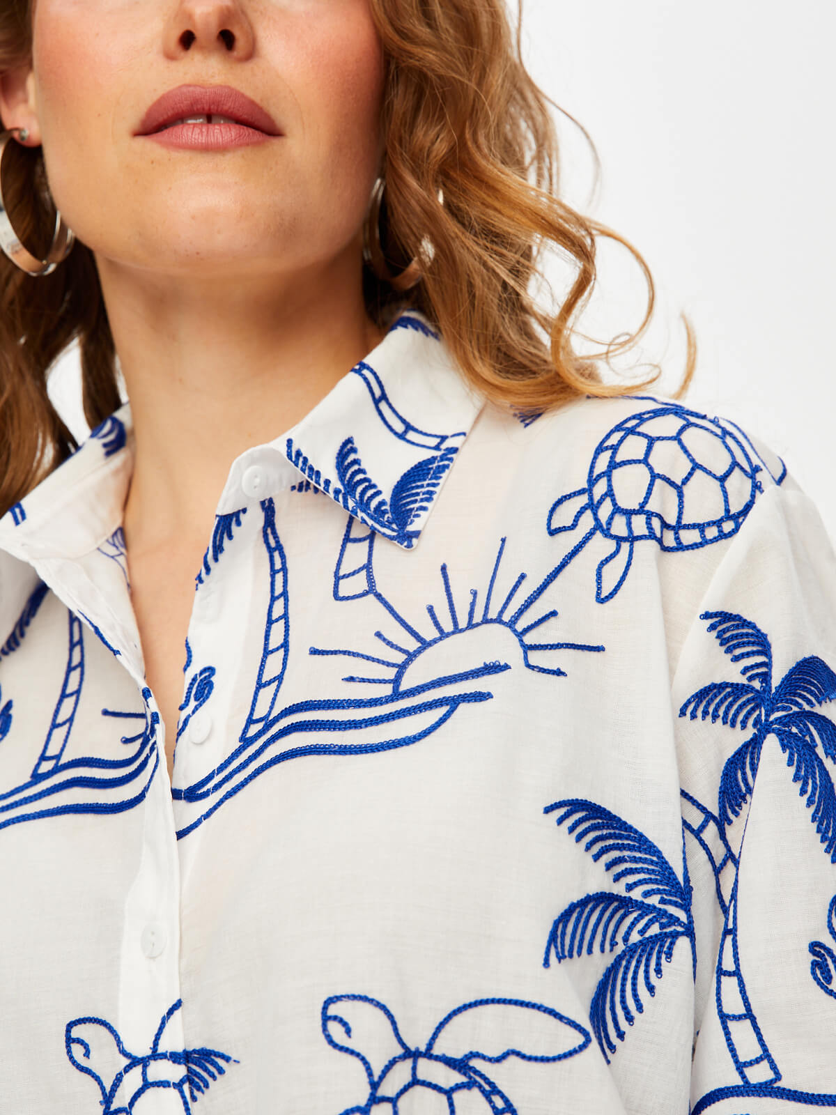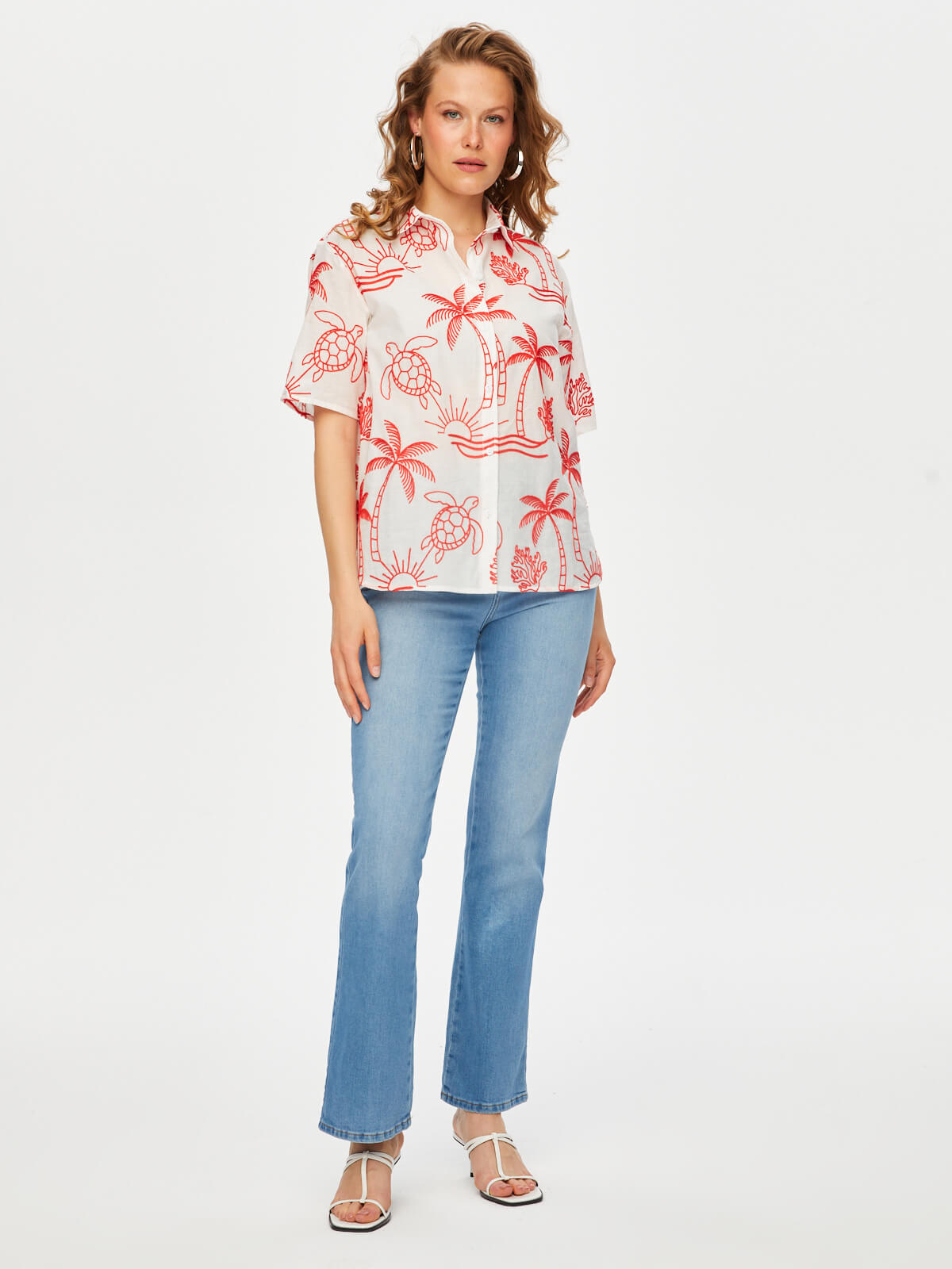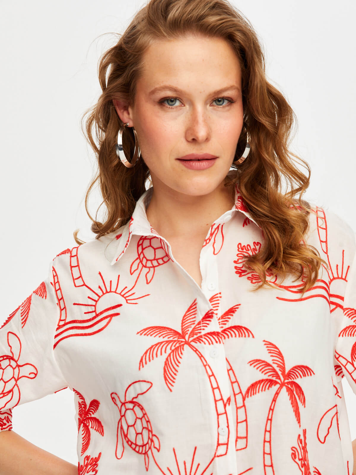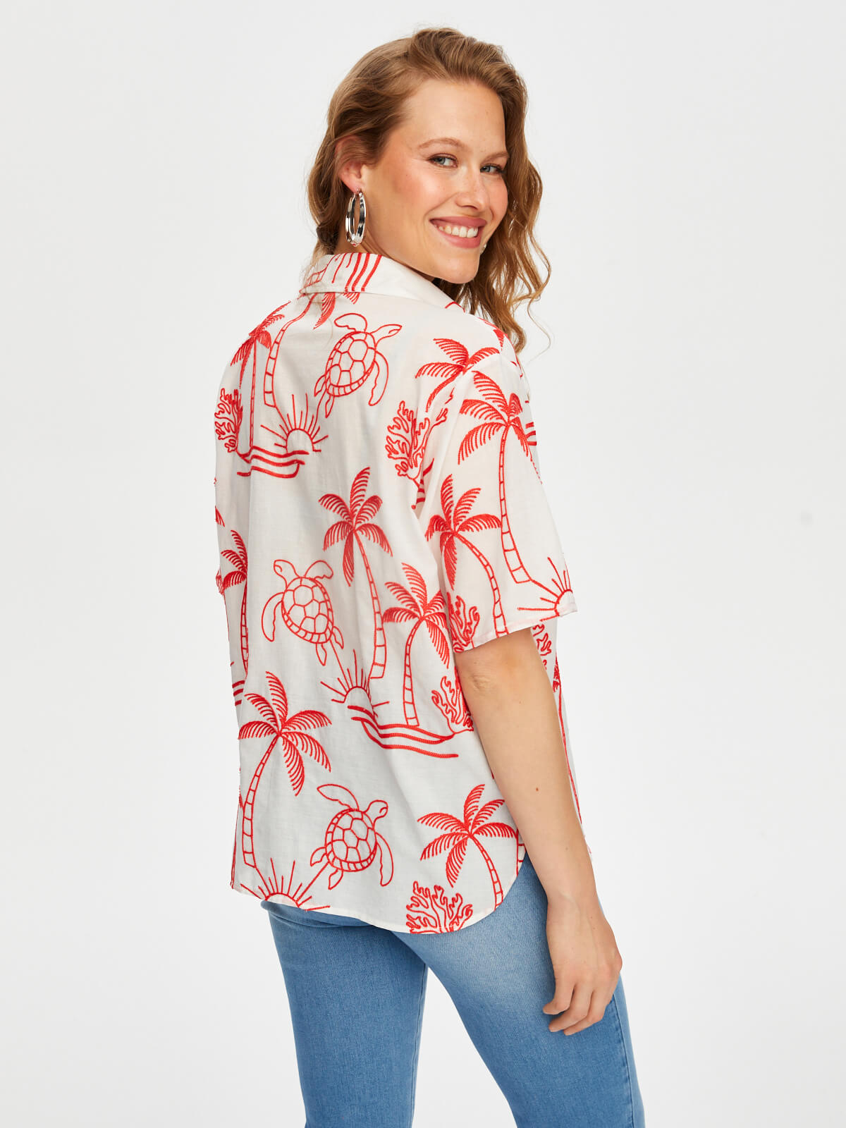 Tropik Brode Nakışlı Kısa Kol Pamuk Vual Gömlek Faik Sönmez