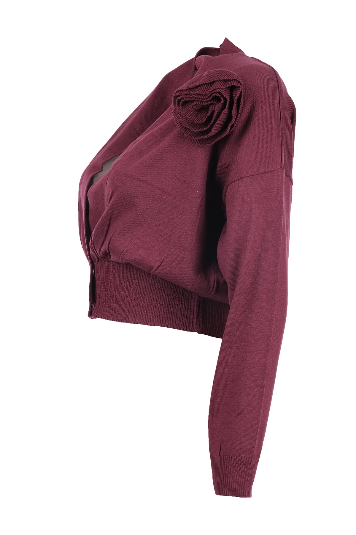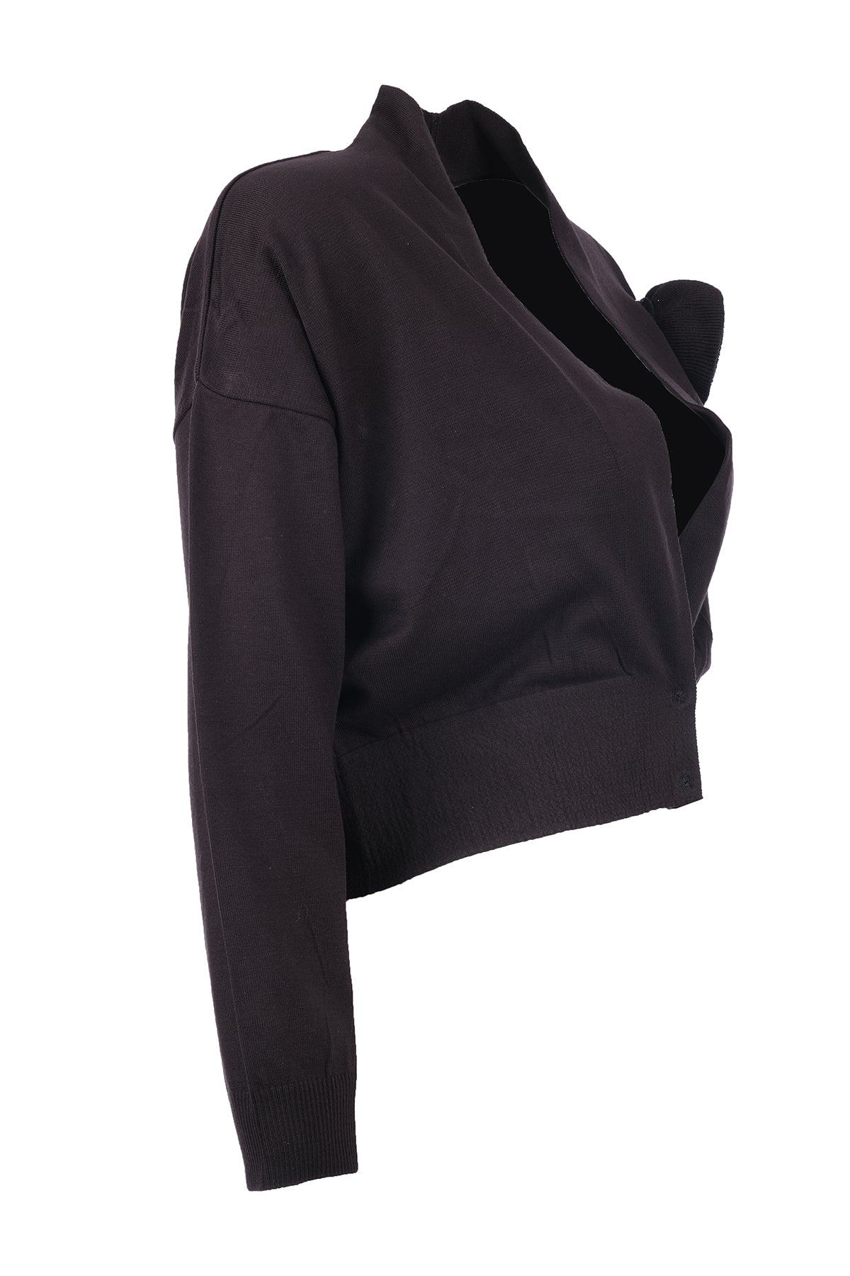 Unique Mode Minimalist V Yaka Uzun Kol Kadın Crop Hırka